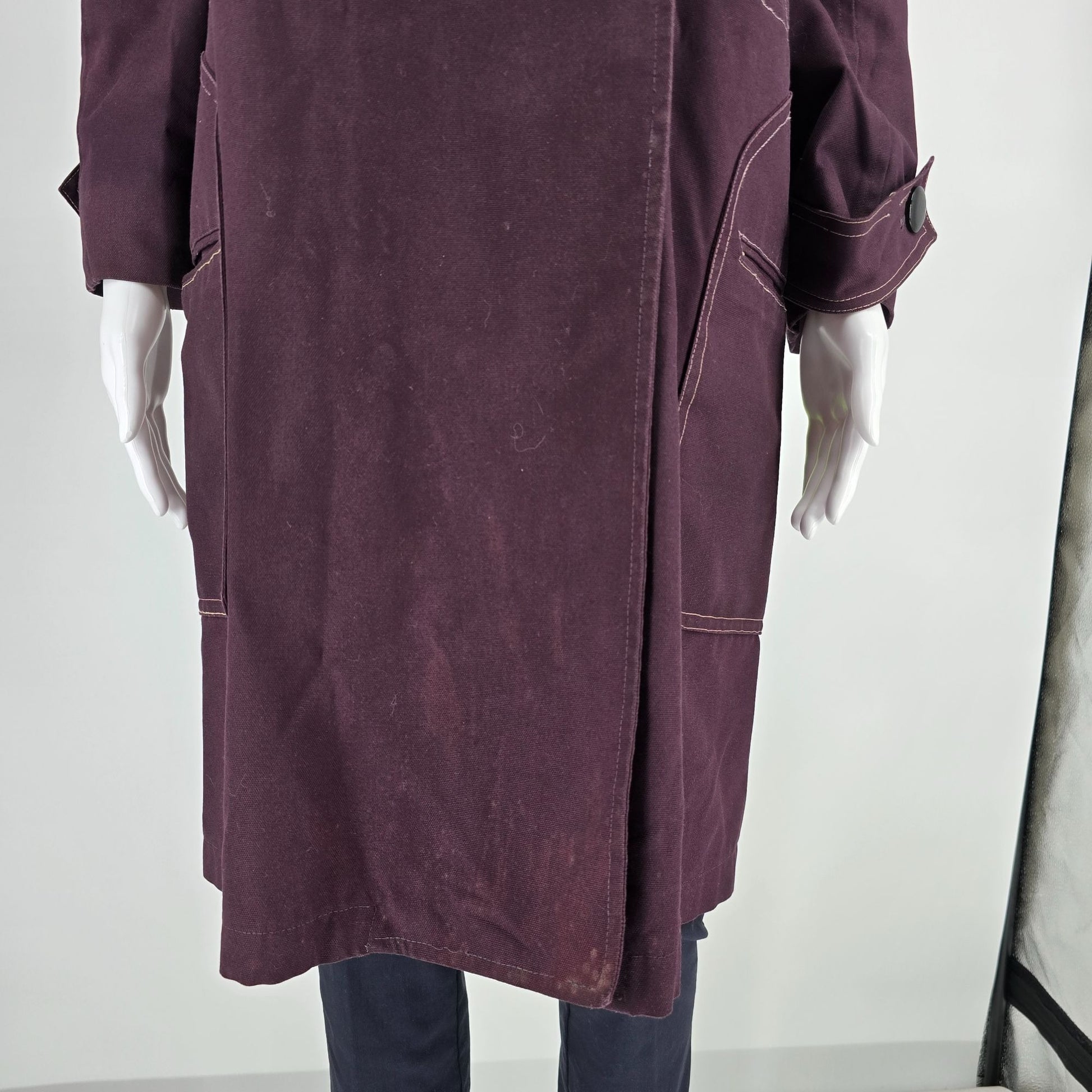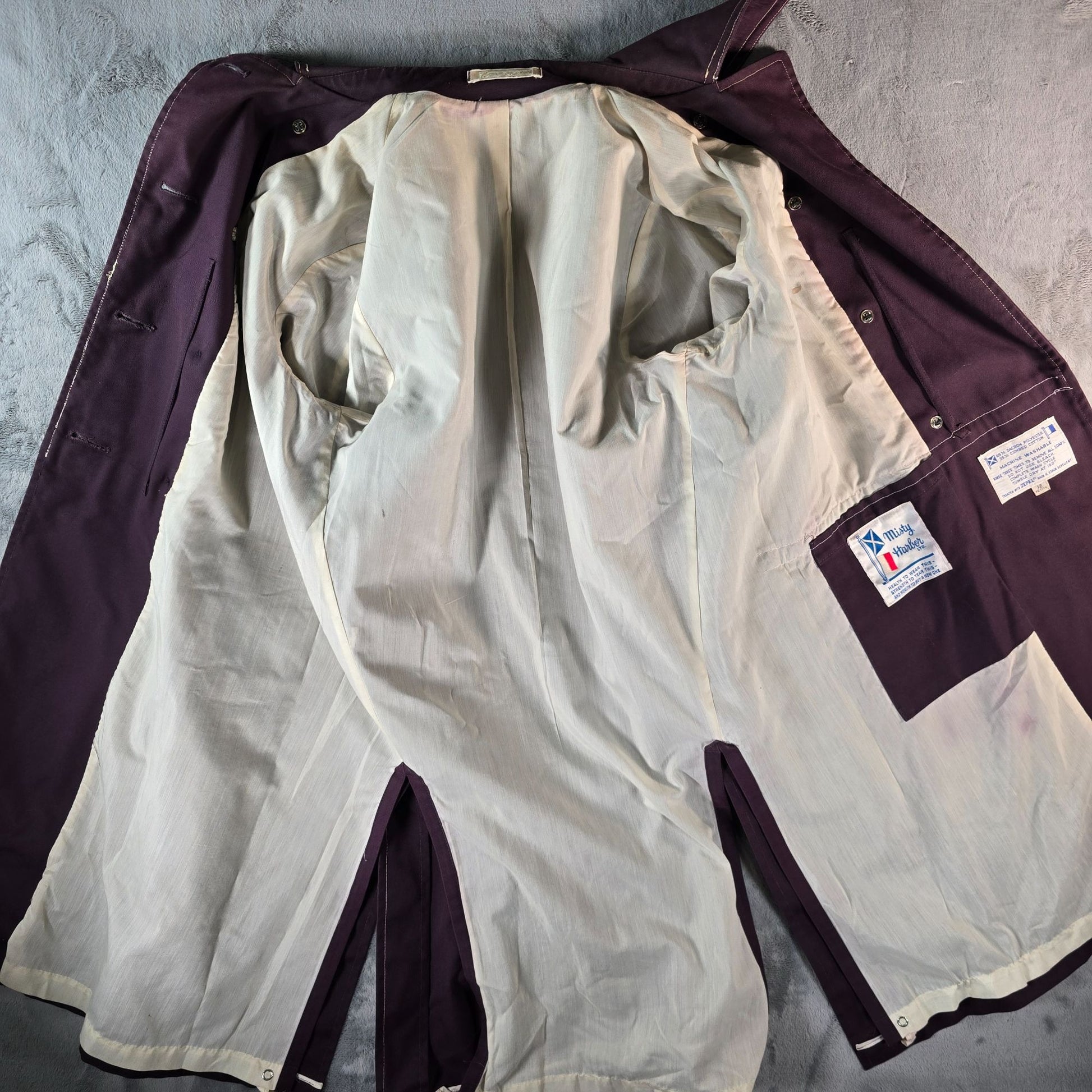 Vintage 1960s Misty Harbor Women's Plum Double-Breasted Mod Trench Coat (12p/L)