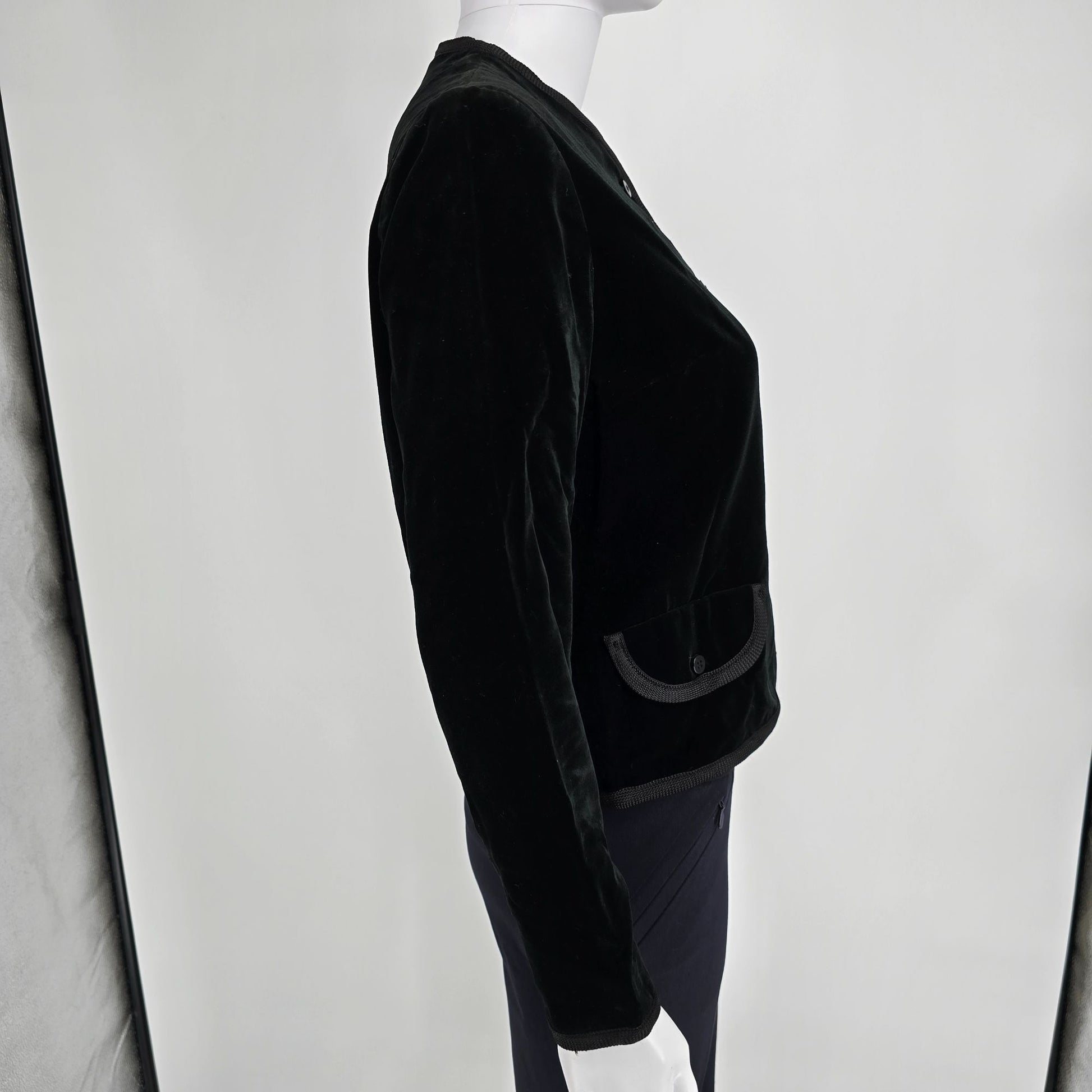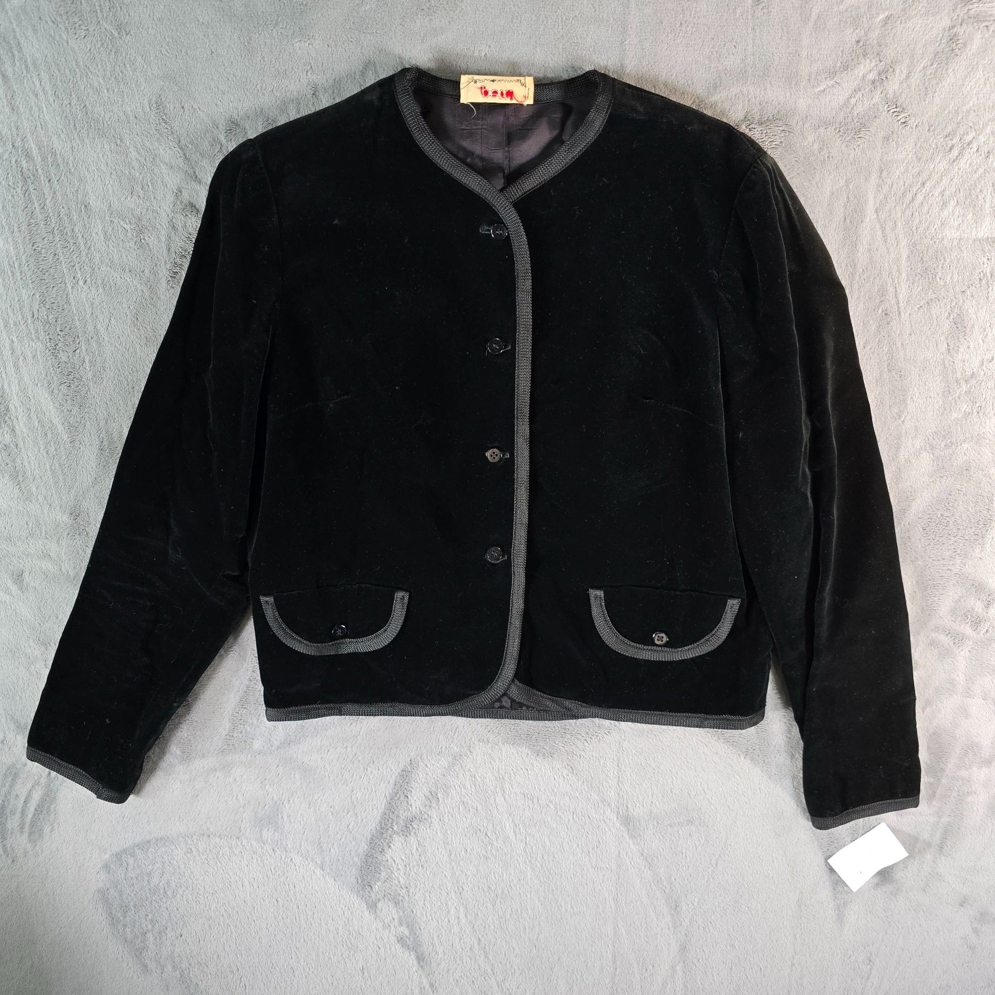 Vintage 1960s Petti Glen Junior Apparel Black Velveteen Cropped Jacket (M)