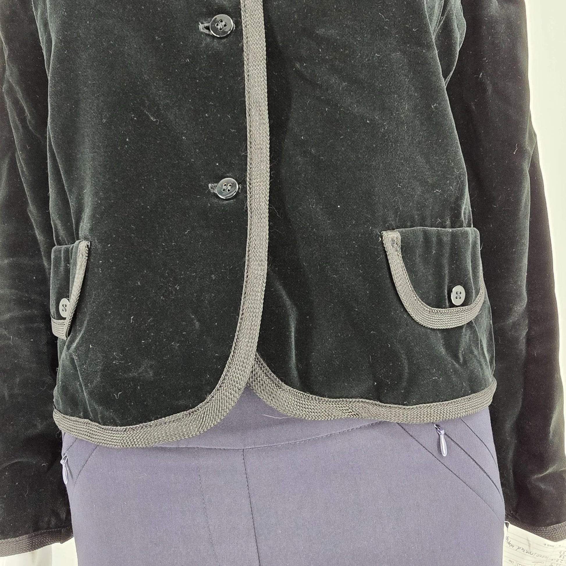 Material: Unknown fabric (velveteen shell with sating lining)
