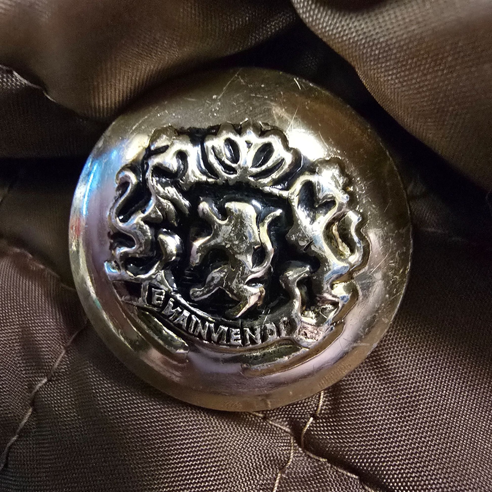 Notable Features: Quilted grid pattern; double-breasted front with lion crest buttons; pockets; fully lined