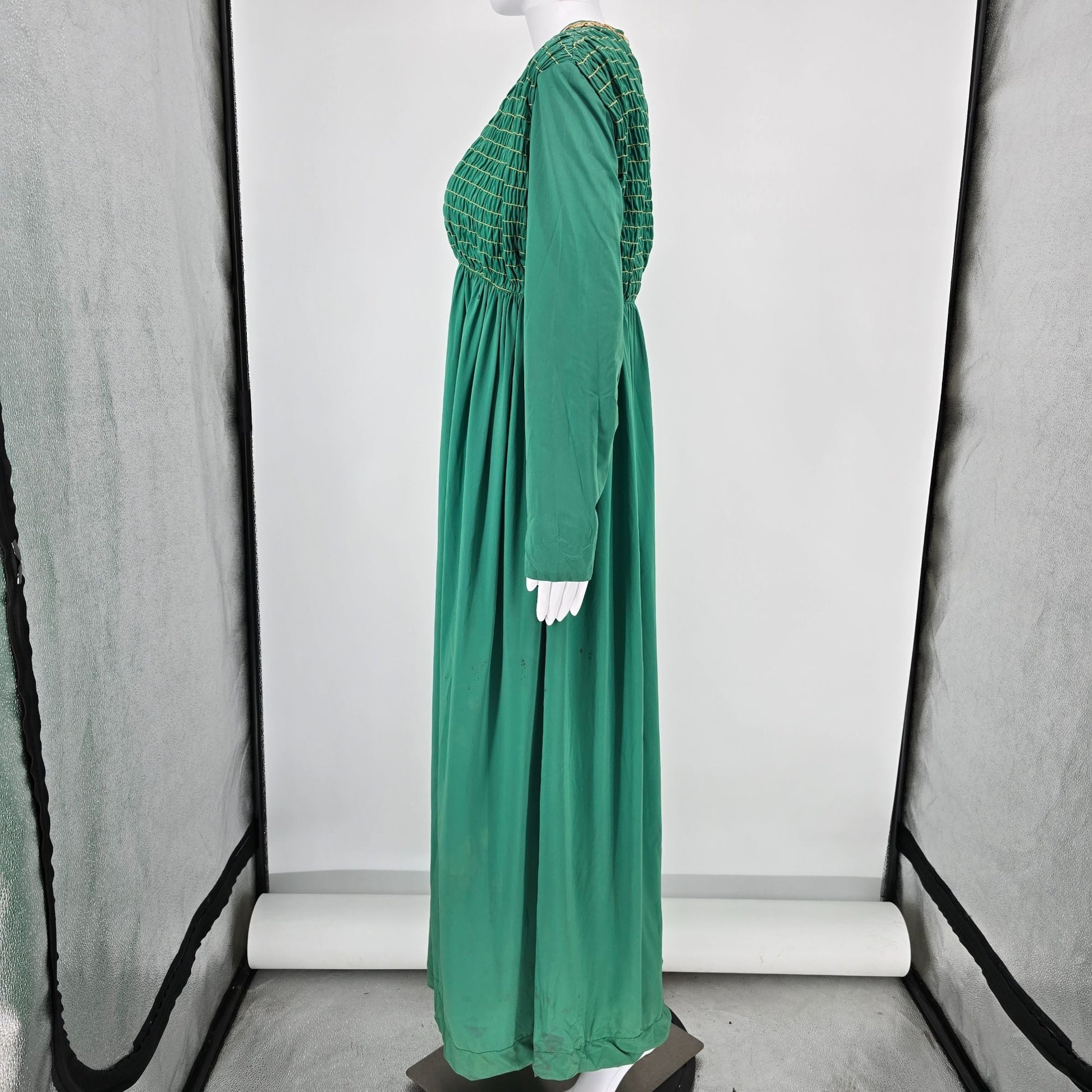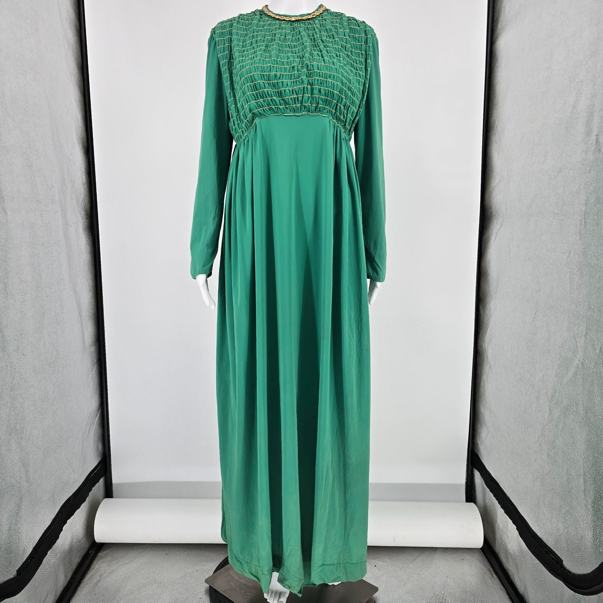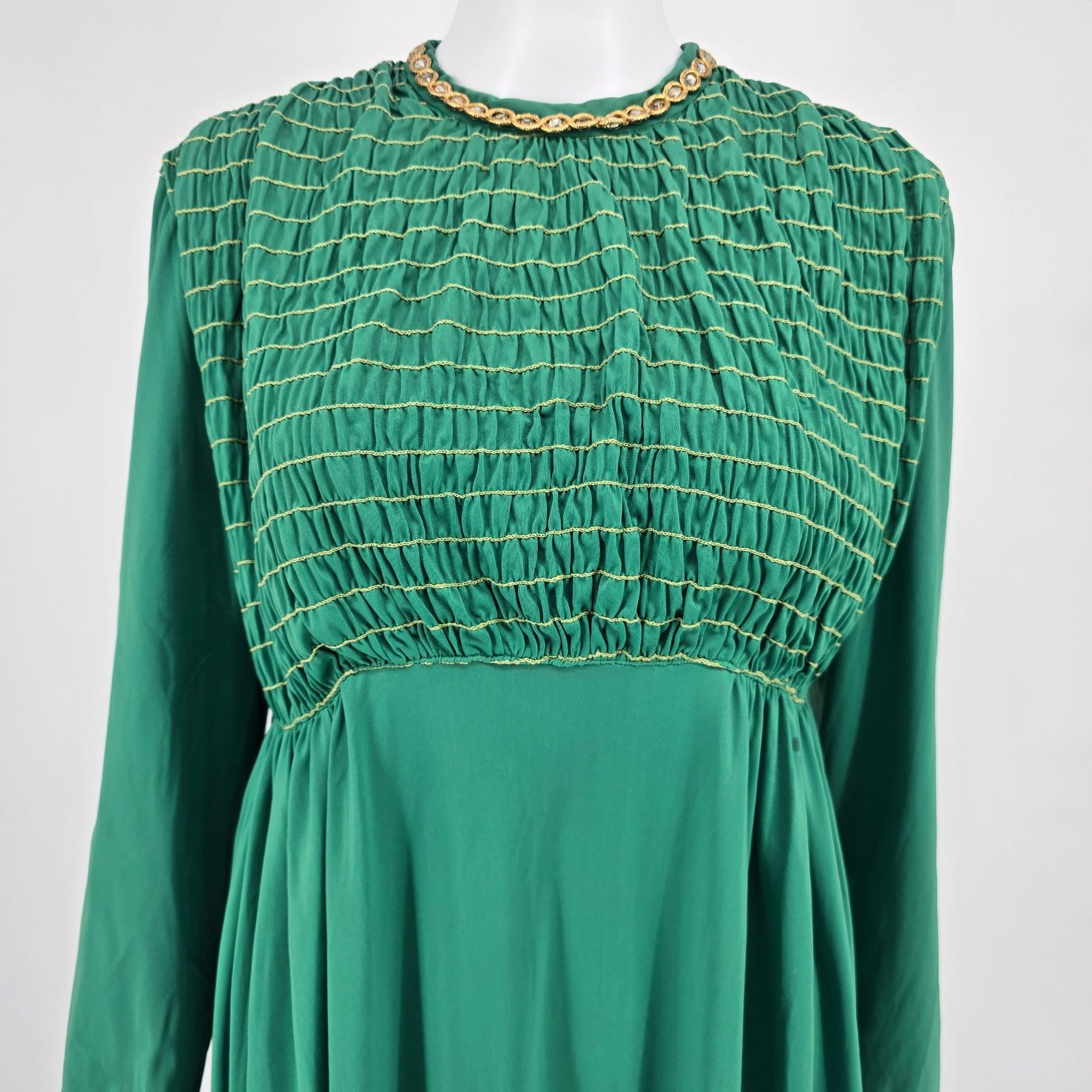 Vintage 1960s Tefft's Miami, Florida Emerald Green Jeweled Neck Maxi Dress (M)