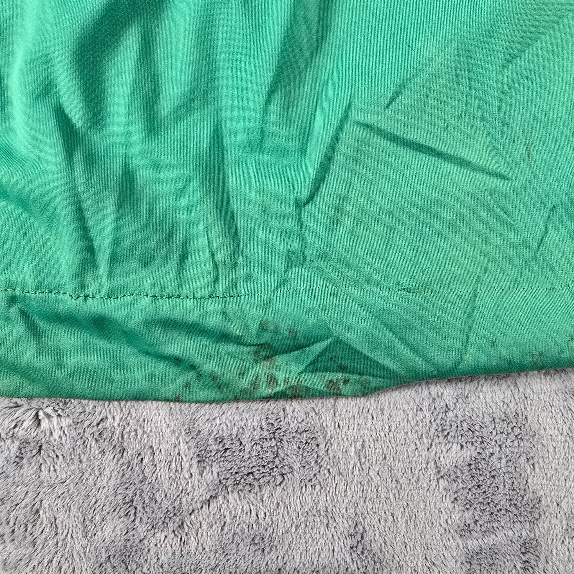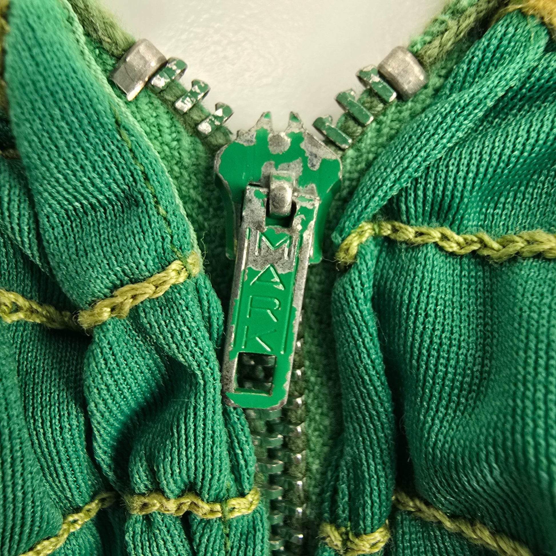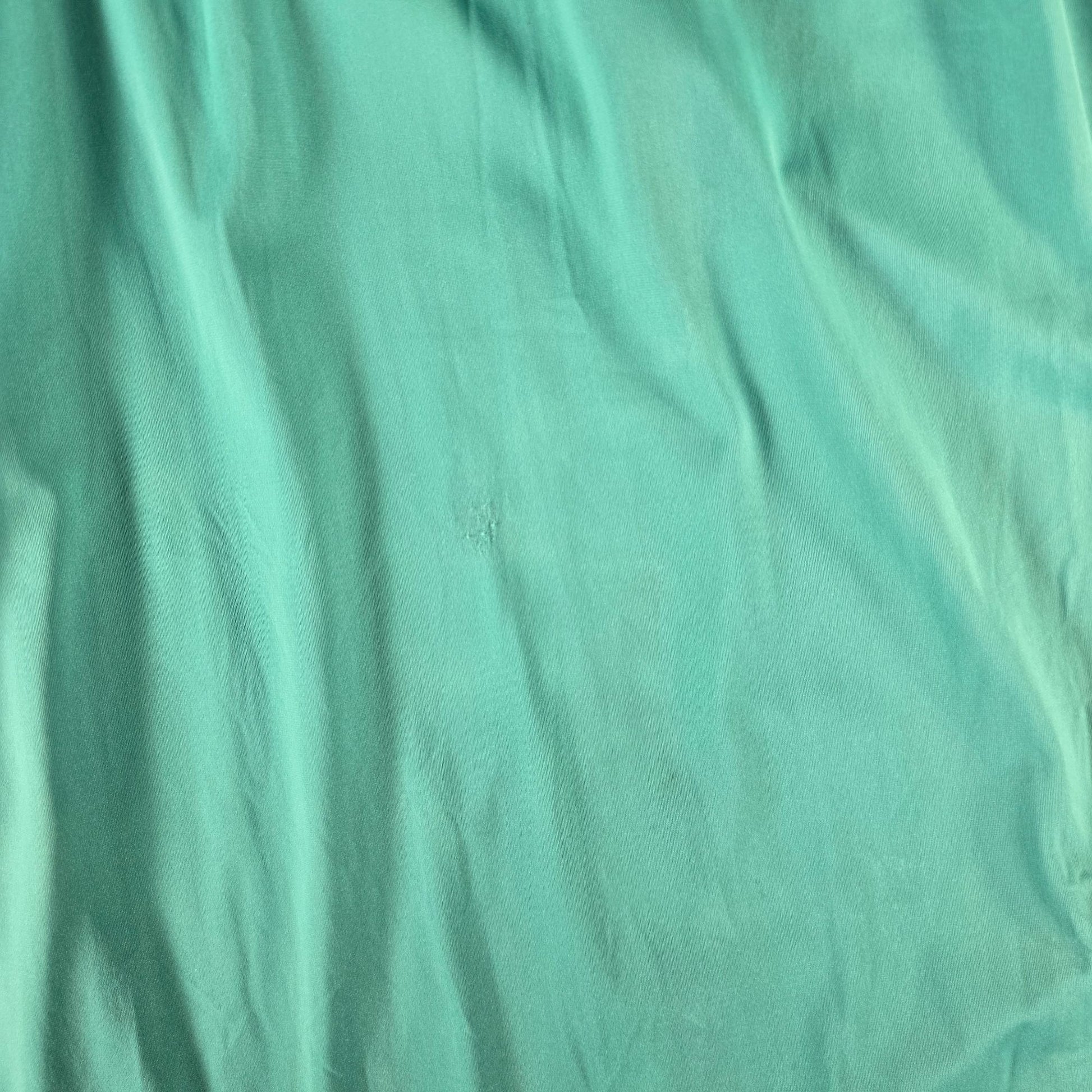 Good overall used vintage condition. Tag partially detached. One spot of heavy fabric wear in middle of skirt. Significant discoloration running along bottom hem. Back zipper shows wear and paint chipping. Generally moderate wear throughout. See photos for details.