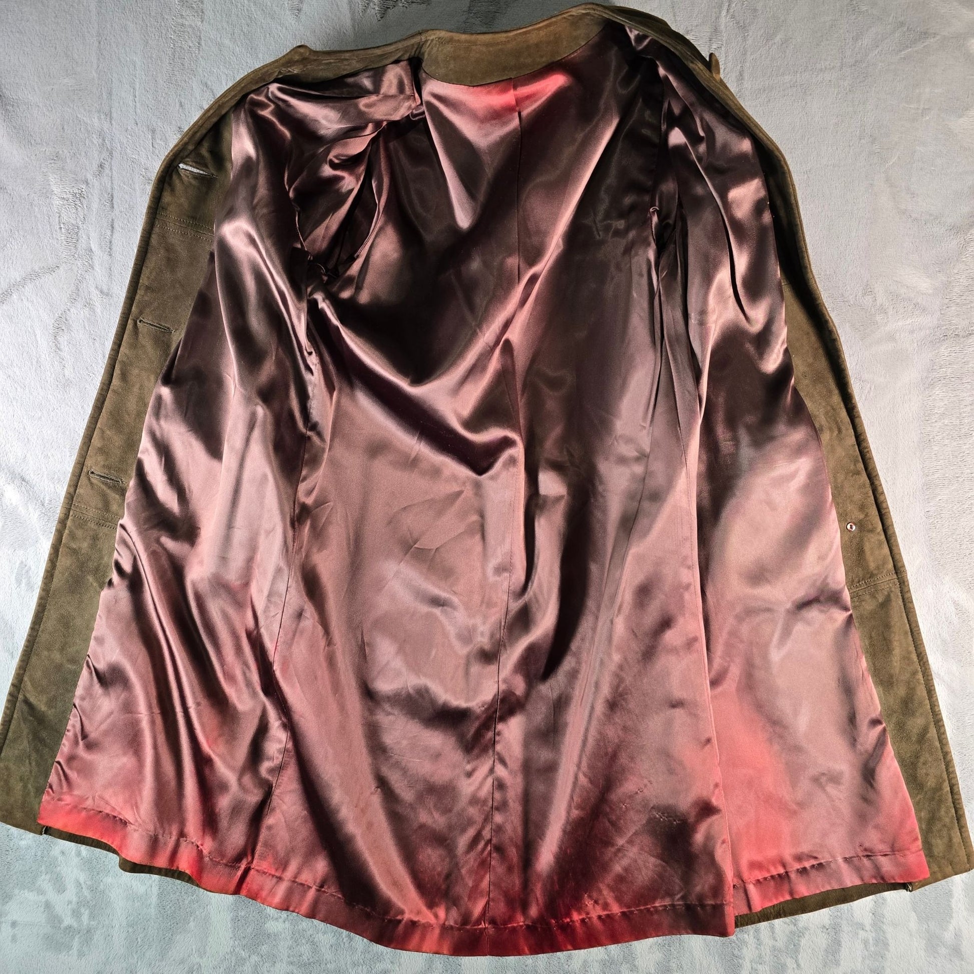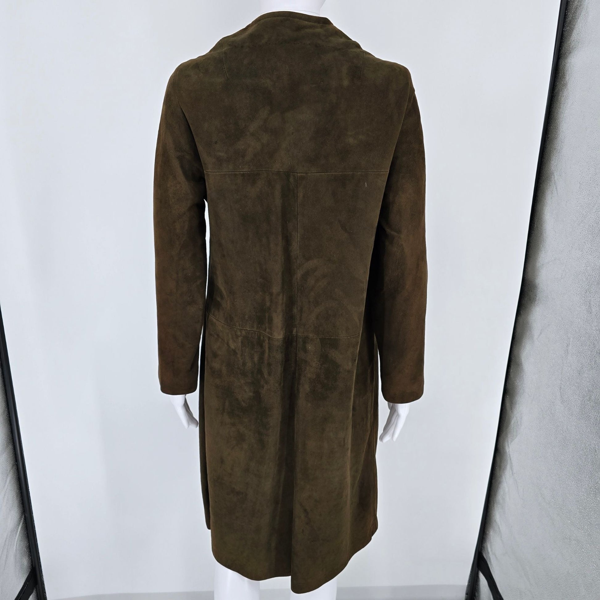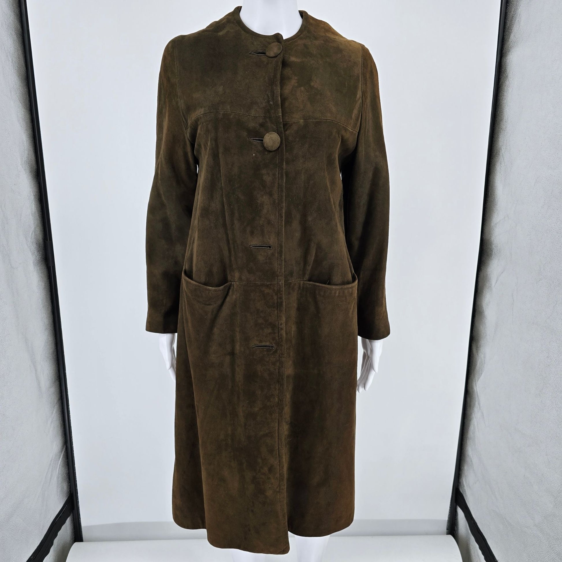 Vintage 1960s Unbranded Women's Brown Suede Leather Collarless Long Coat (S)