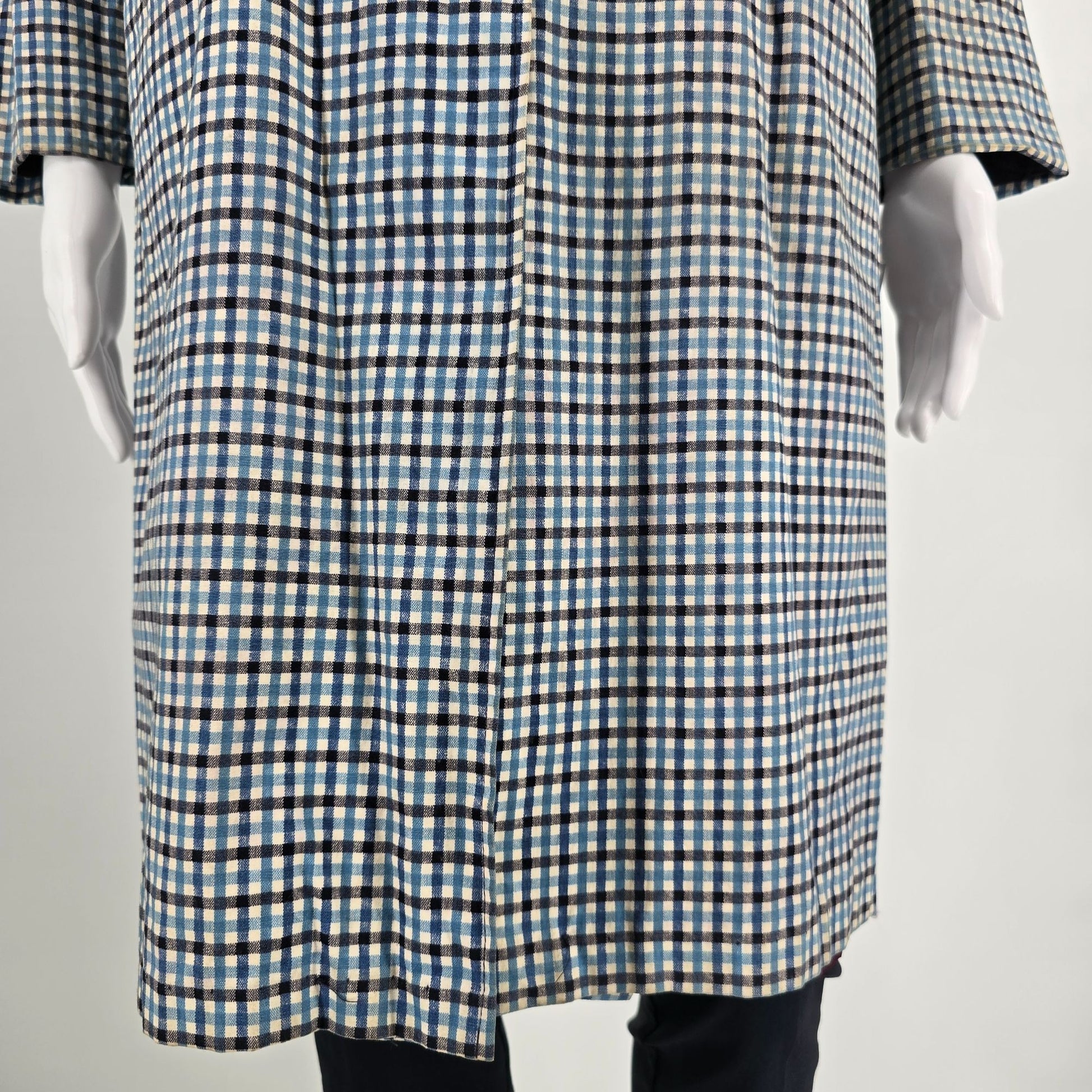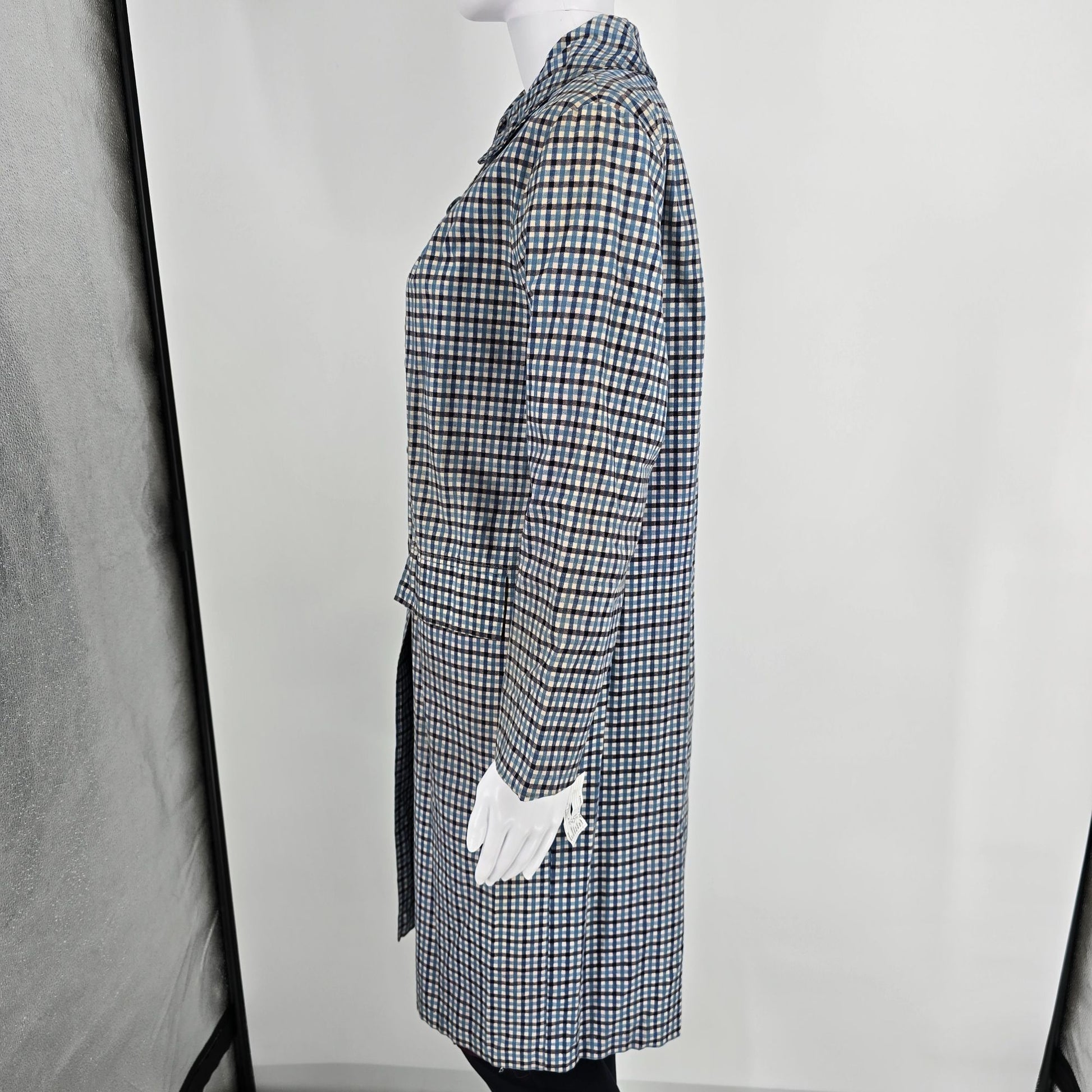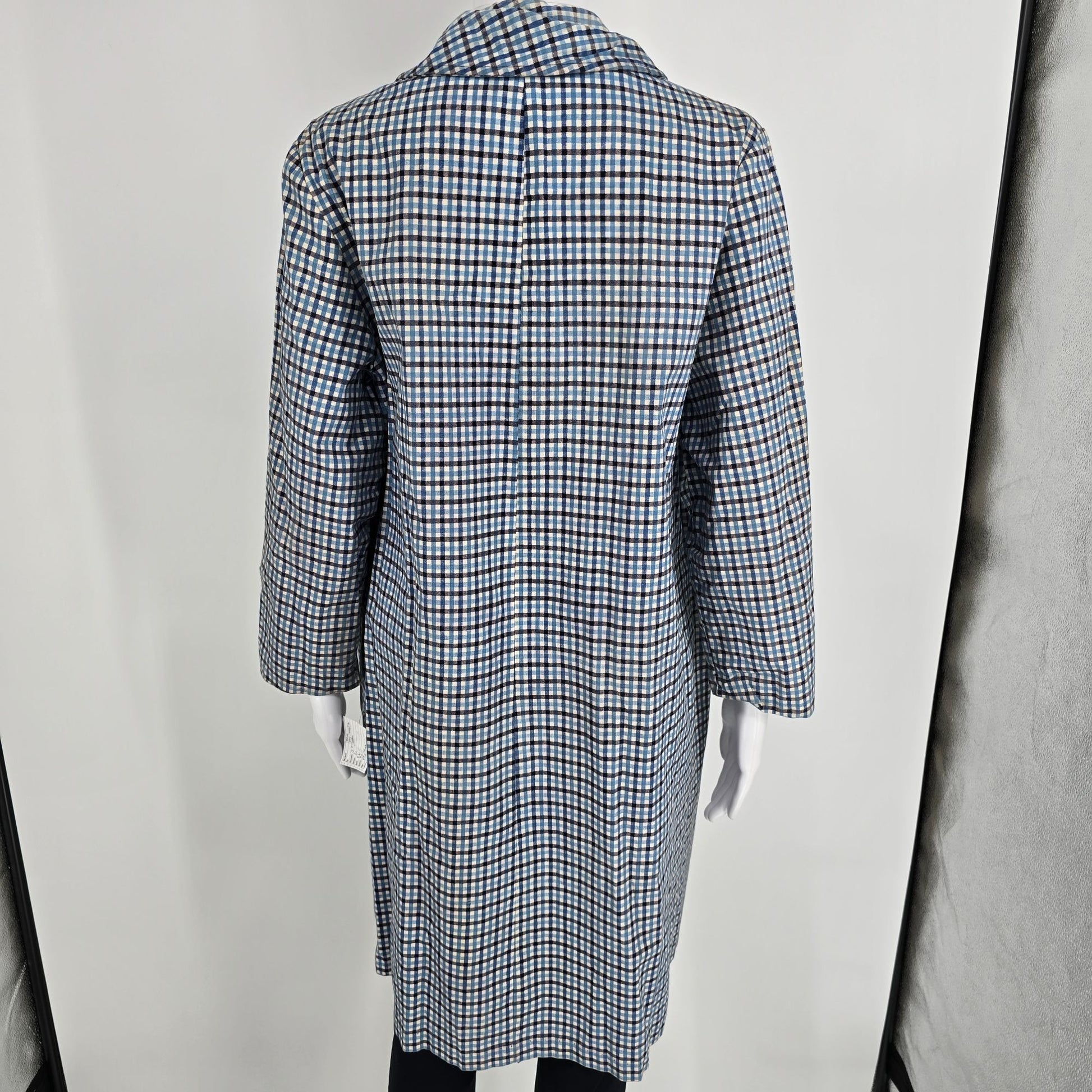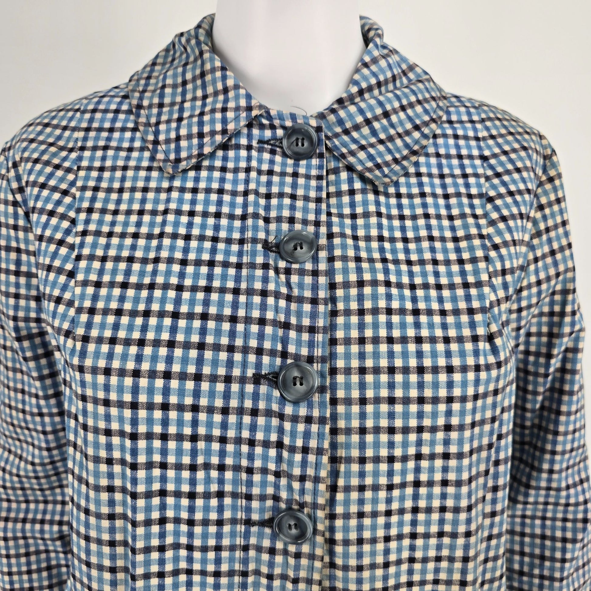 Vintage 1960s Unbranded Women's Single-breasted Blue Check Plaid Car Coat (M/L)
