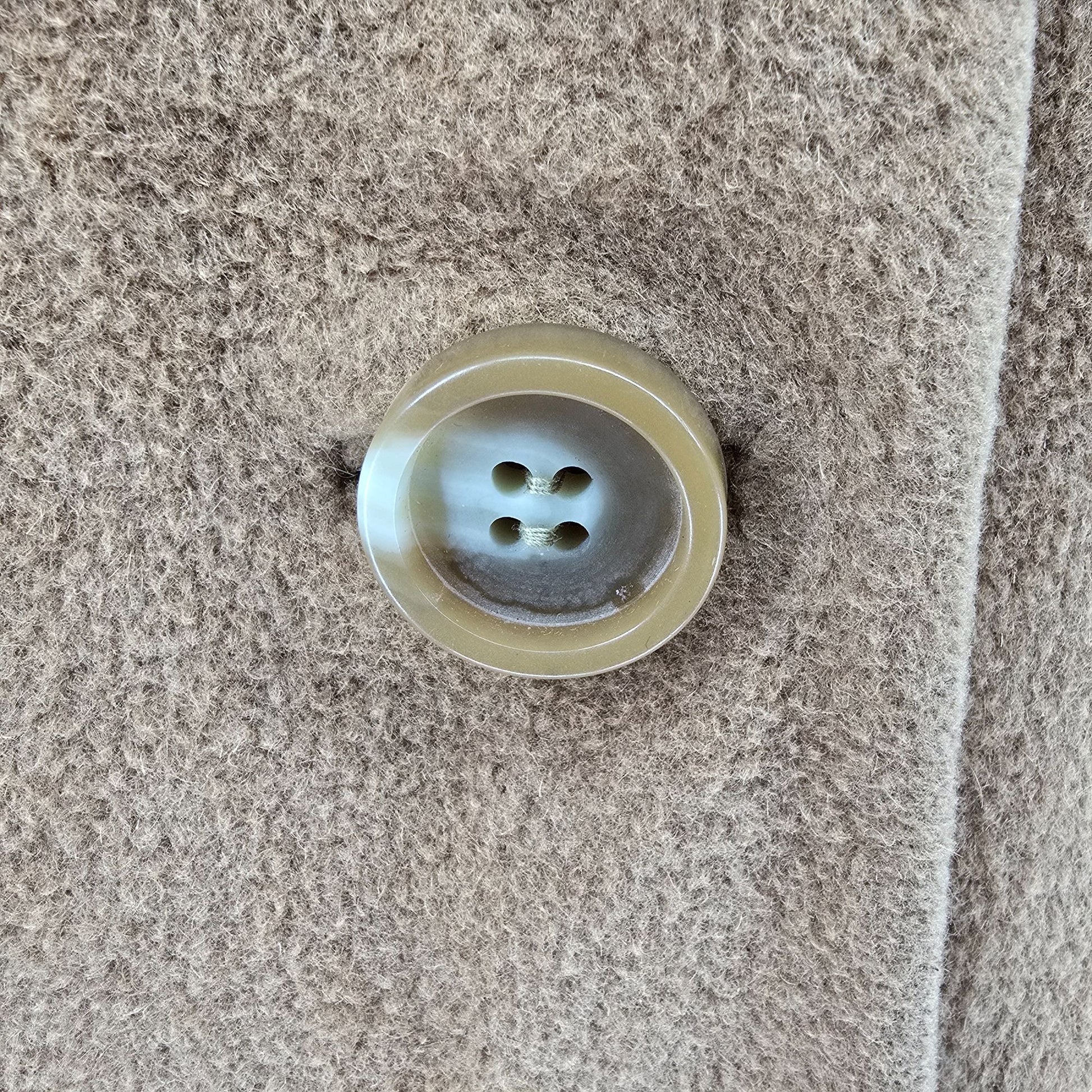 Notable Features: Back half-belt (martingale); Full satin lining; Thick, oversized buttons