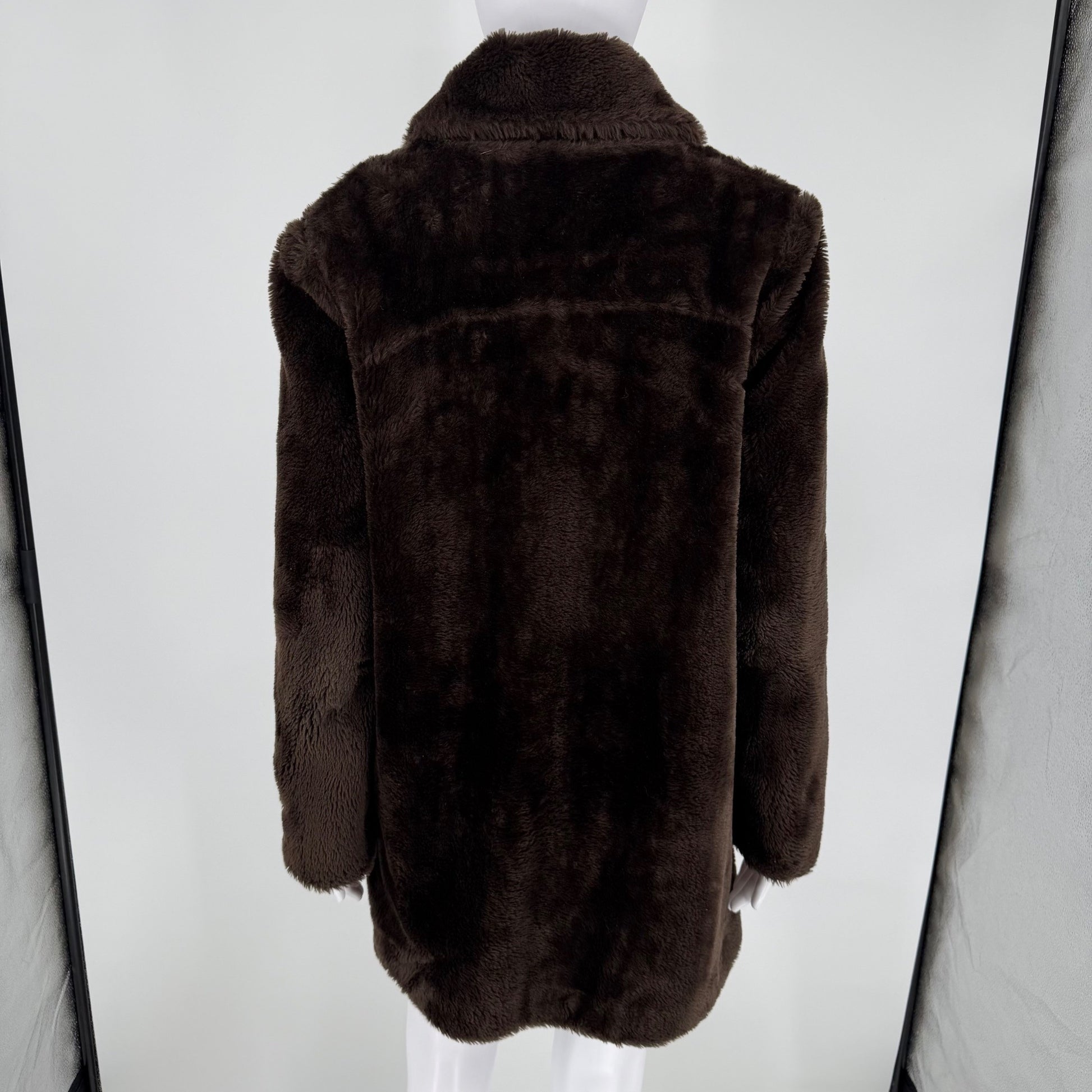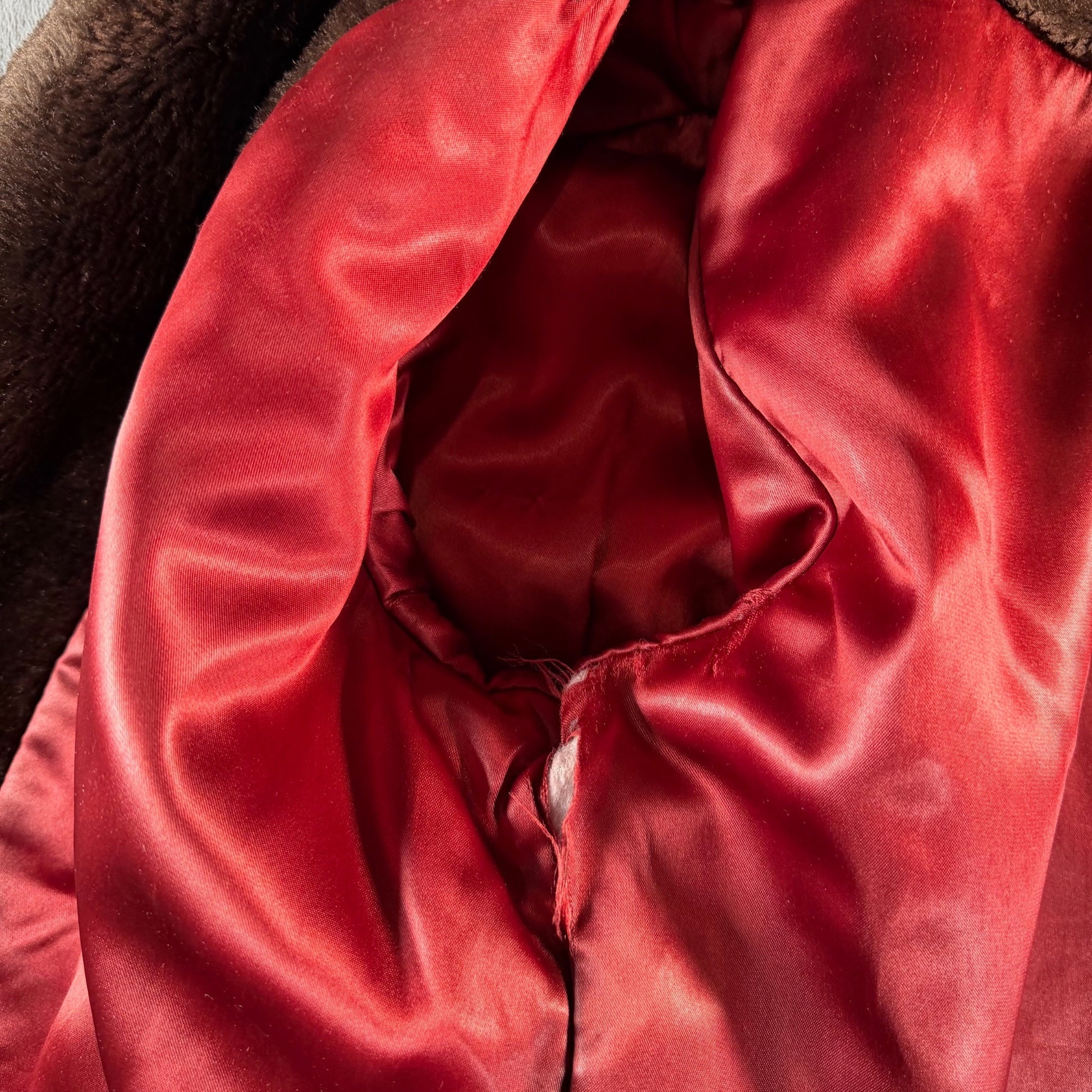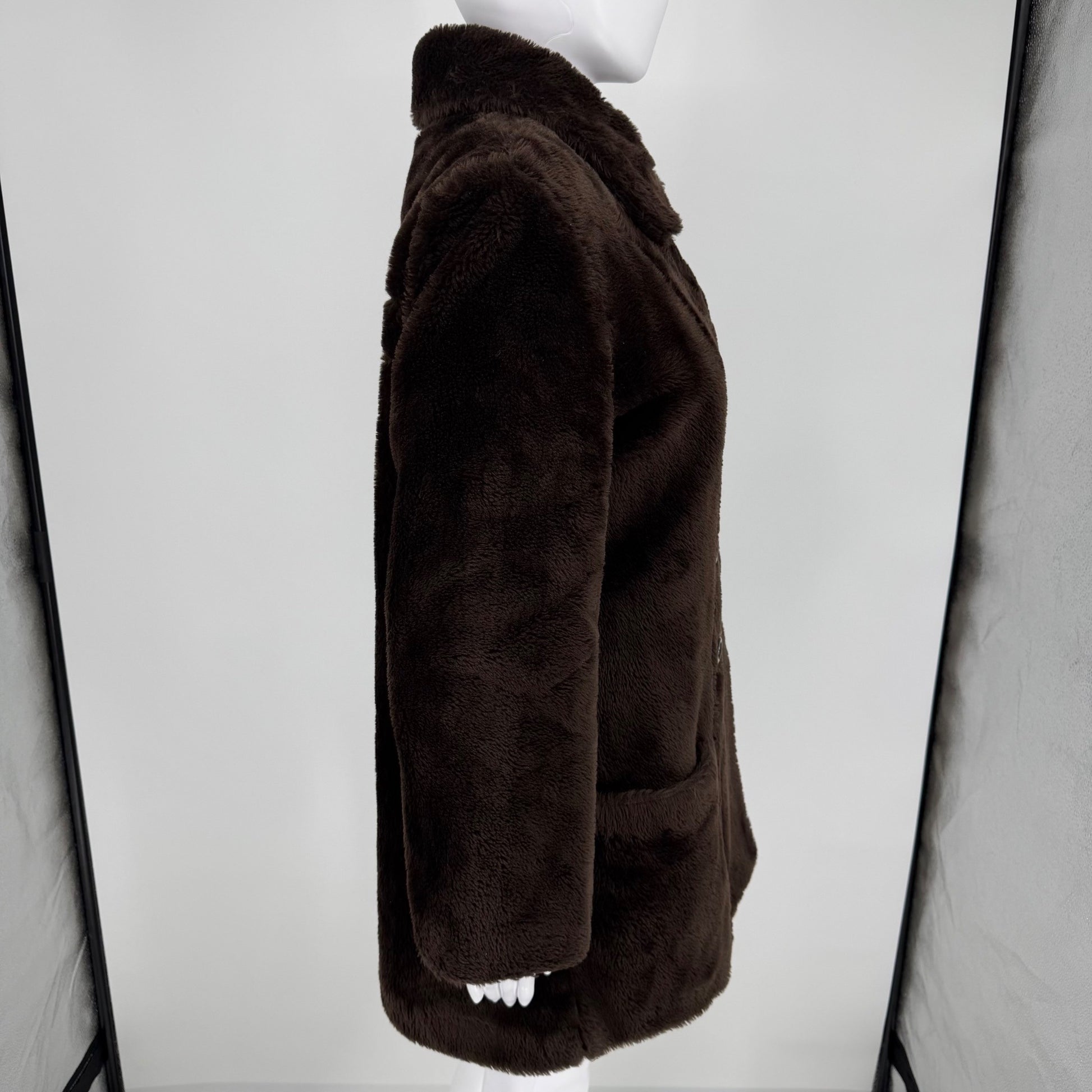 Vintage 1960s Women's Brown Faux Fur Teddy Bear Double-Breasted Coat (M)