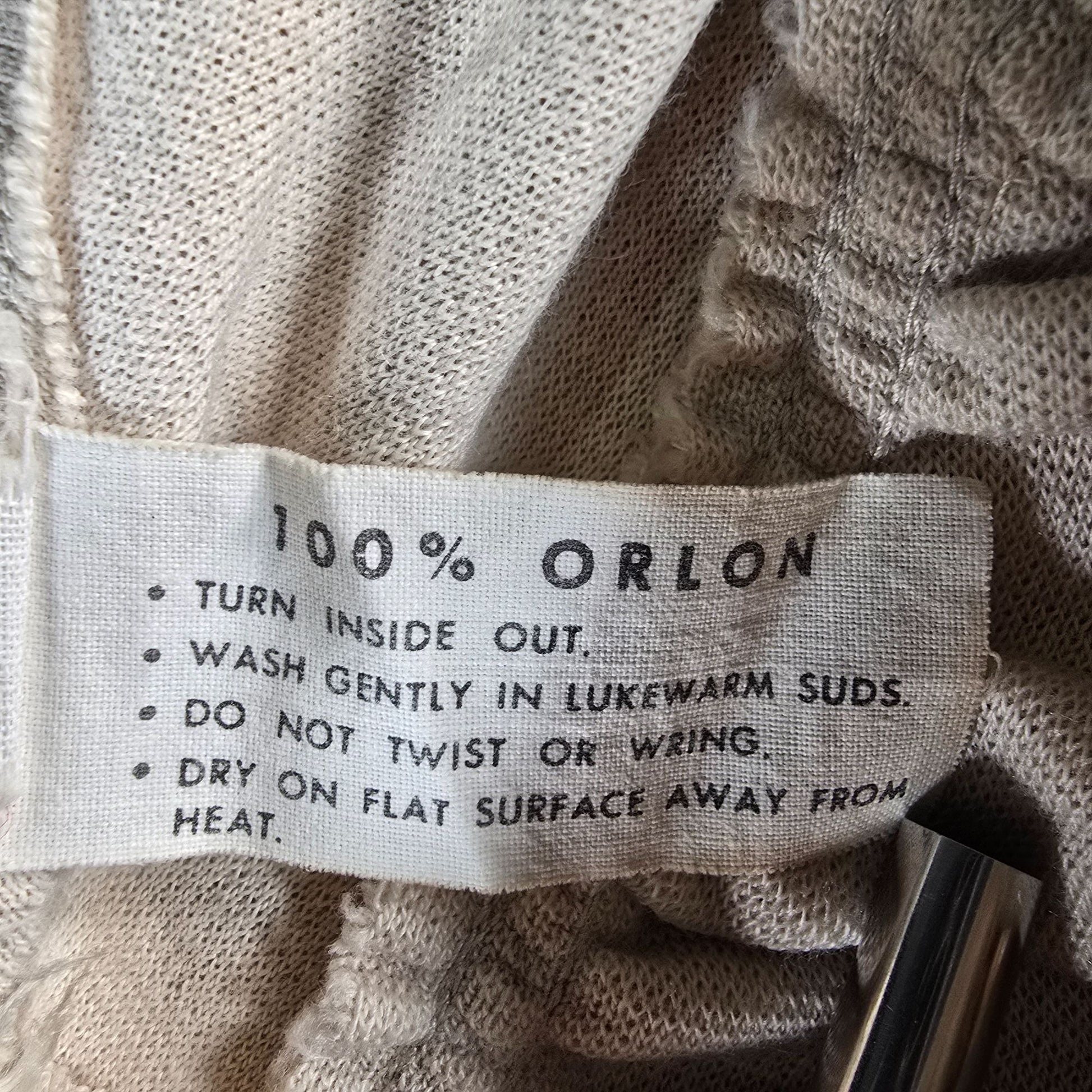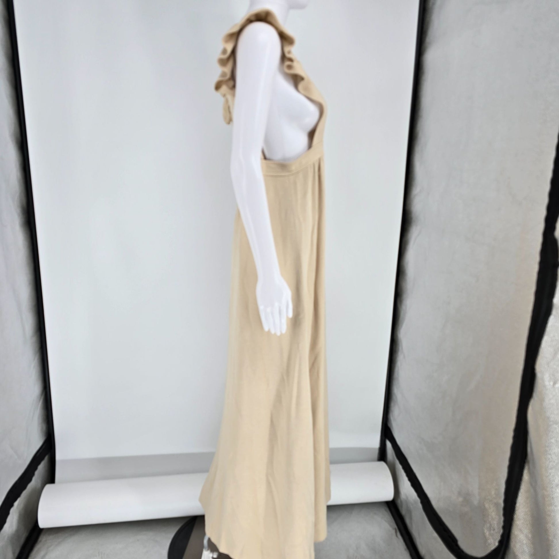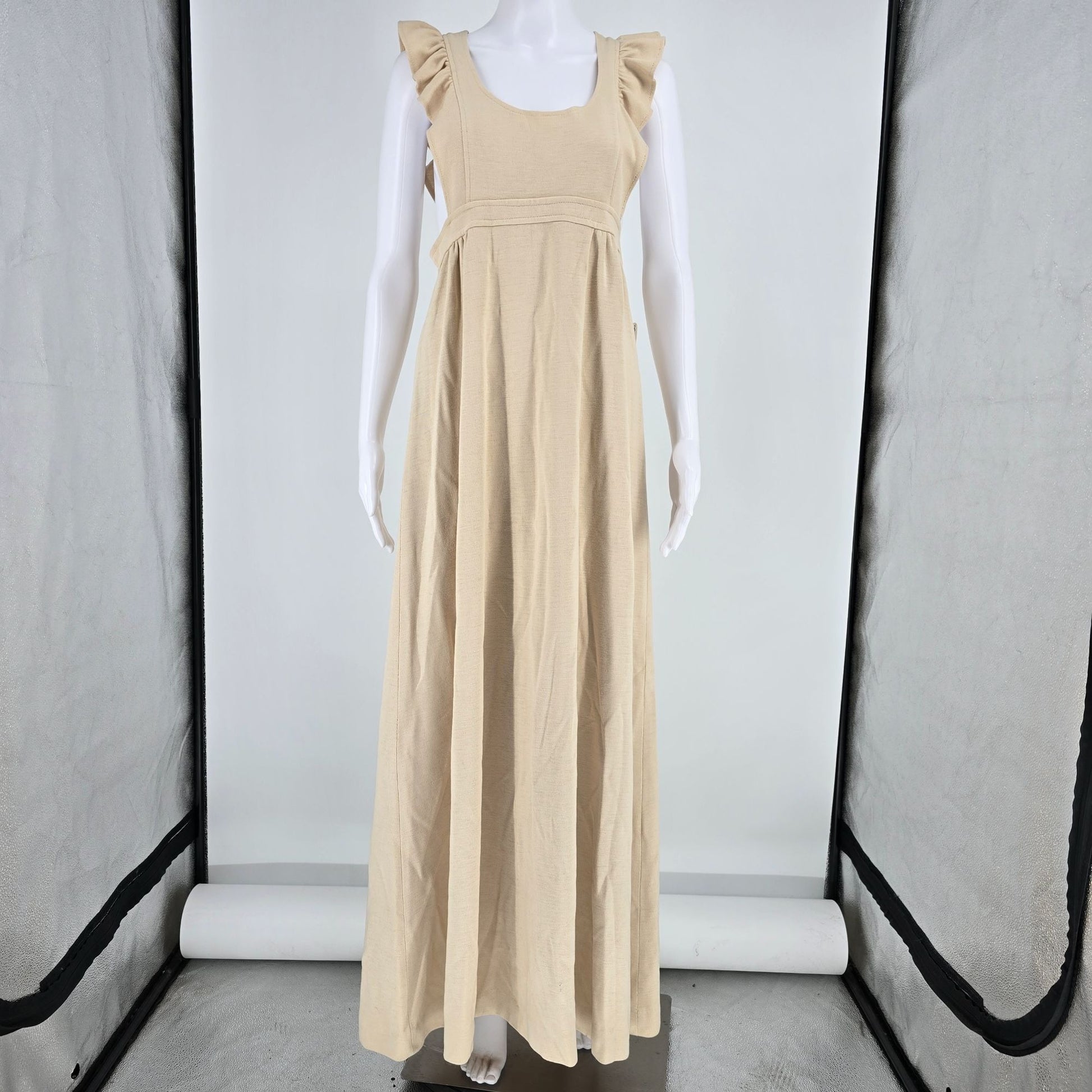 Vintage 1970s 100% Orlon Beige Ruffle Strap Empire Waist Knit Maxi Dress (M)