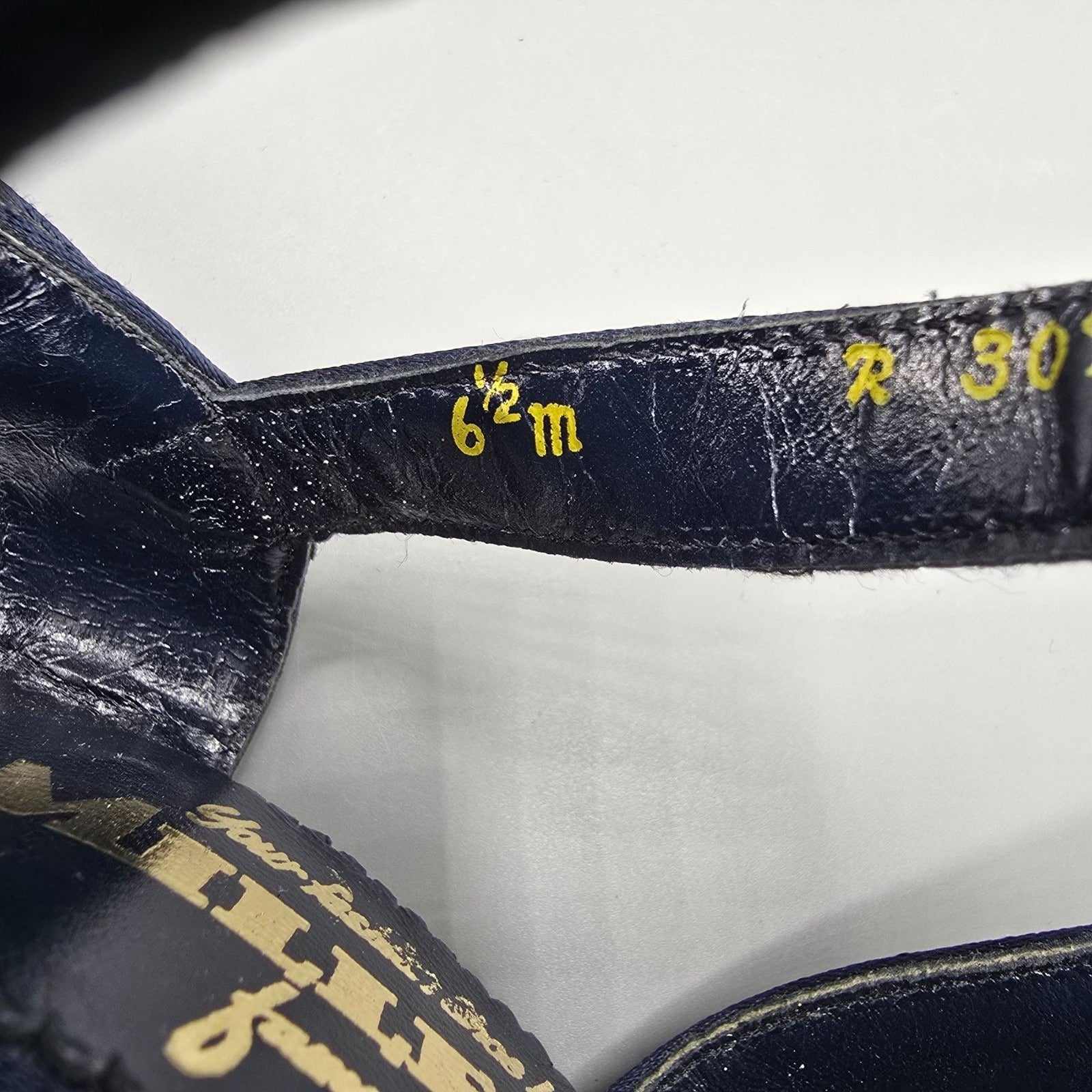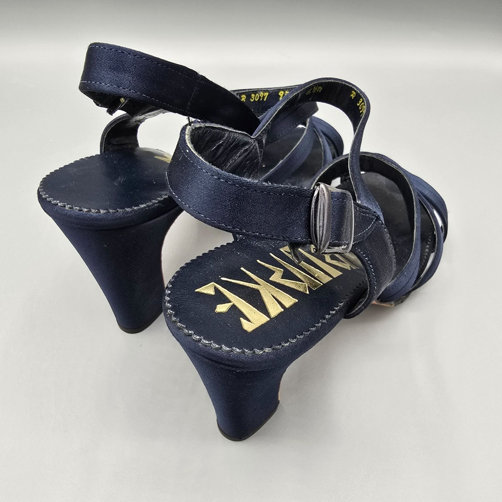 Vintage 1970s Adam Burke for Miller's Navy Satin Strappy Slingback Sandals -6.5M