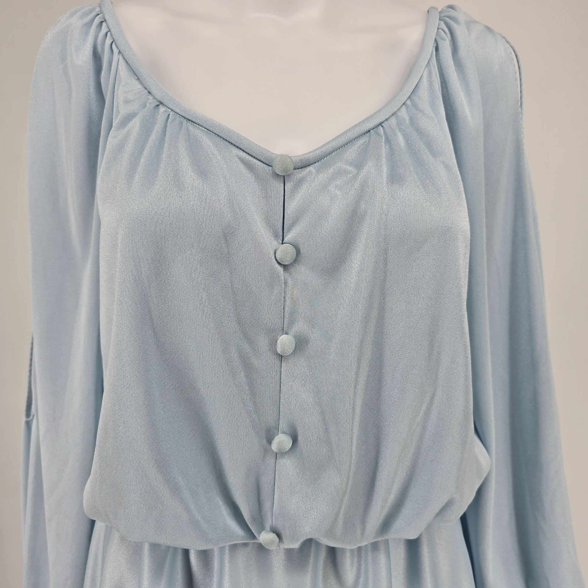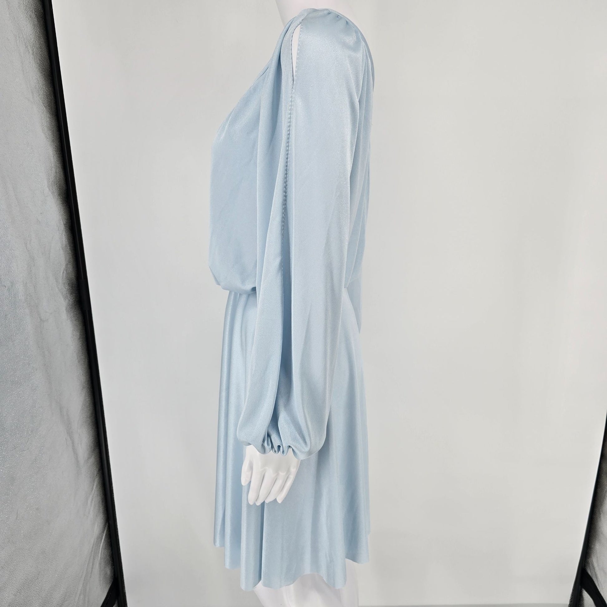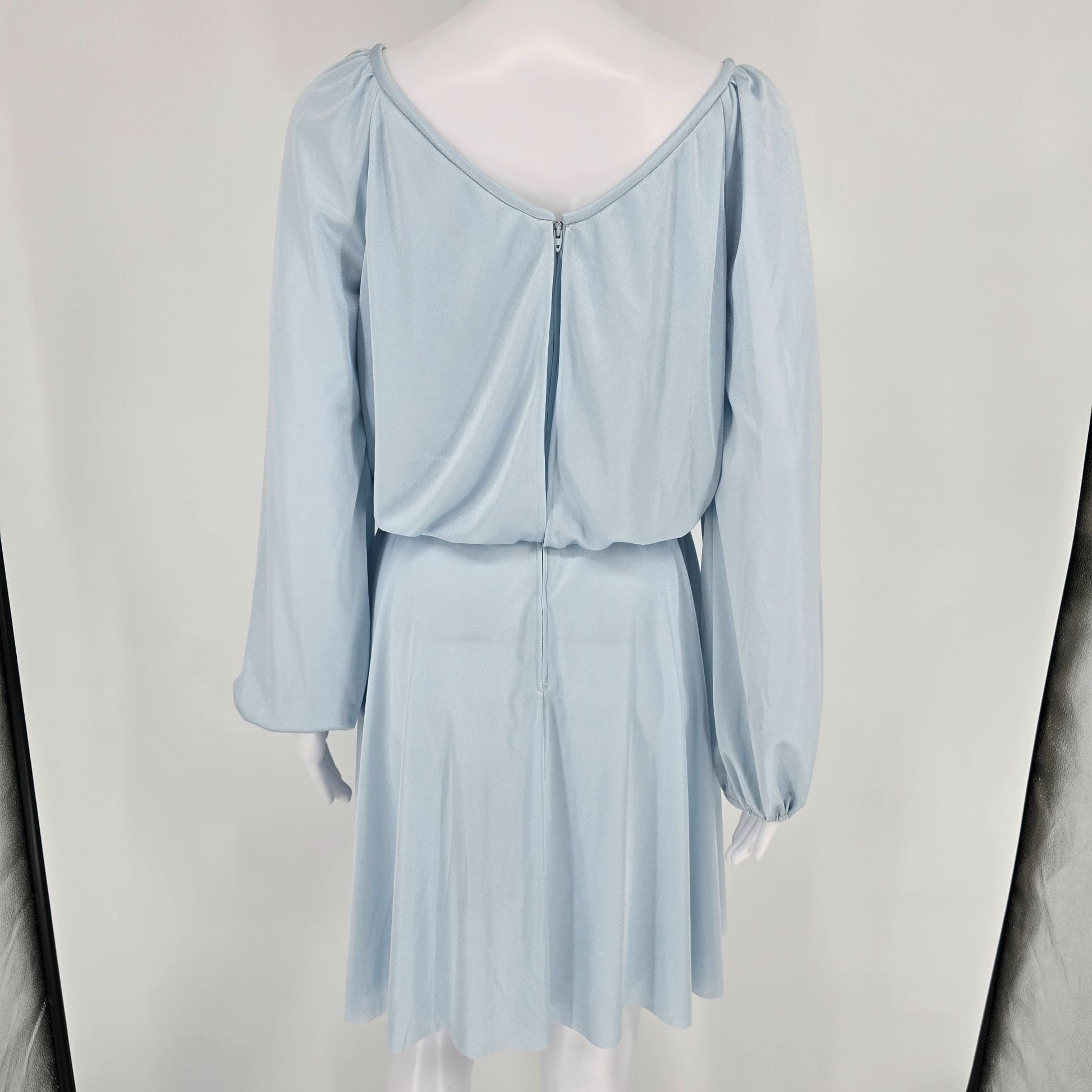Vintage 1970s Baby Blue Long Sleeve Blouson Disco Party Mini Dress (S/M)