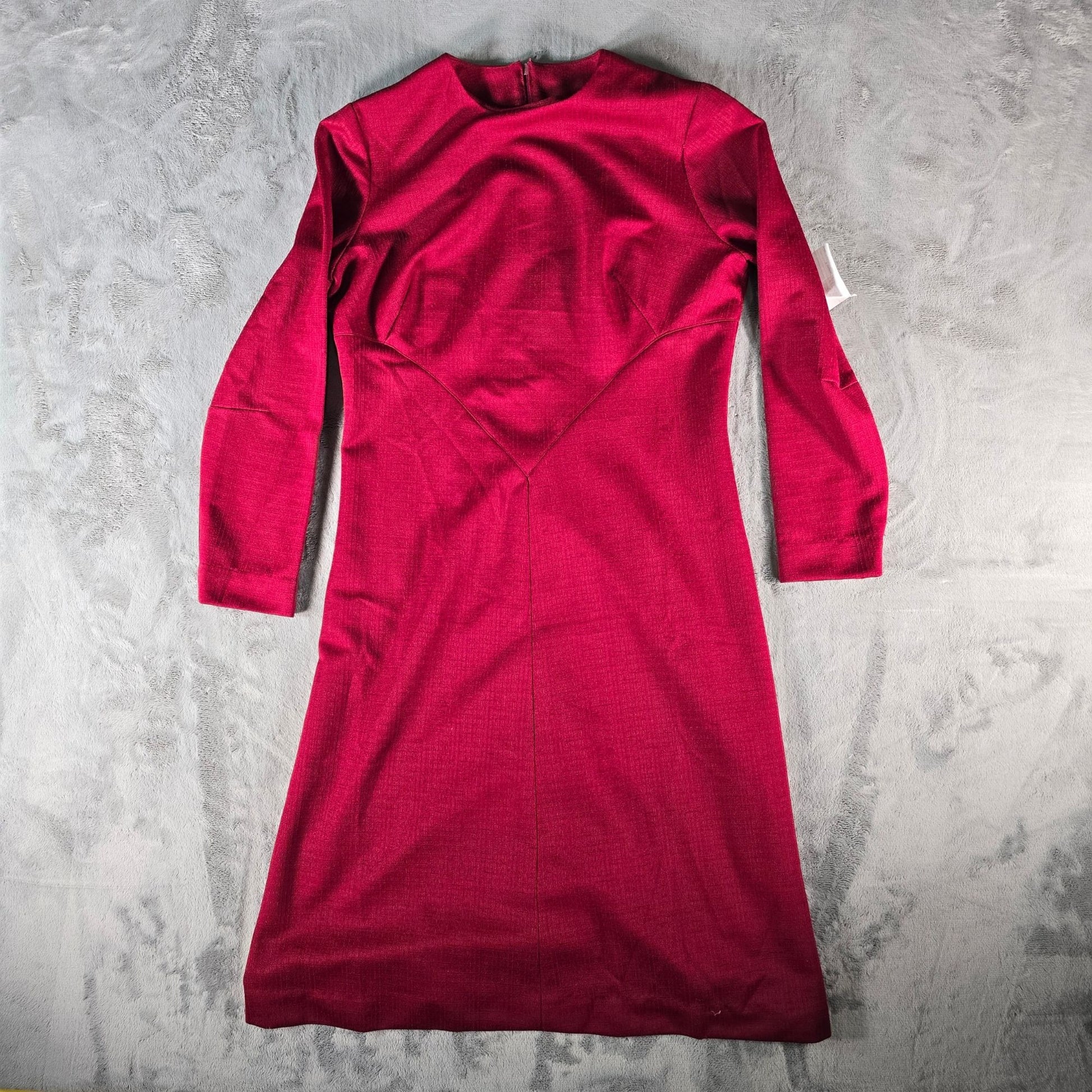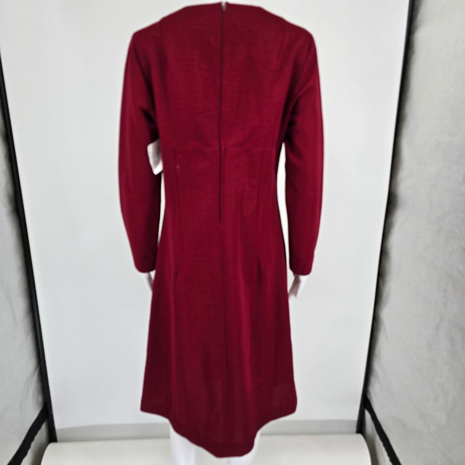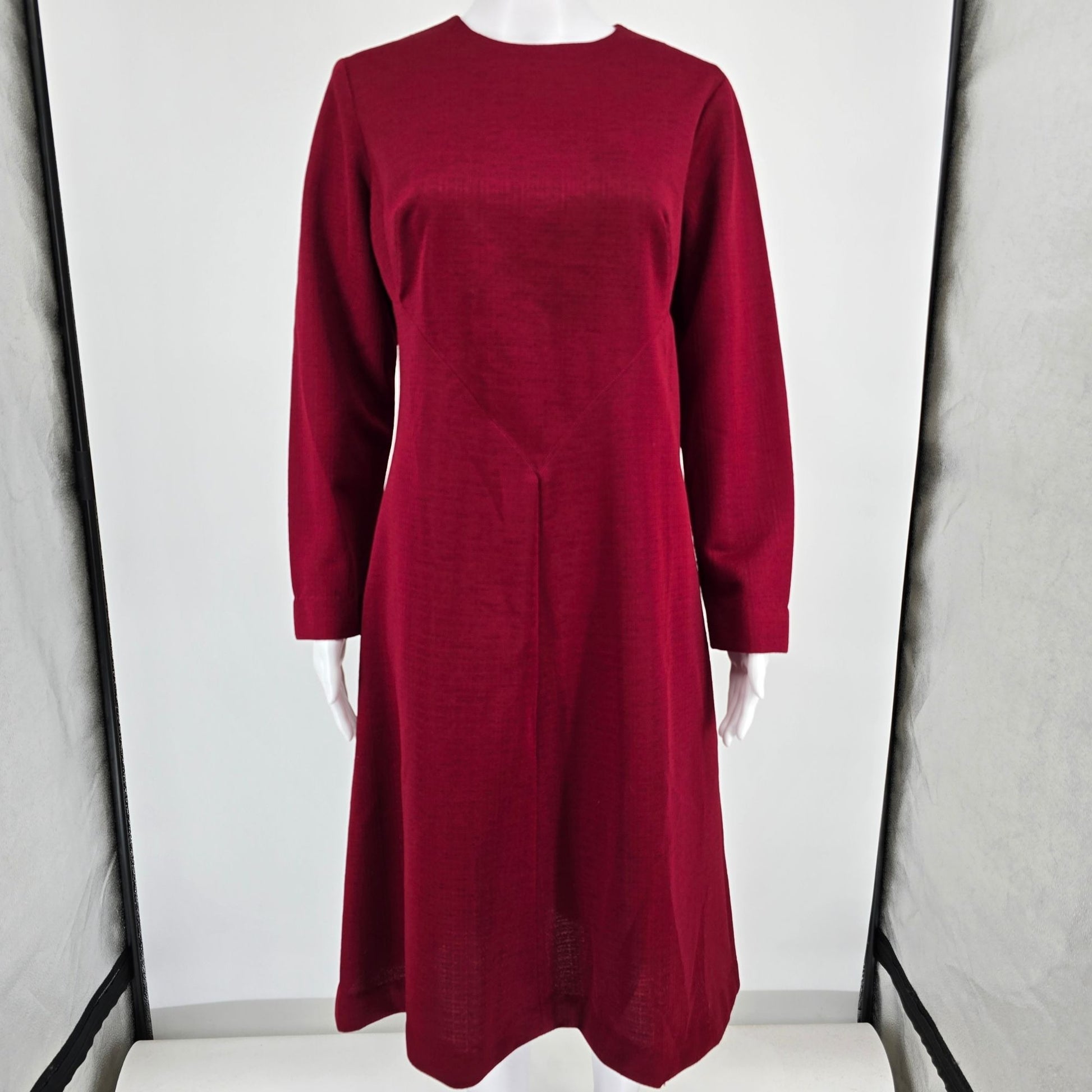 Vintage 1970s Burgundy Textured Long Sleeve Back Zip A-Line Midi Dress (M/L)
