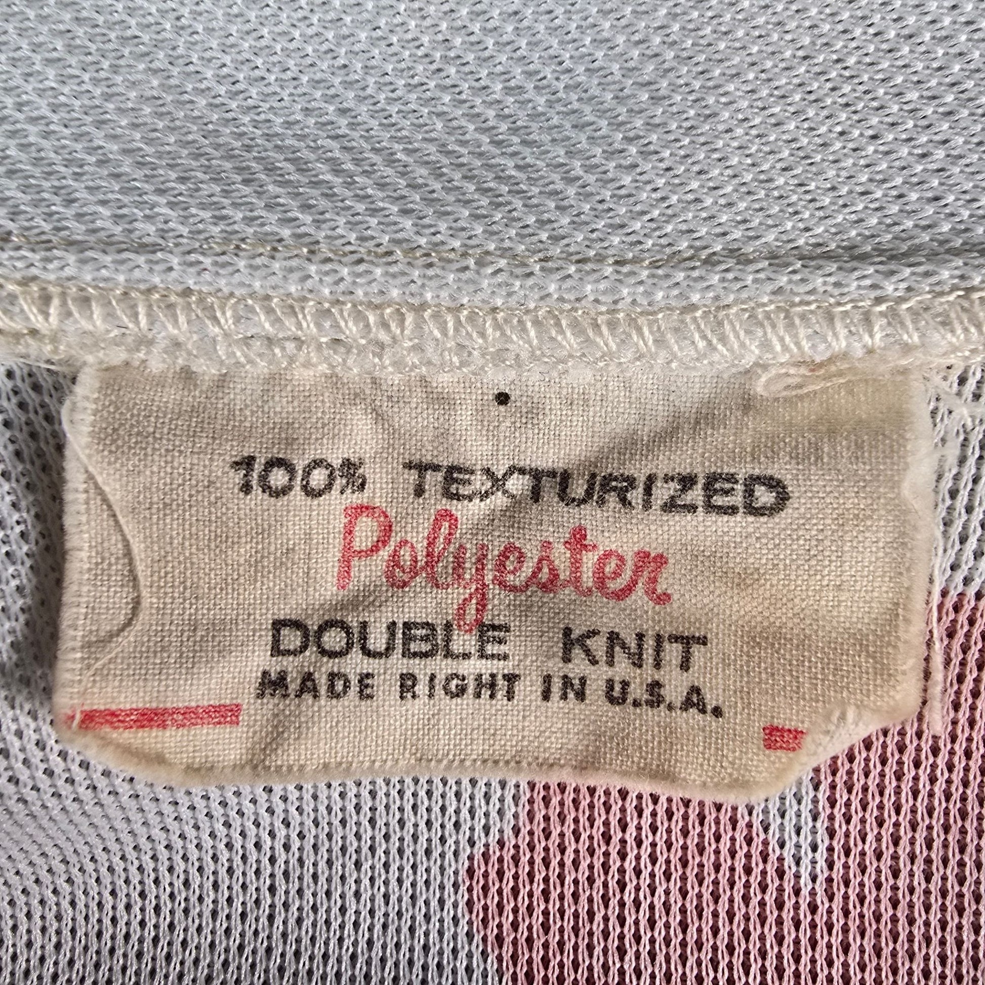 Fair to Good overall used vintage condition. No identified rips, cuts, holes, or tears. A few minor fabric snags. Two stains on the front to the left of the middle buttons. Area of staining on right side of front near bottom hem. Faint discoloration around collar. A few scattered markings. Light to moderate fabric wear throughout. See photos for details.