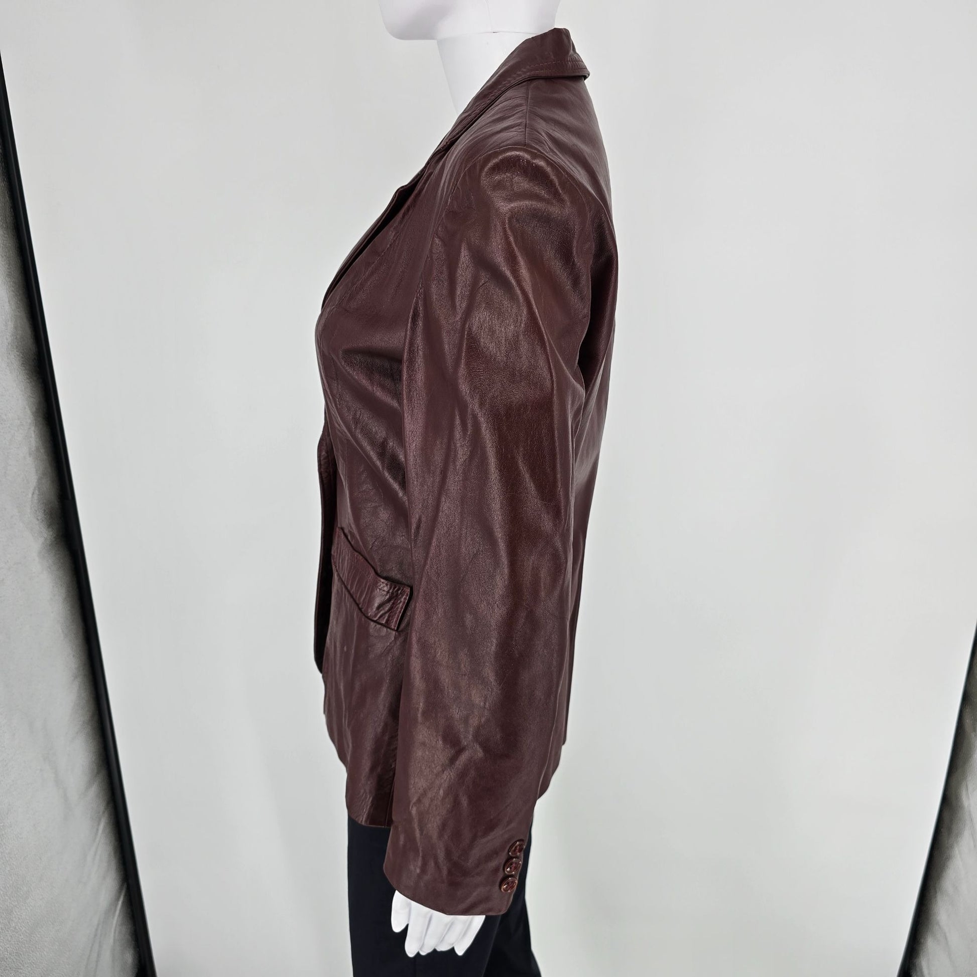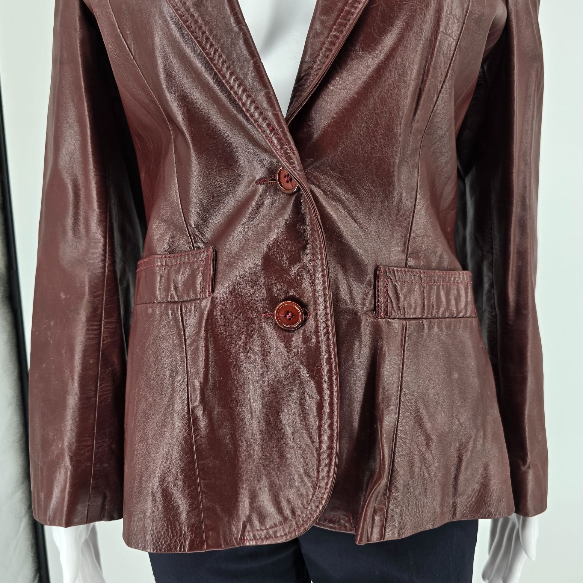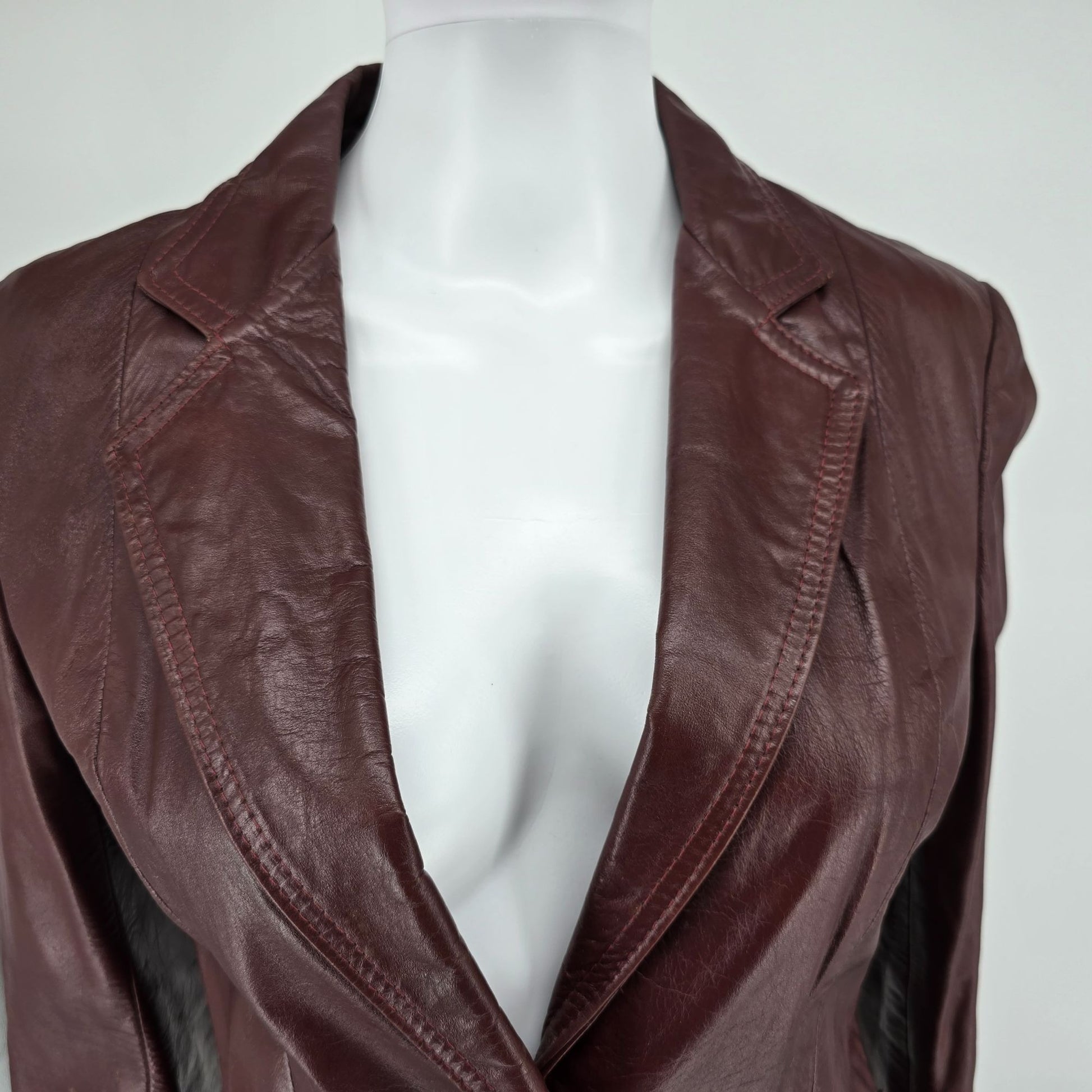 Vintage 1970s Foxmoor Women's Oxblood Two Button Leather Blazer Jacket (S)