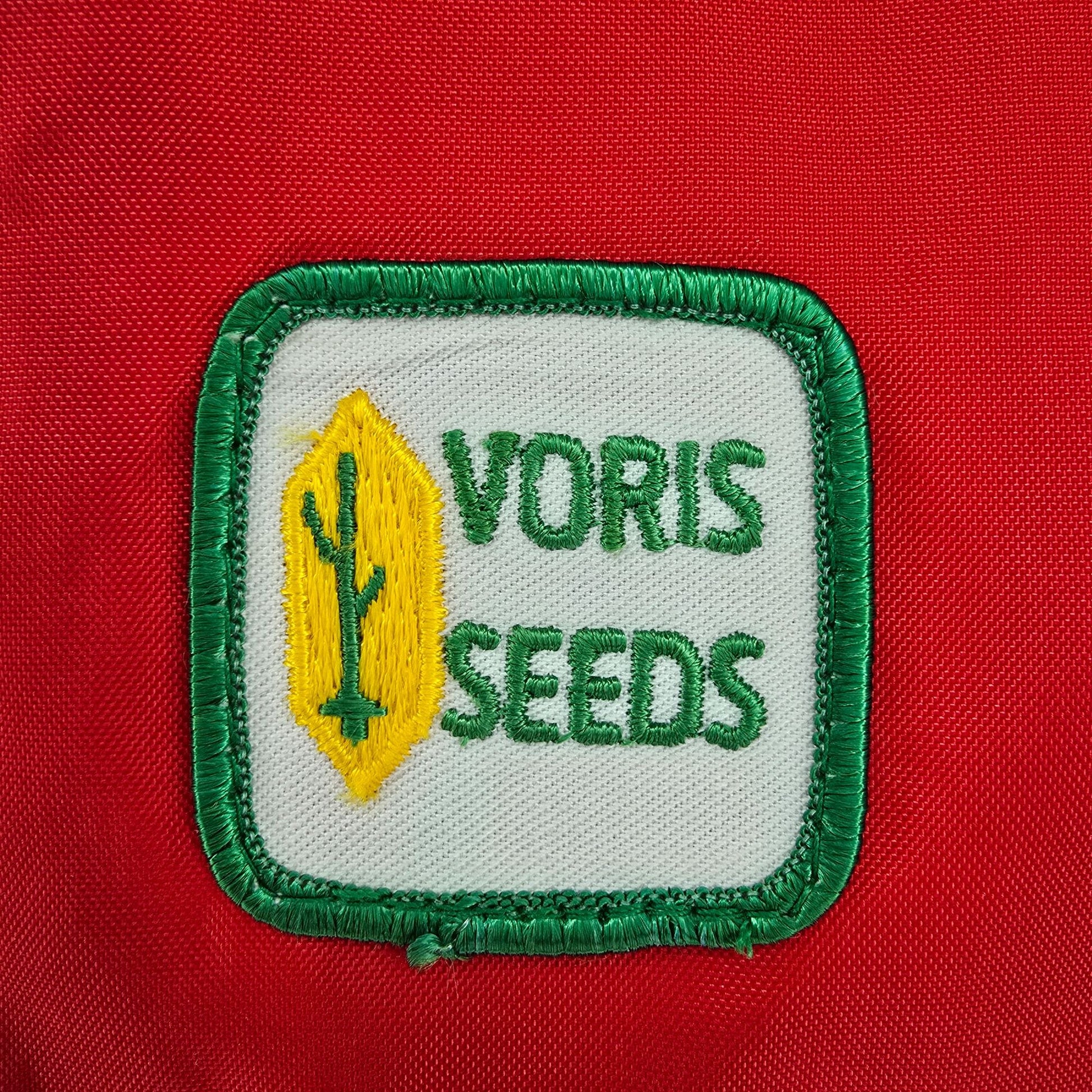 Notable Features: Voris Seeds Patch; "Four Leaf Clover Farm Chambers & Sons Since 1868" back text; Snap front; Nylon Satin Shell