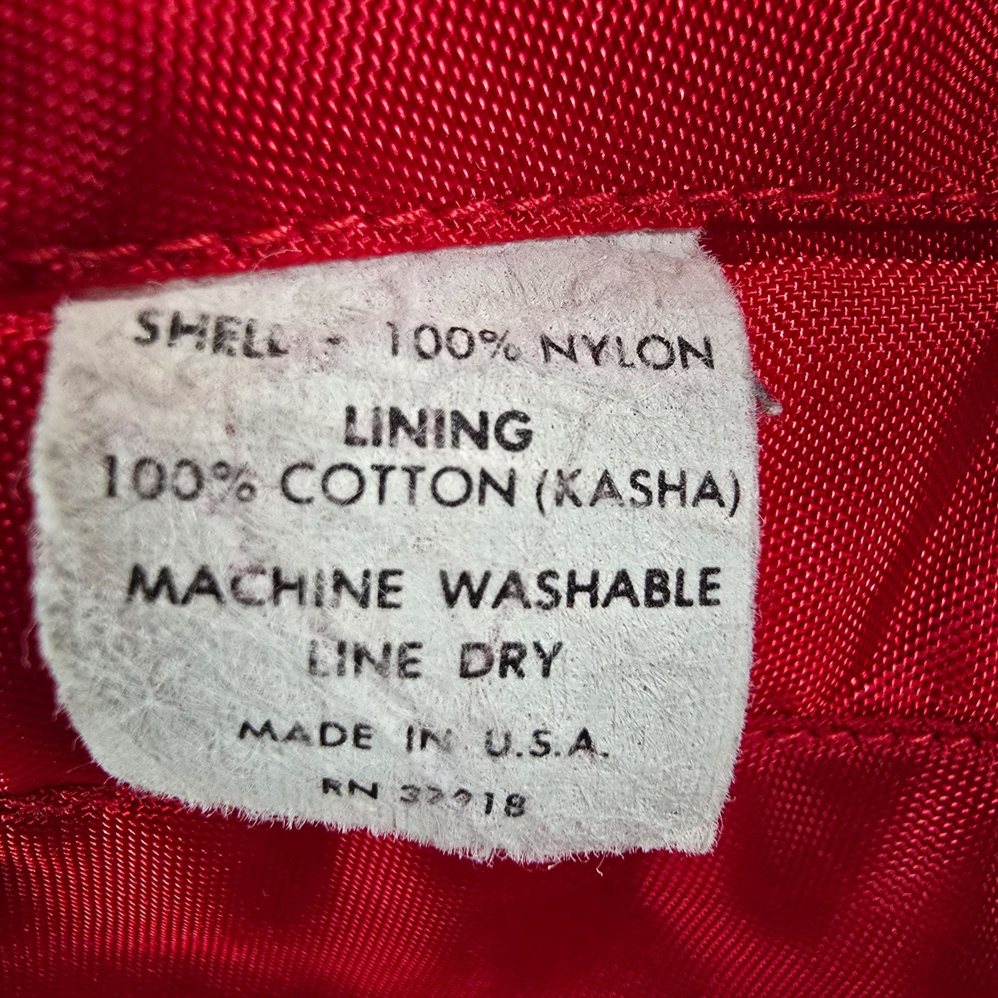 Good overall used vintage condition. No identified rips, cuts, holes, or tears. All hardware functional. Small white mark on right side near collar. Some visible wear to back text. Heavy pilling of inner lining (not visible when jacket is worn). Generally light overall wear. See photos for details.