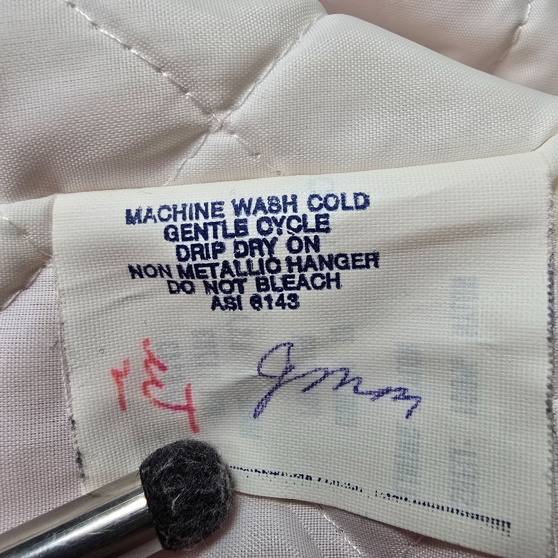 Good overall used vintage condition. No identified rips, cuts, holes, or tears. Area of dark staining on the back of the right sleeve near the elbow. A couple of other small spots of discoloration. Light to moderate fabric wear and creasing throughout. See photos for details.
