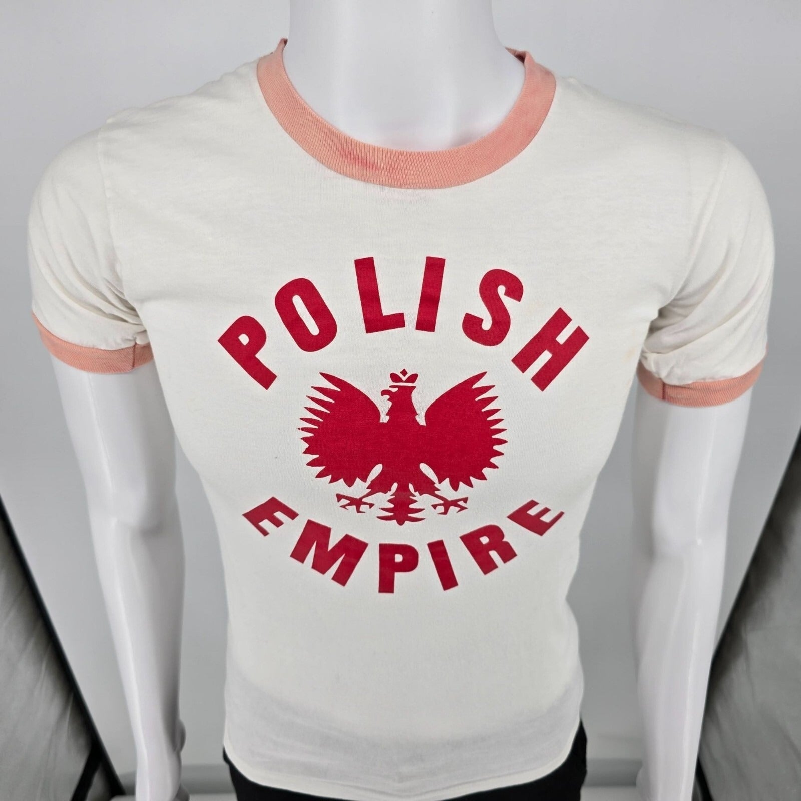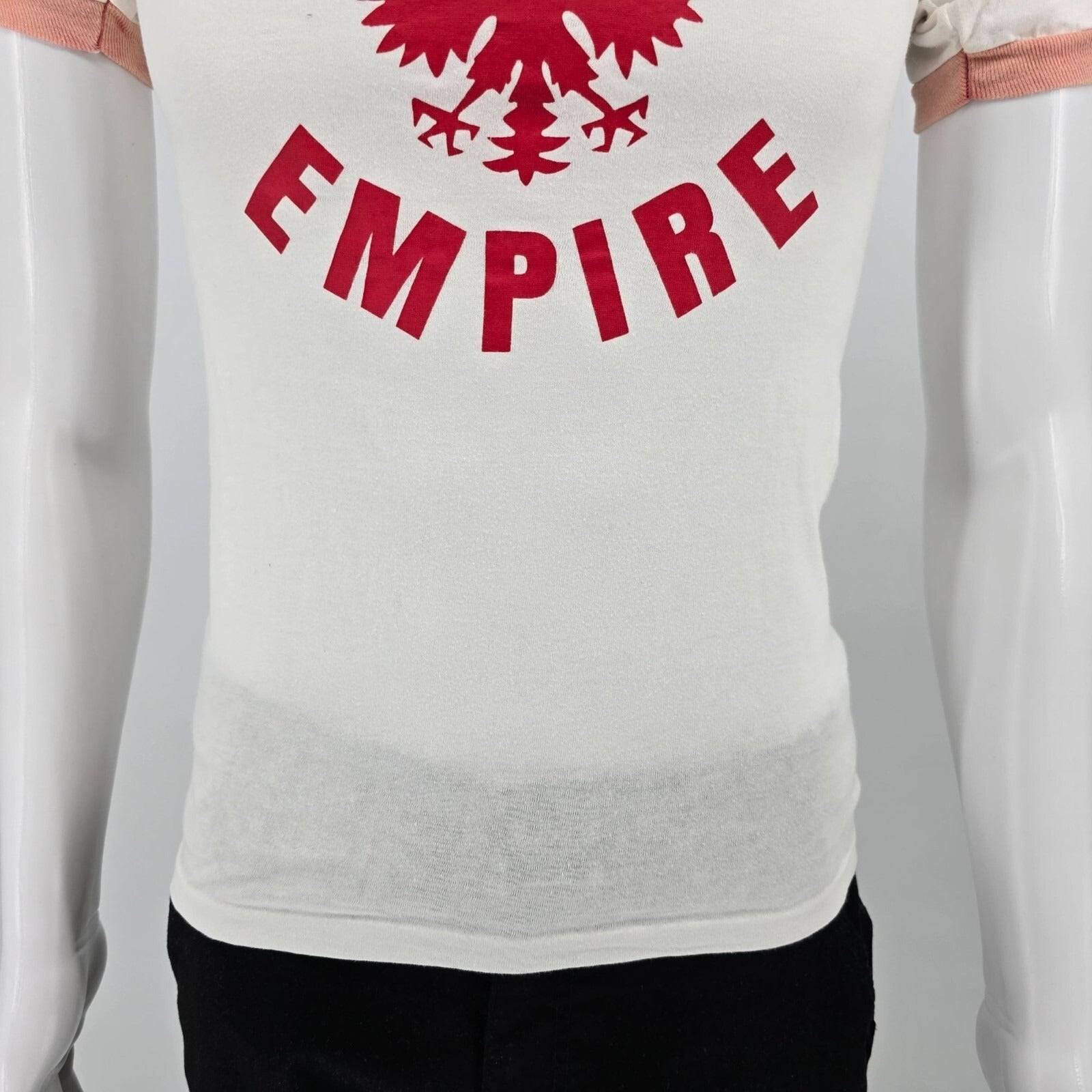 Vintage 1970s H.L. Miller Polish Empire "Legs" Ringer Tee White T-Shirt (XXS)