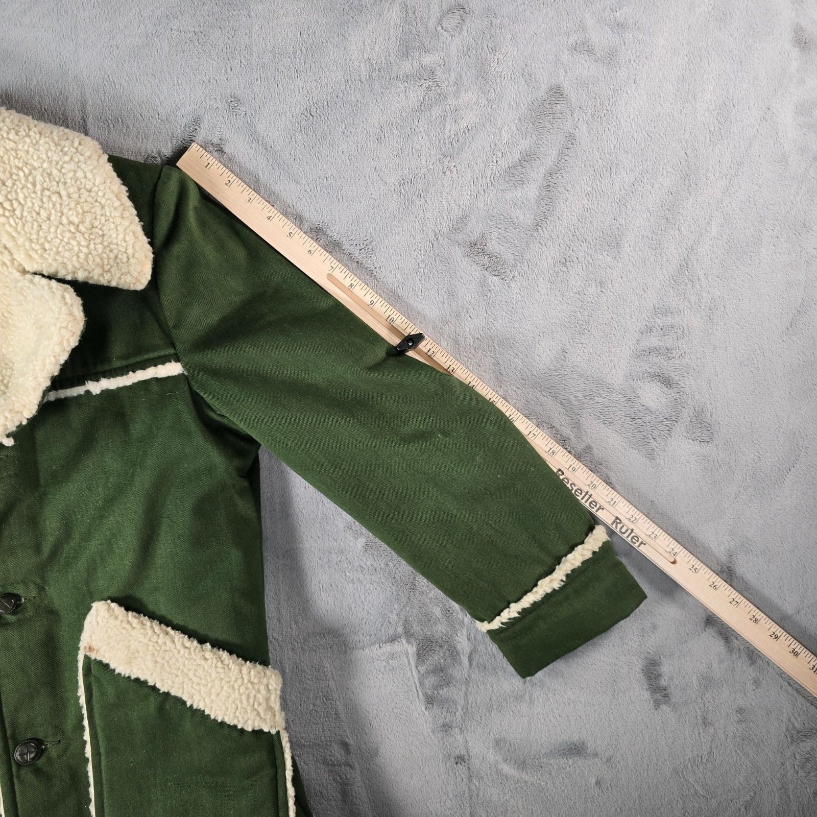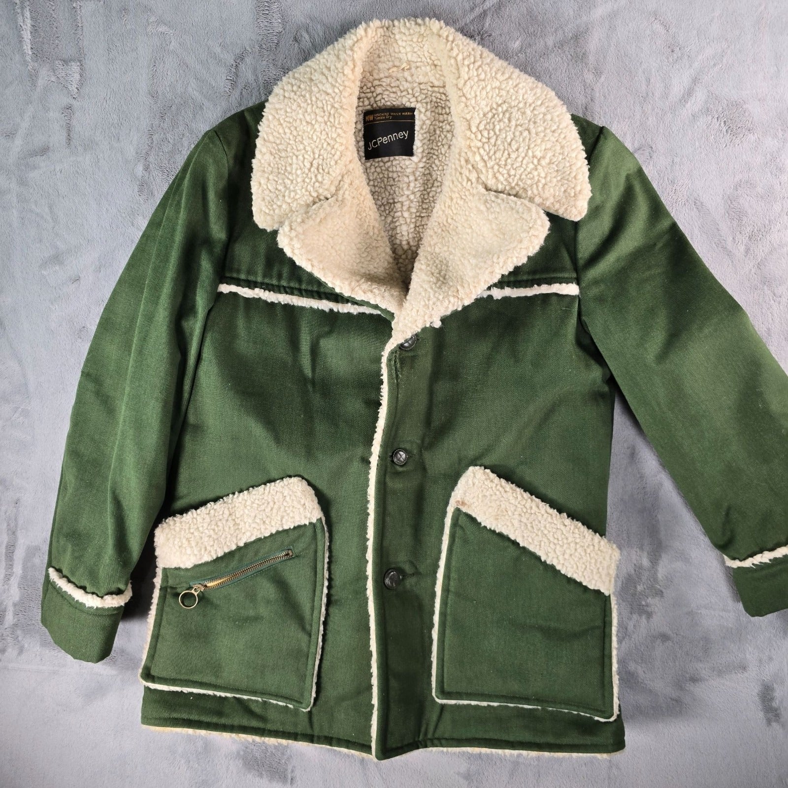Vintage 1970s JC Penney Mens Green Sherpa-Lined Winter Western Rancher Coat (M)