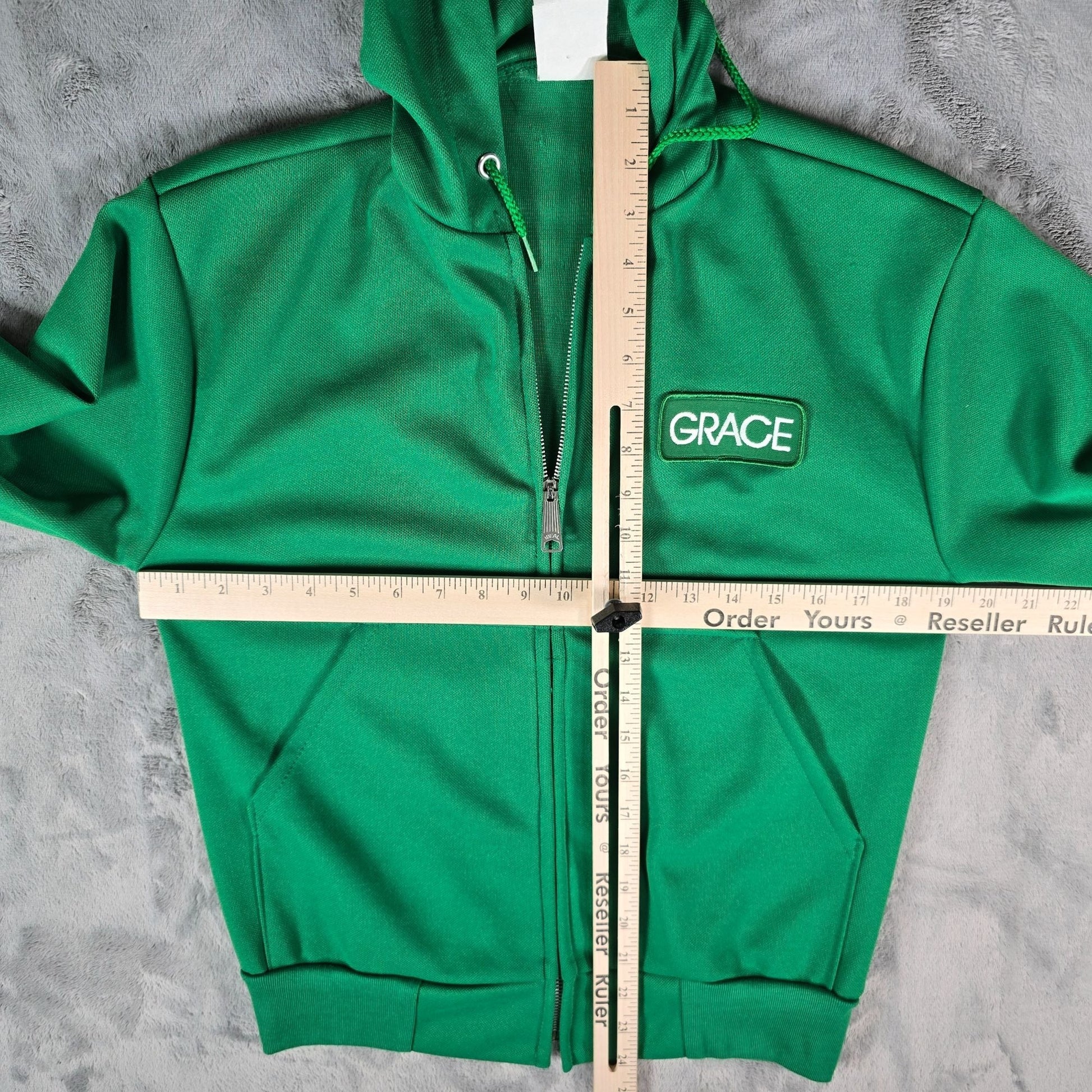 Vintage 1970s K-Brand "Grace" Patch Kelly Green Ideal Zipper Zip Hoodie (S)