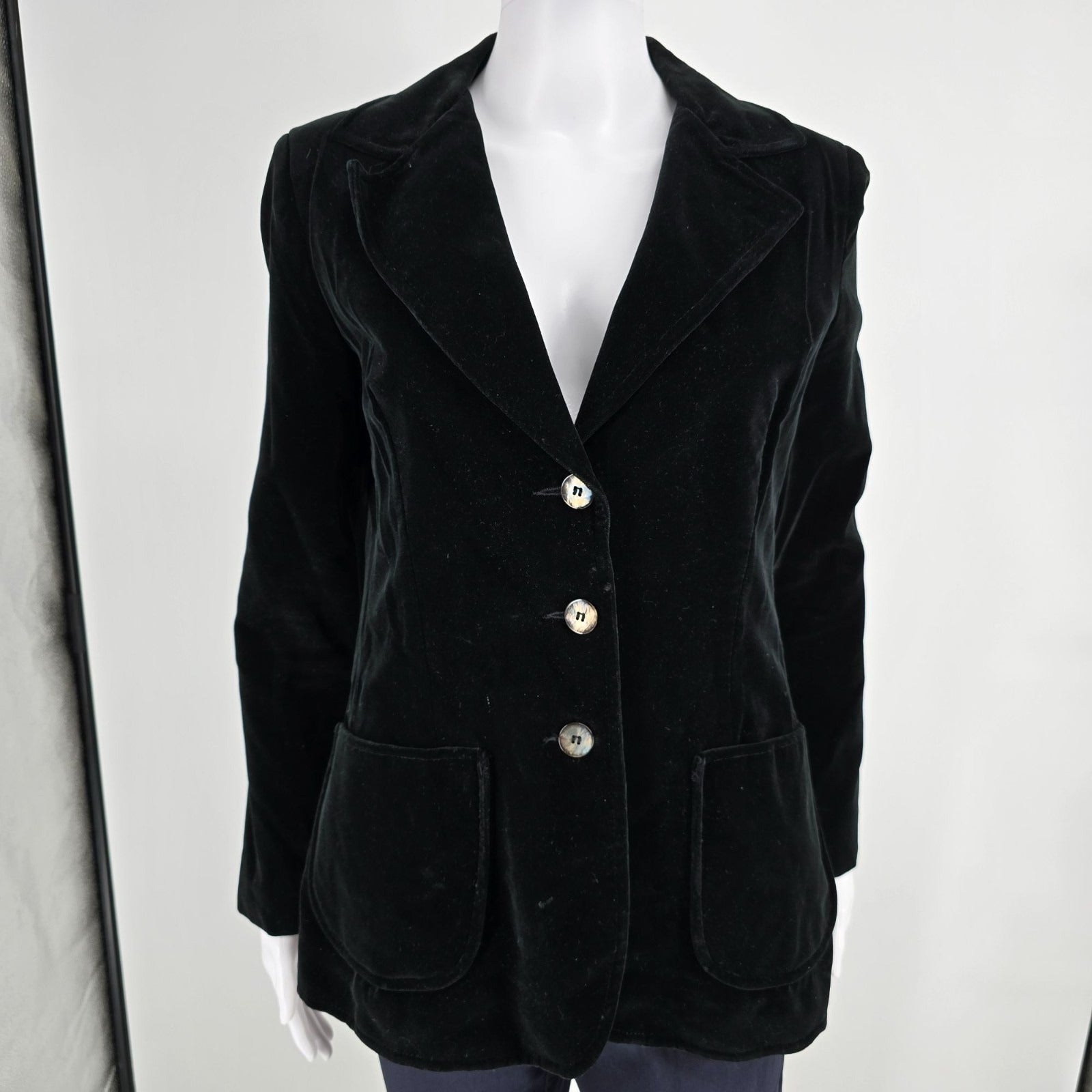 Vintage 1970s Koret of California Women's Black Velvet Blazer Jacket (S/M)