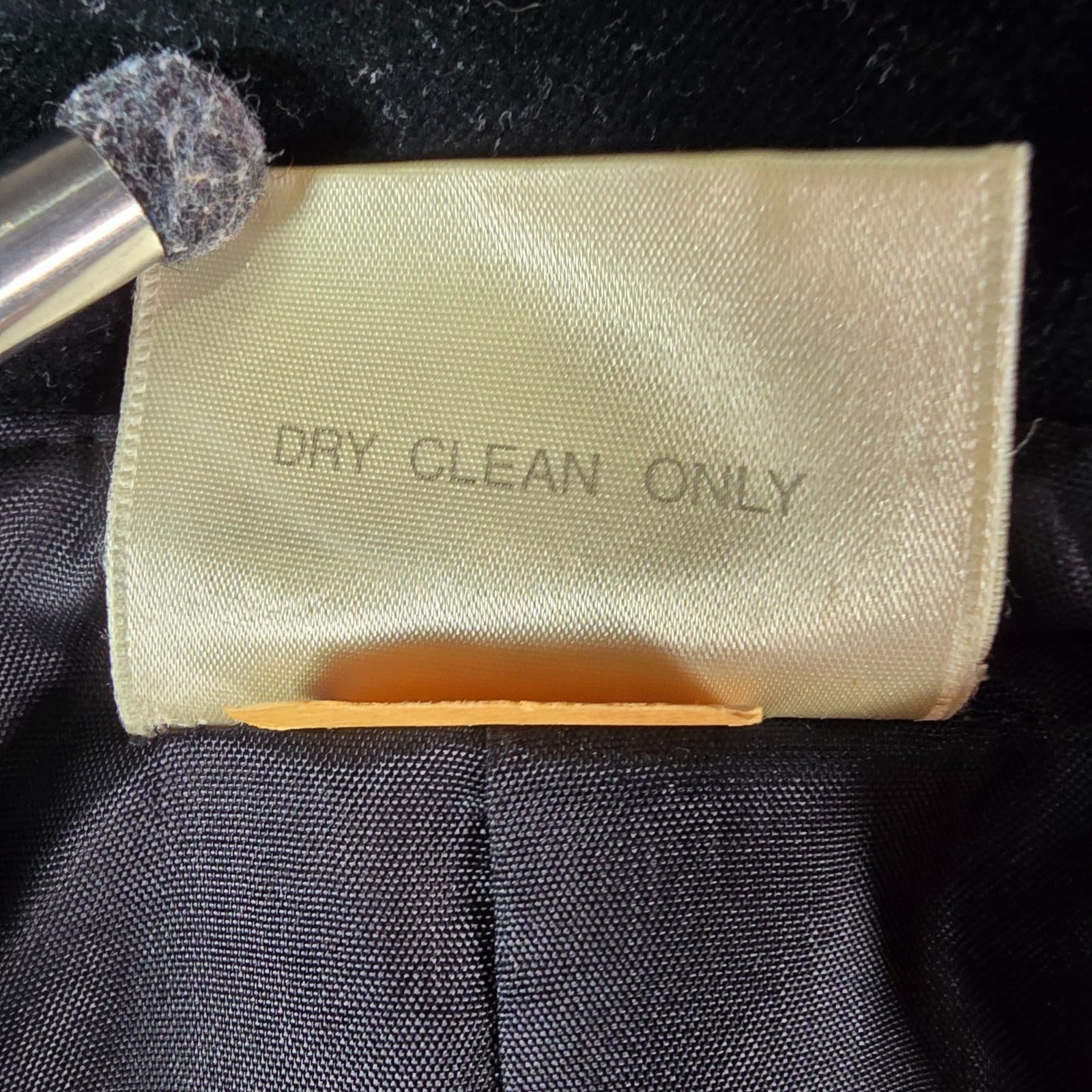 Notable Features: Notched lapels; three-button front; marbled buttons; front patch pockets; satin lining; shoulder pads: ILGWU union-made label