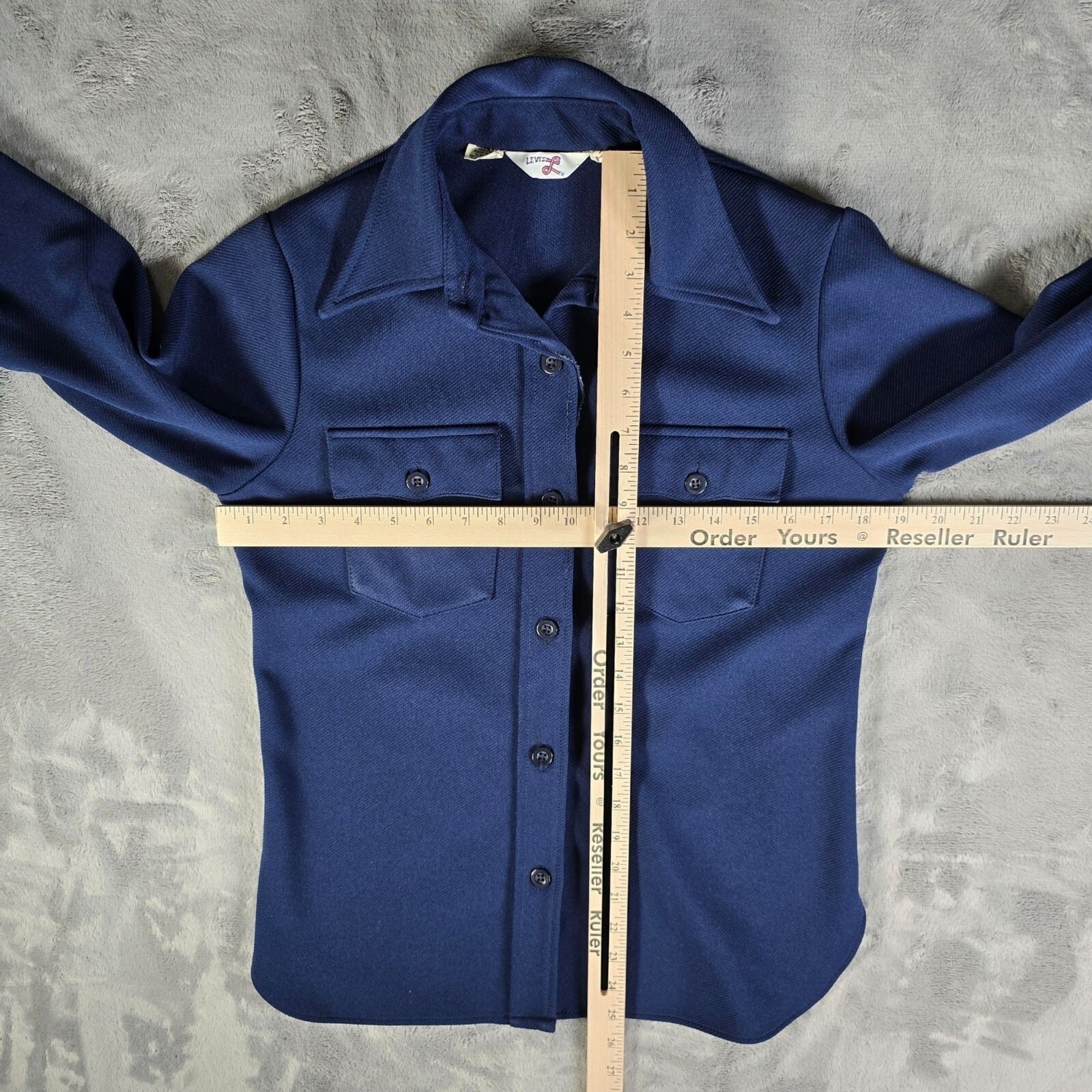 Vintage 1970s Levi's for Gals Navy Blue Knit Polyester Western/Disco Shirt (M)