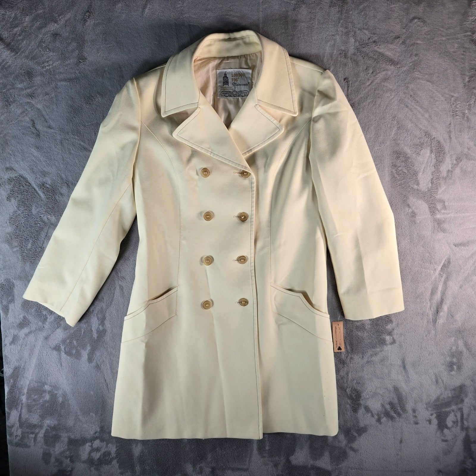 Vintage 1970s London Fog Maincoats Ivory Double-Breasted Walking Coat (M)