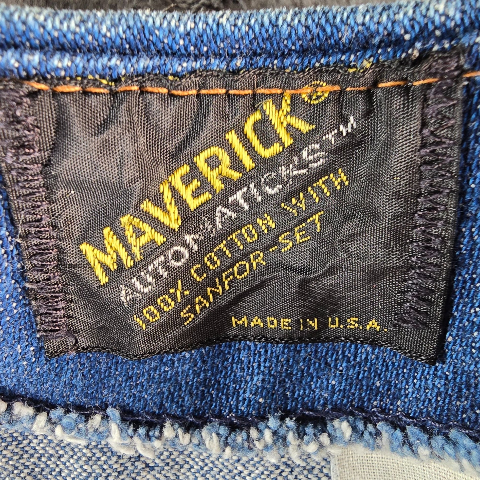 Notable Features: V-neck western denim vest with four copper-tone Maverick logo buttons; two front patch pockets with signature โWโ stitching; small black/yellow Maverick tab at chest; pointed front hem