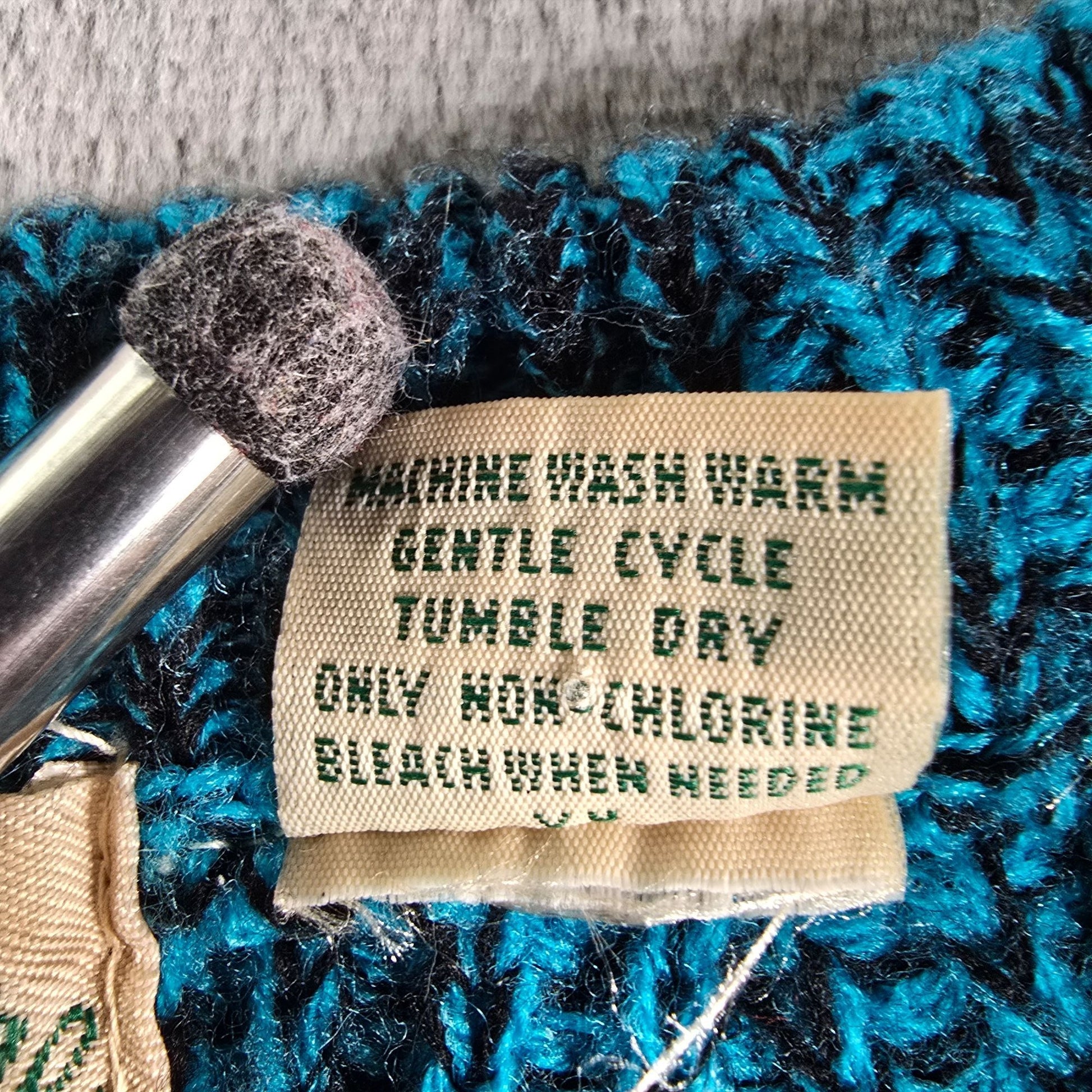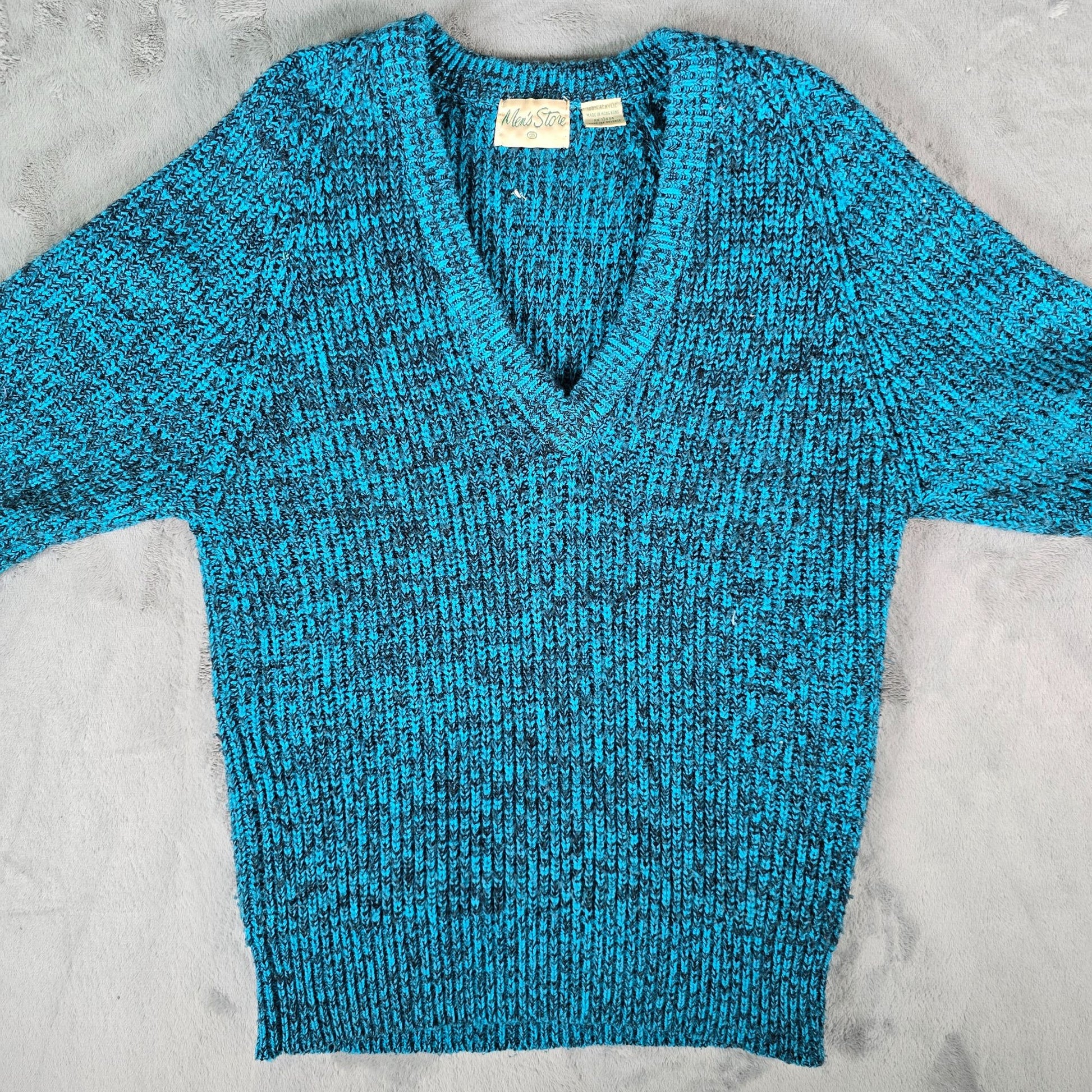Vintage 1970s Men's Store Teal & Black Marbled V-Neck Acrylic Sweater (S)
