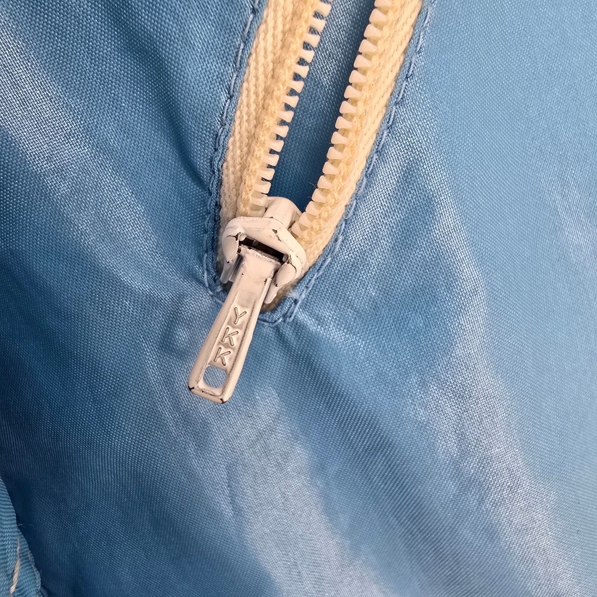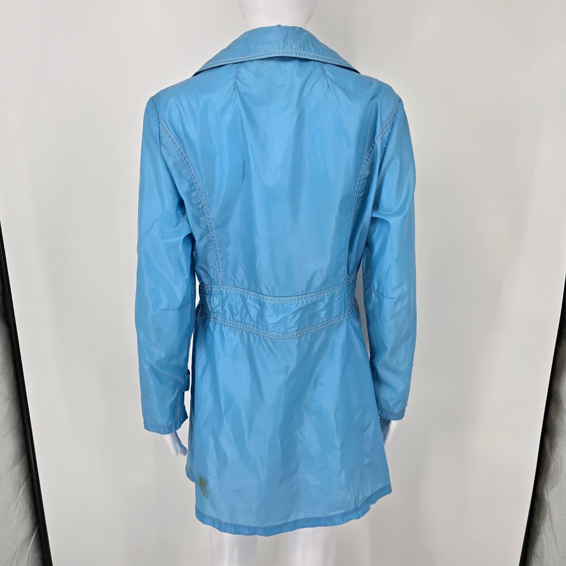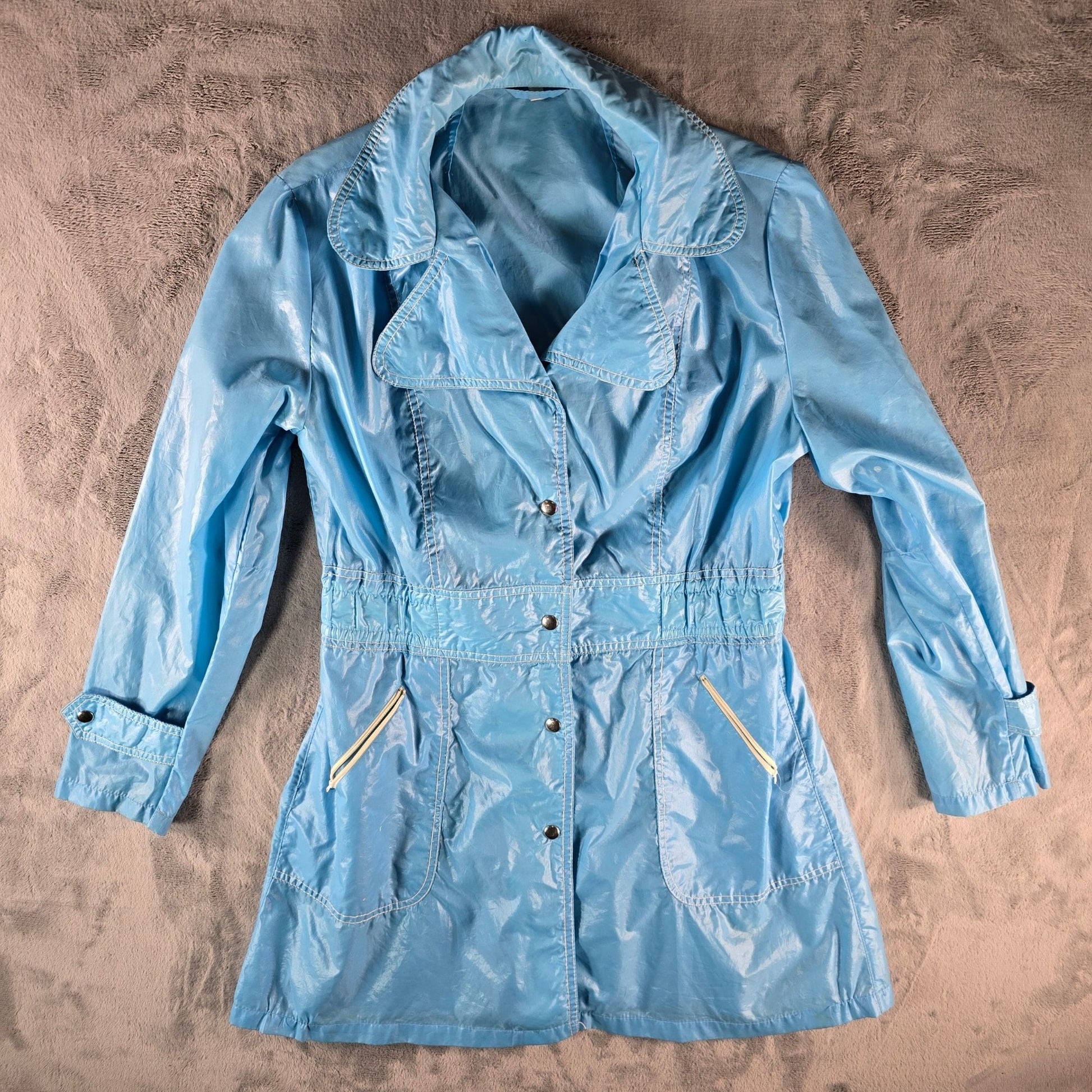 Vintage 1970s Montgomery Ward Women's Sky Blue Nylon Snap Button Jacket (Medium)