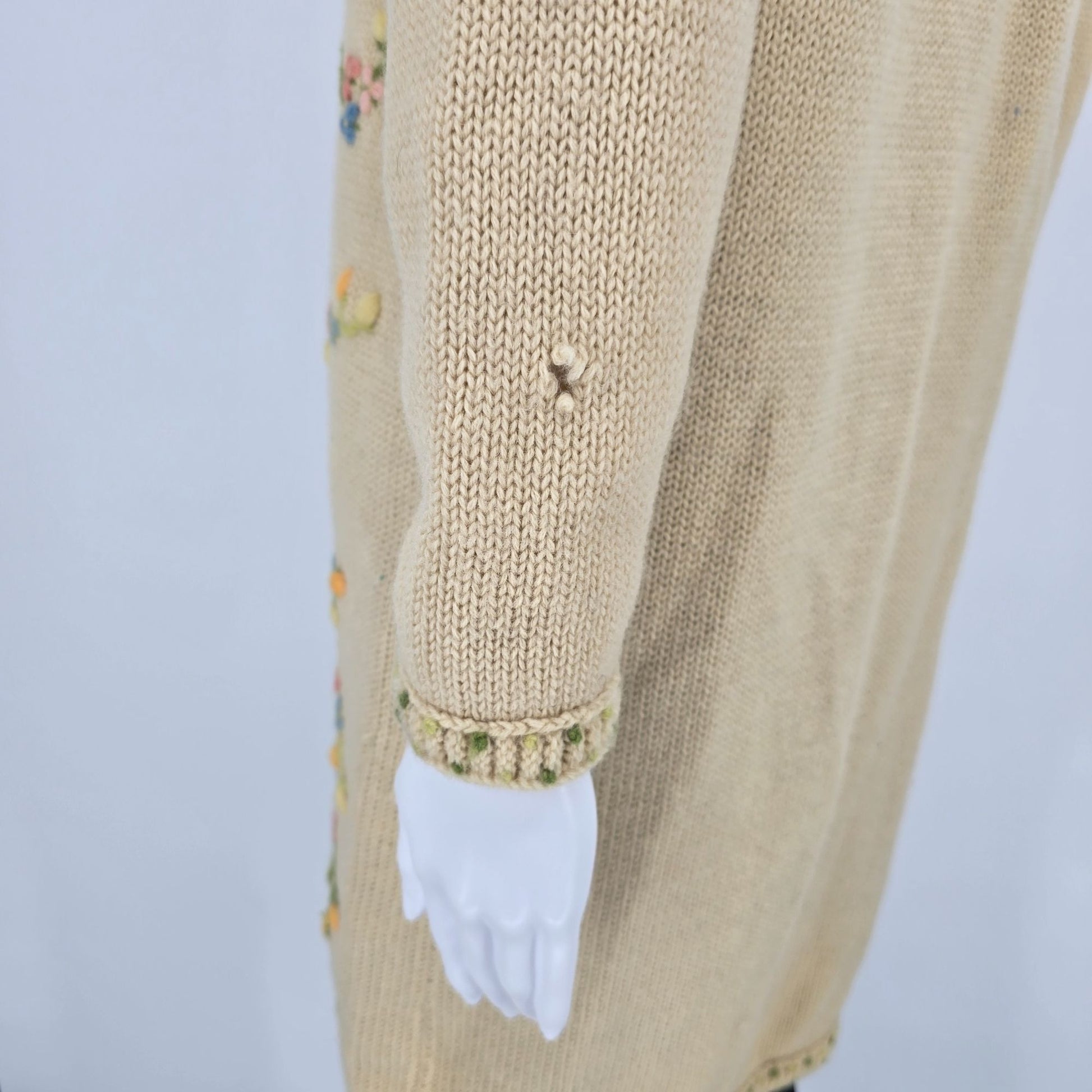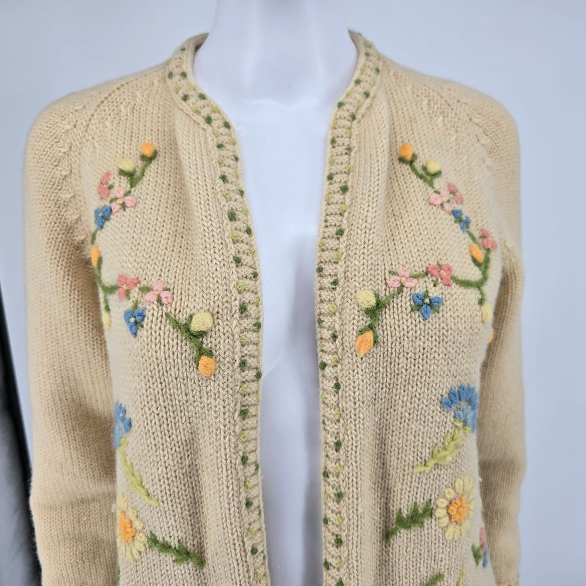 Vintage 1970s Nat Allen Women's Virgin Wool Hand Embroidered Floral Cardigan