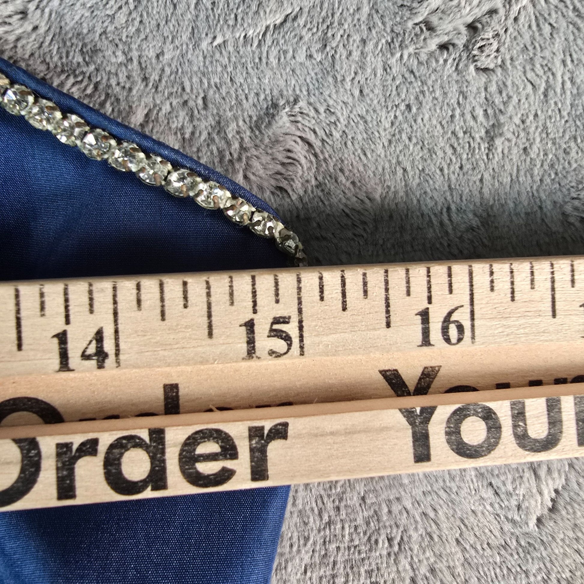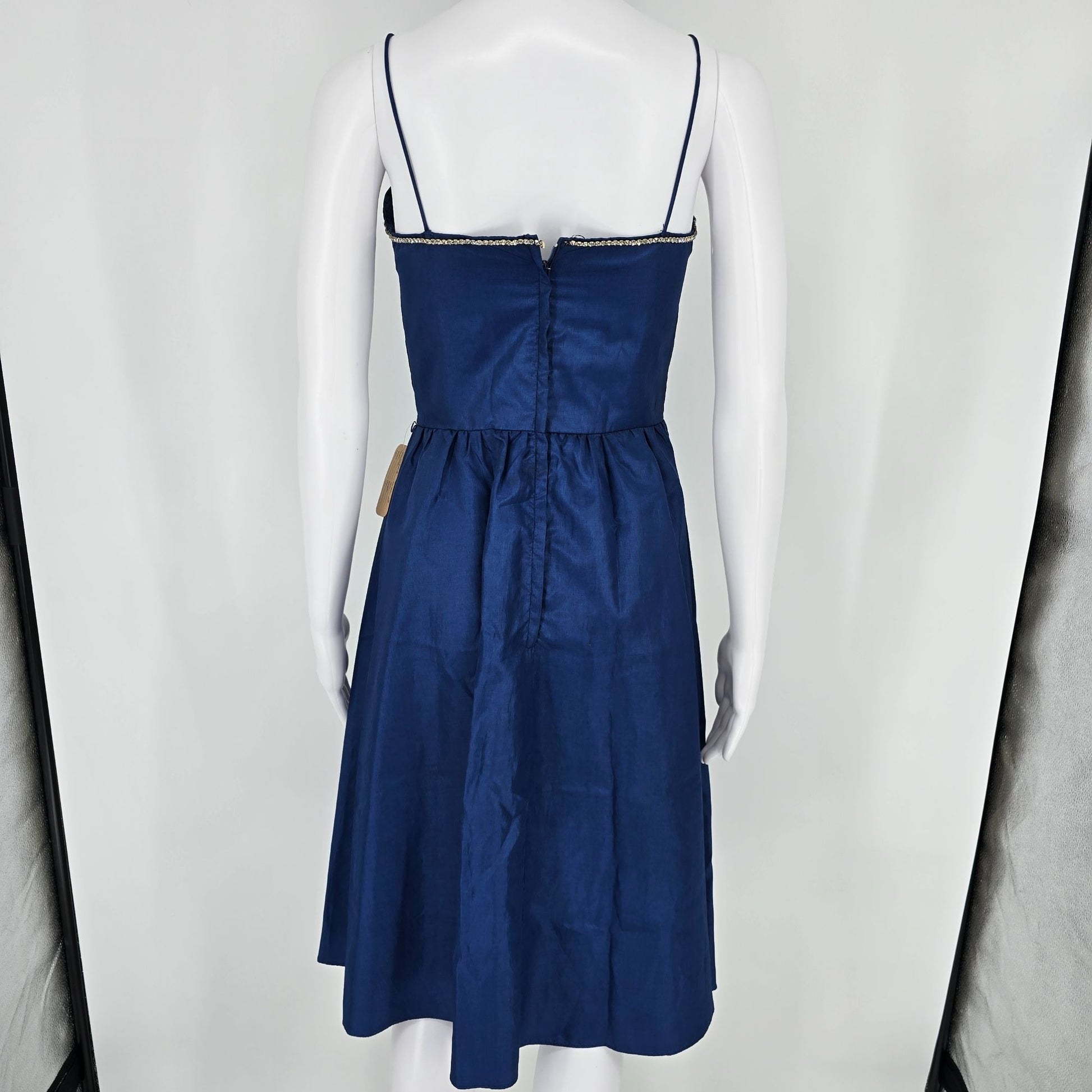 Vintage 1970s Navy Blue Rhinestone Trim Spaghetti Strap Party Dress (XS)