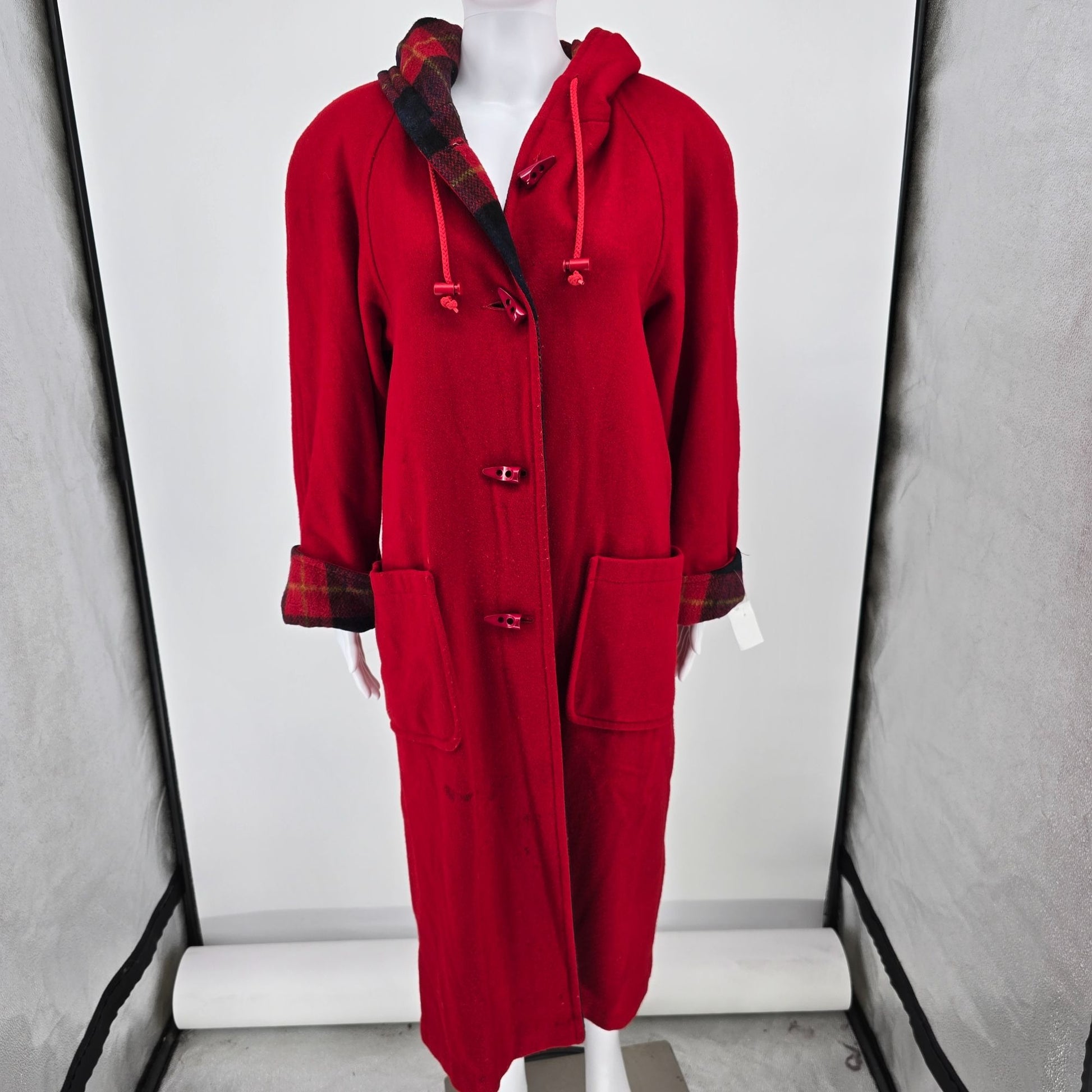 Vintage 1970s Suz-ette Fashions/Spuncraft Red Wool Blend Hooded Duffle Coat (L)