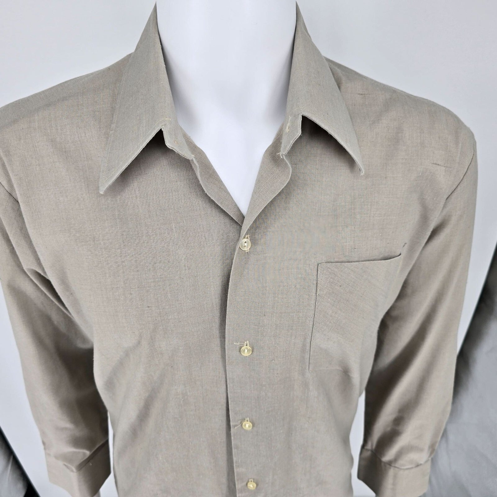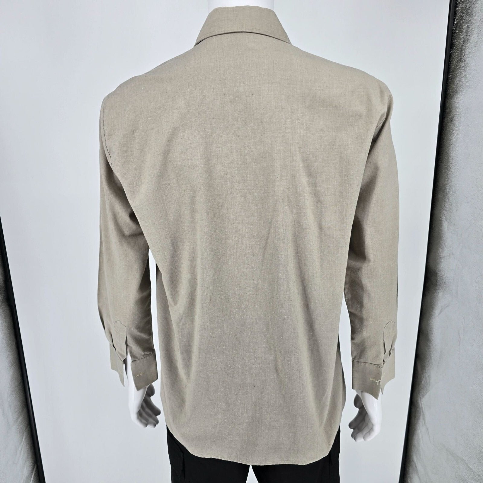 Vintage 1970s Taupe Wide Collar French Cuff Long Sleeve Pocket Dress Shirt (L)