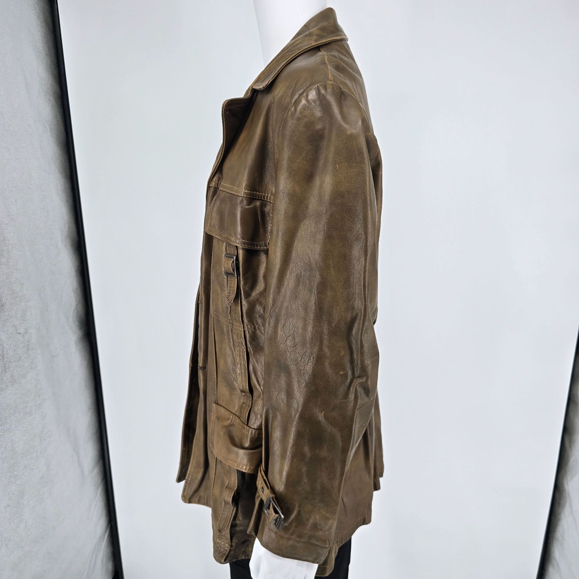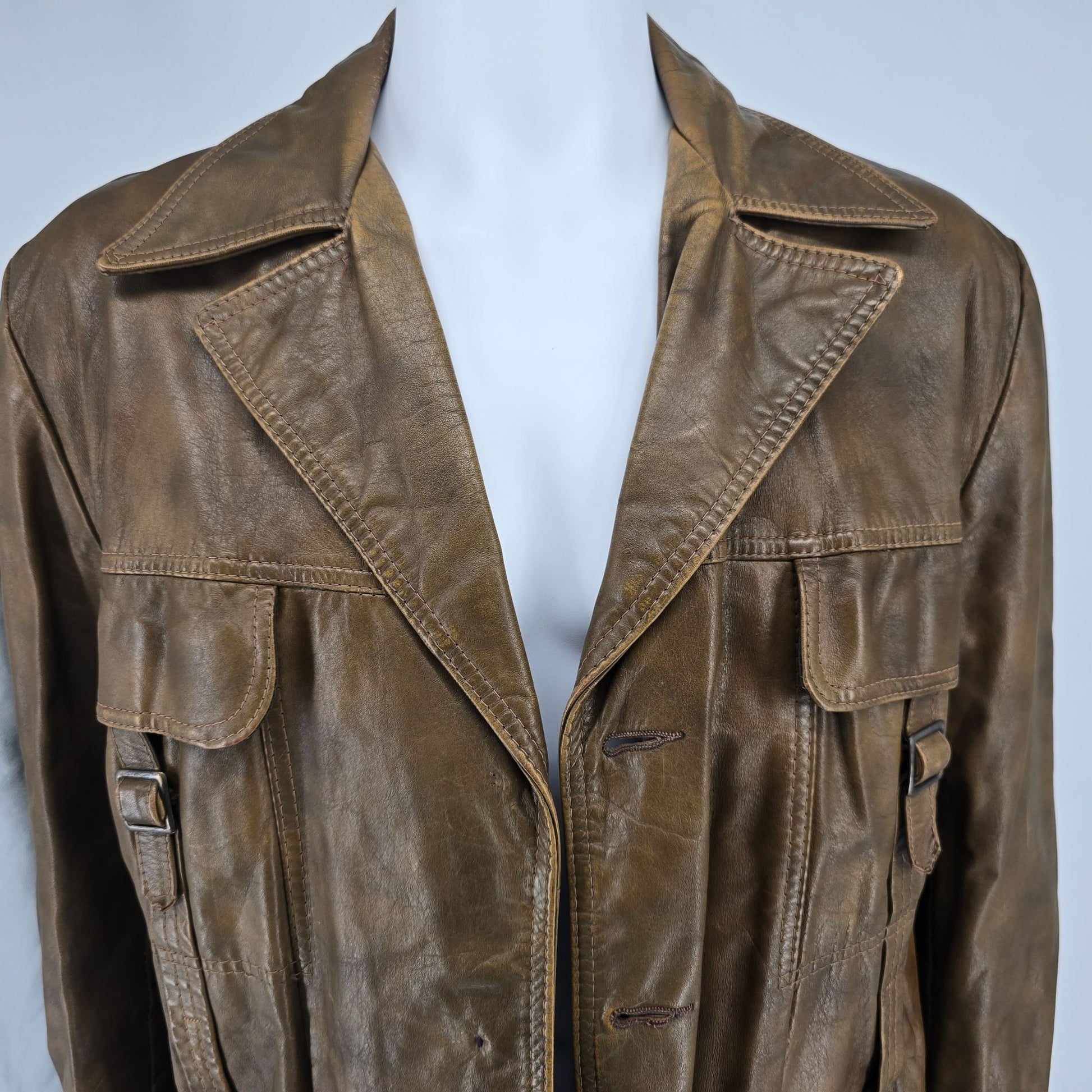 Vintage 1970s "The Gay Blade" Leather Safari Field Jacket (M/L) *Missing Buttons