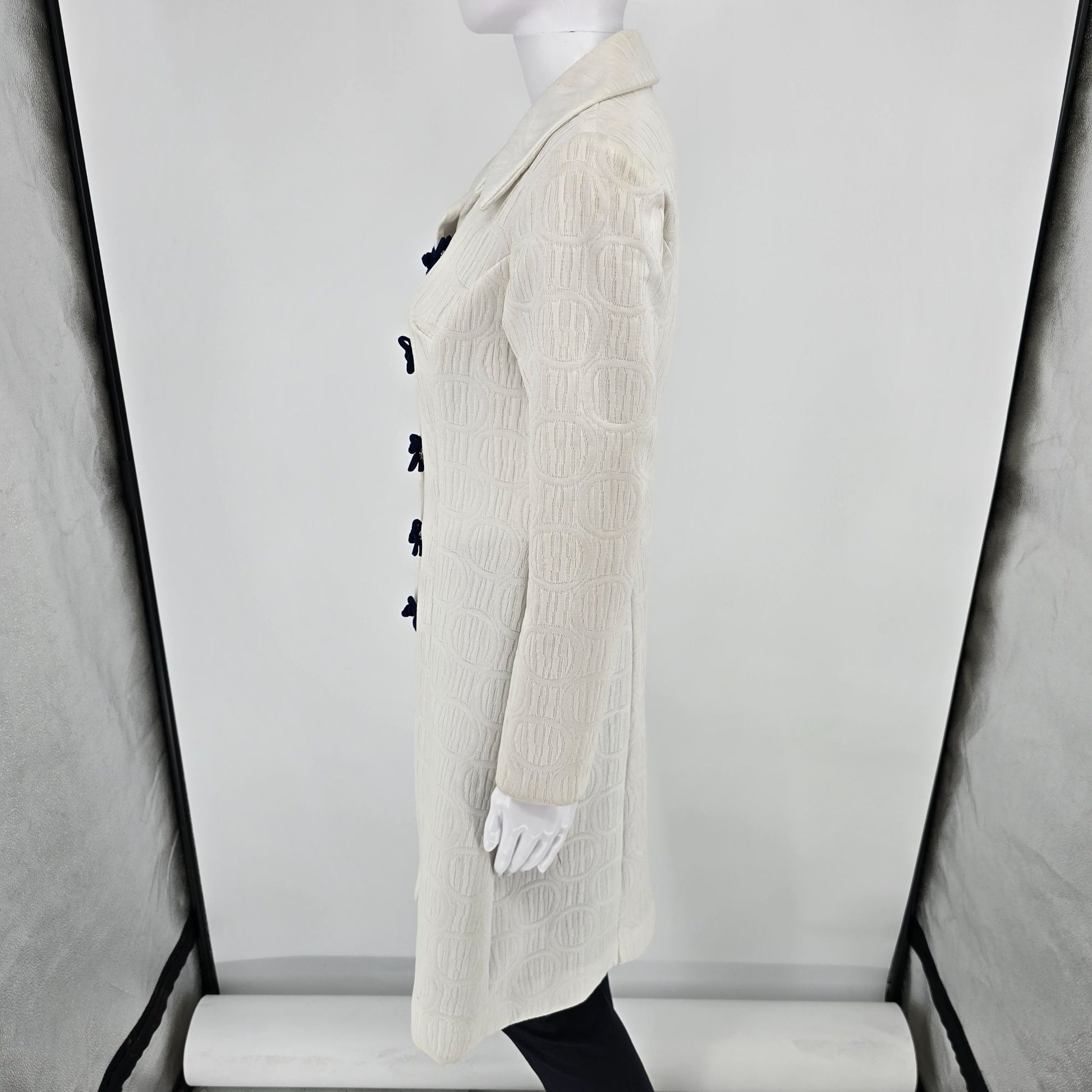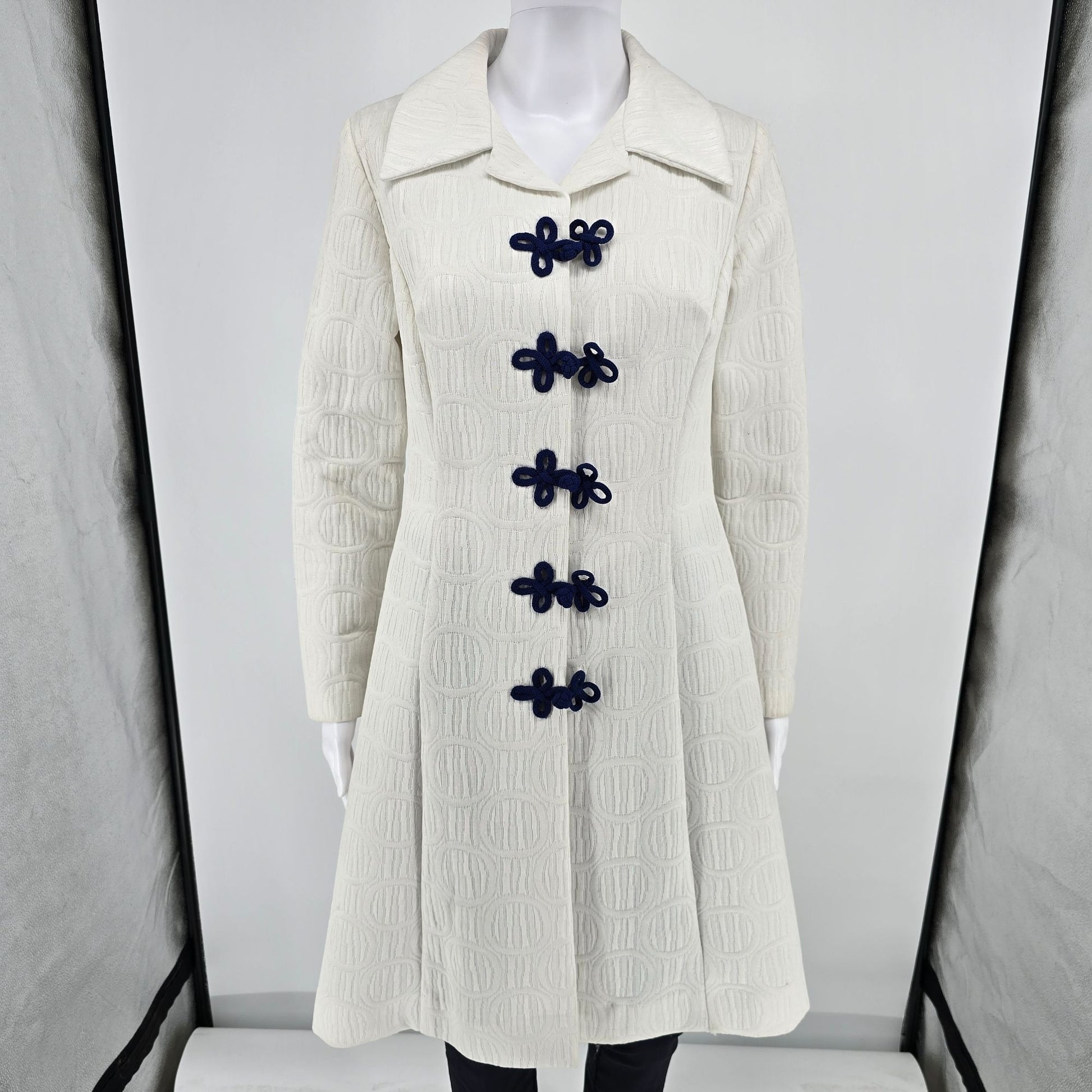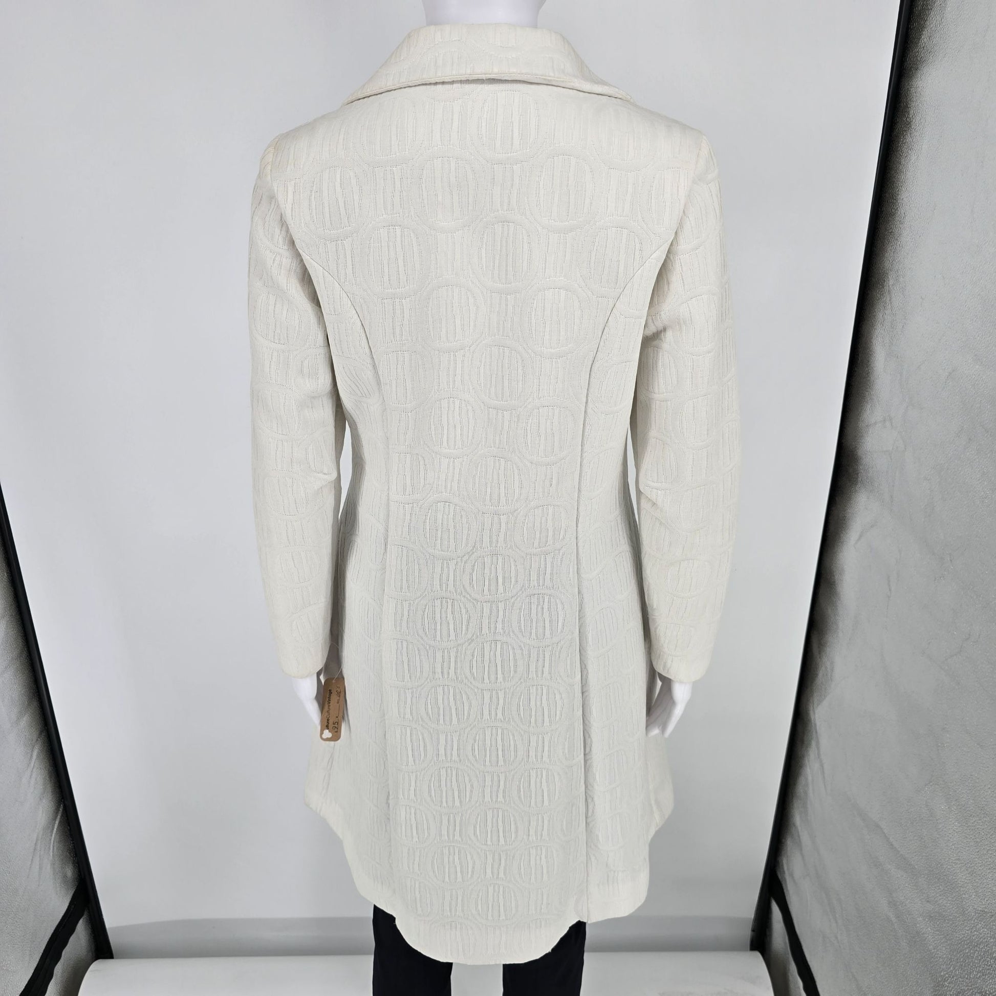 Vintage 1970s Towncraft Mod A-Line Textured Jacquard Knit Ivory Coat (S)