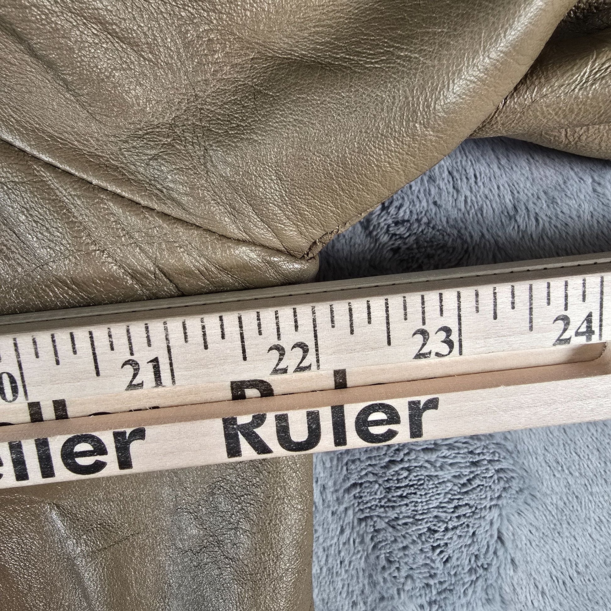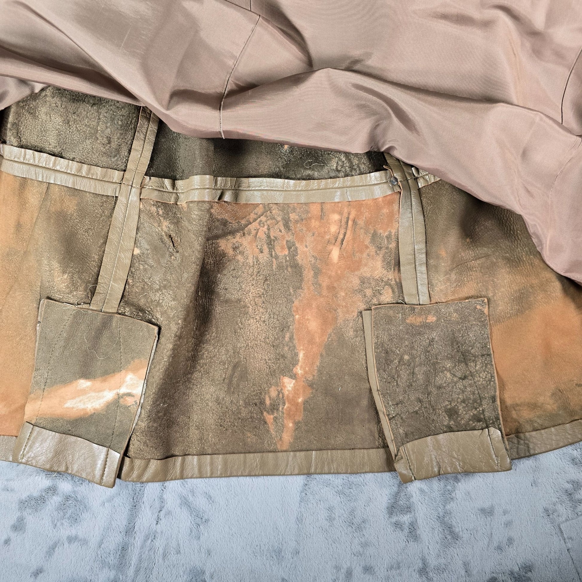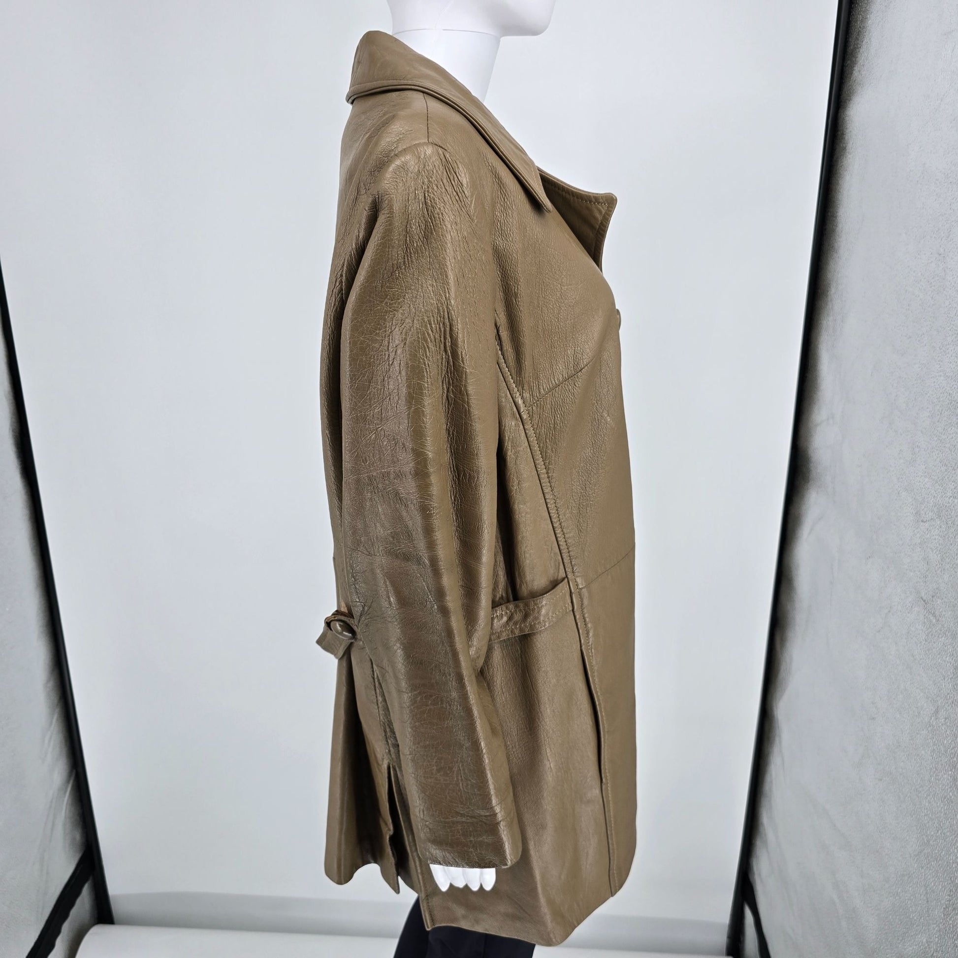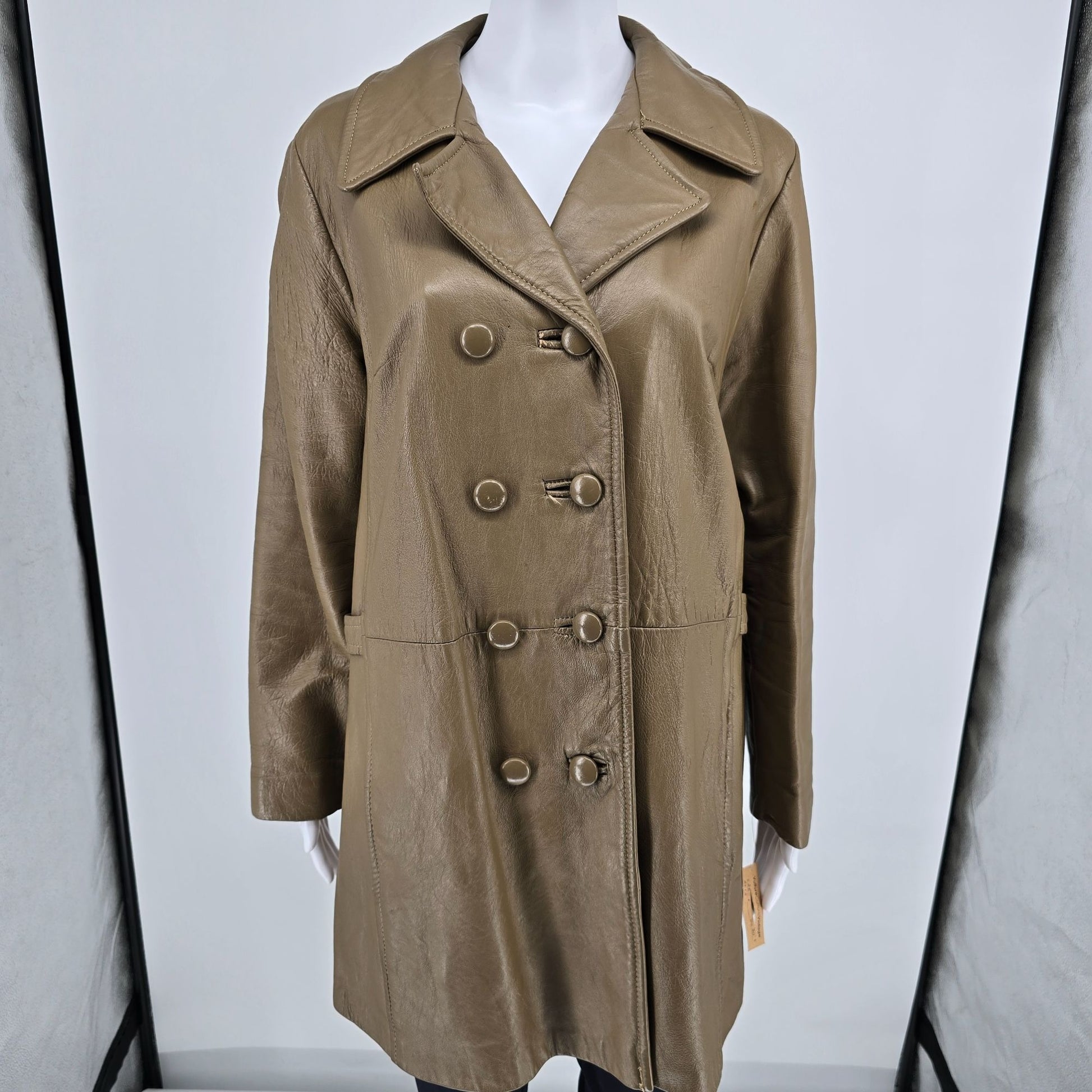 Vintage 1970s Unbranded Double-Breasted Olive Taupe Leather Coat (XL) *Fair