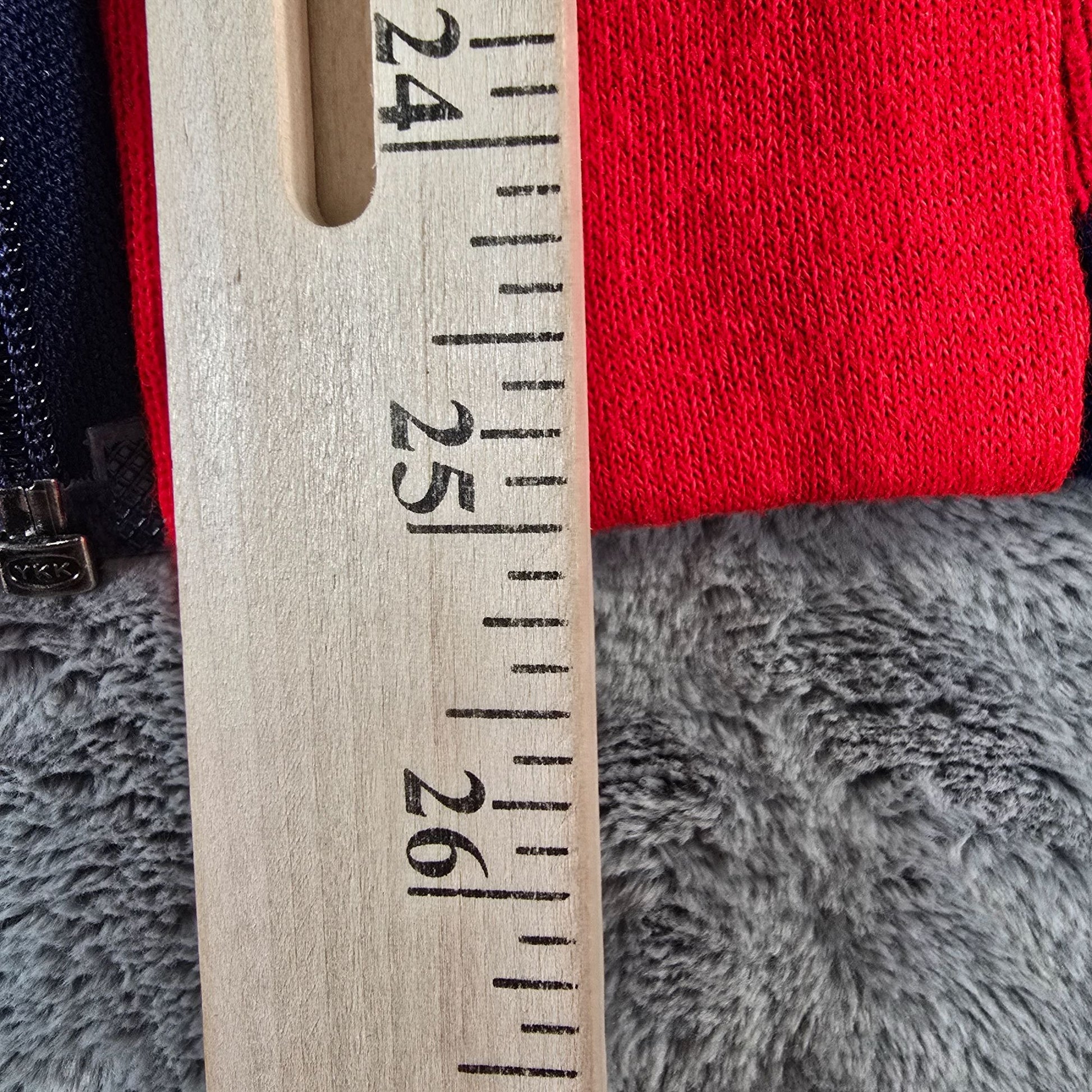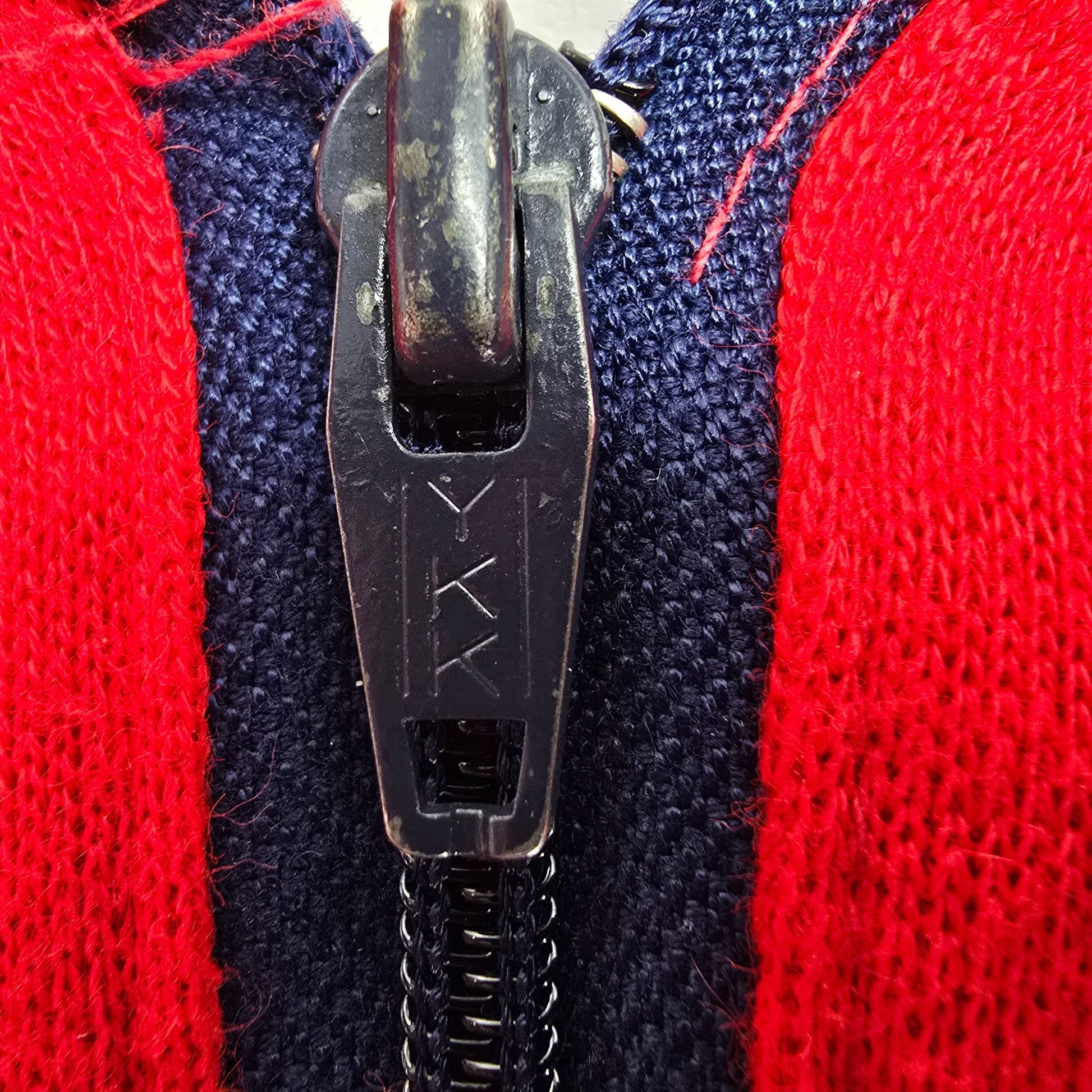 Notable Features: Glitter “crying eye” graphic at chest; large “Foxy Grandma” glitter graphic on back; raglan sleeves; striped rib cuffs/hem; YKK front zipper; front hand pockets