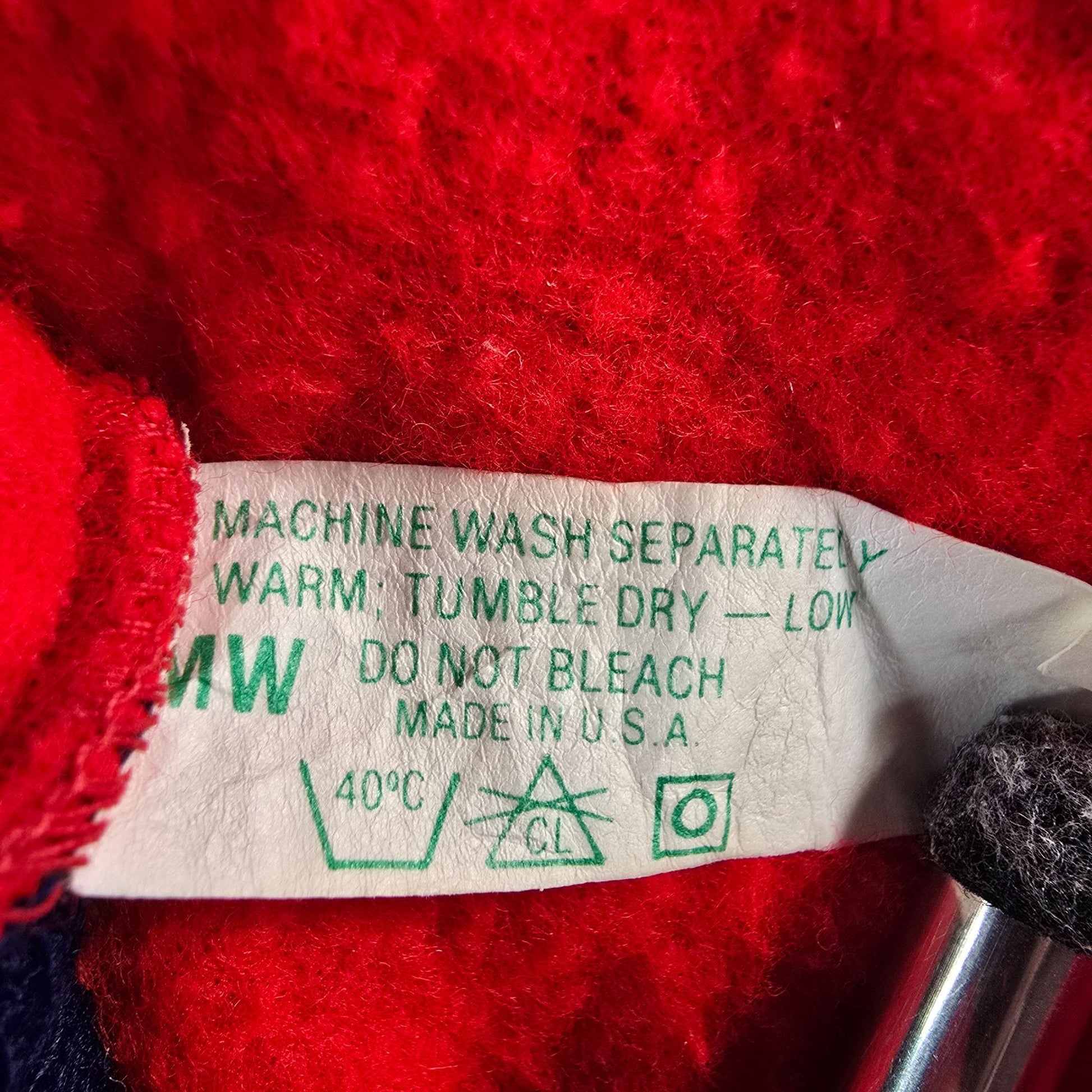 Good overall used vintage condition. No rips, cuts, holes, or tears. Some glitter is coming off of front and back graphics. Moderate fabric wear and pilling throughout. See photos for details.