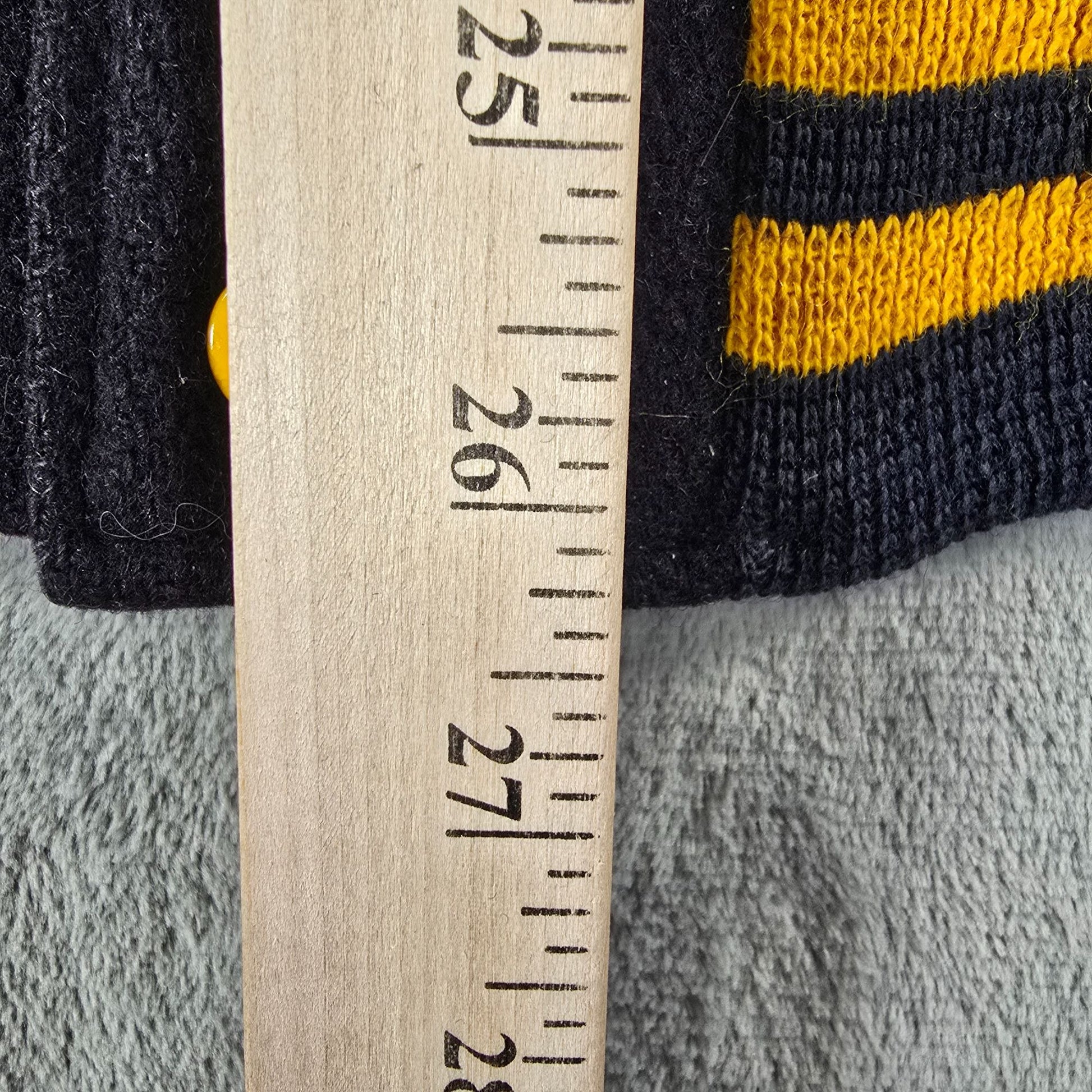 Notable Features: Large, embroidered VFW chest patch and USA flag patch; snap-front closure with yellow snaps; striped rib-knit collar, cuffs, and hem