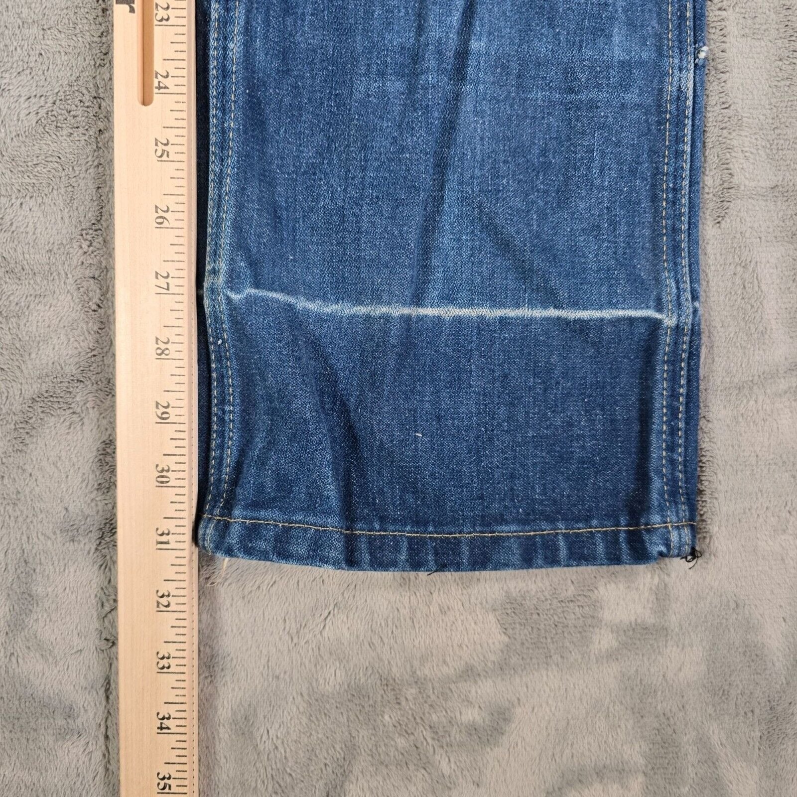 Condition Notes: Good used vintage condition. Multiple white fade lines near the bottom of the legs. Moderate and uneven fading and fabric wear throughout. See photos.