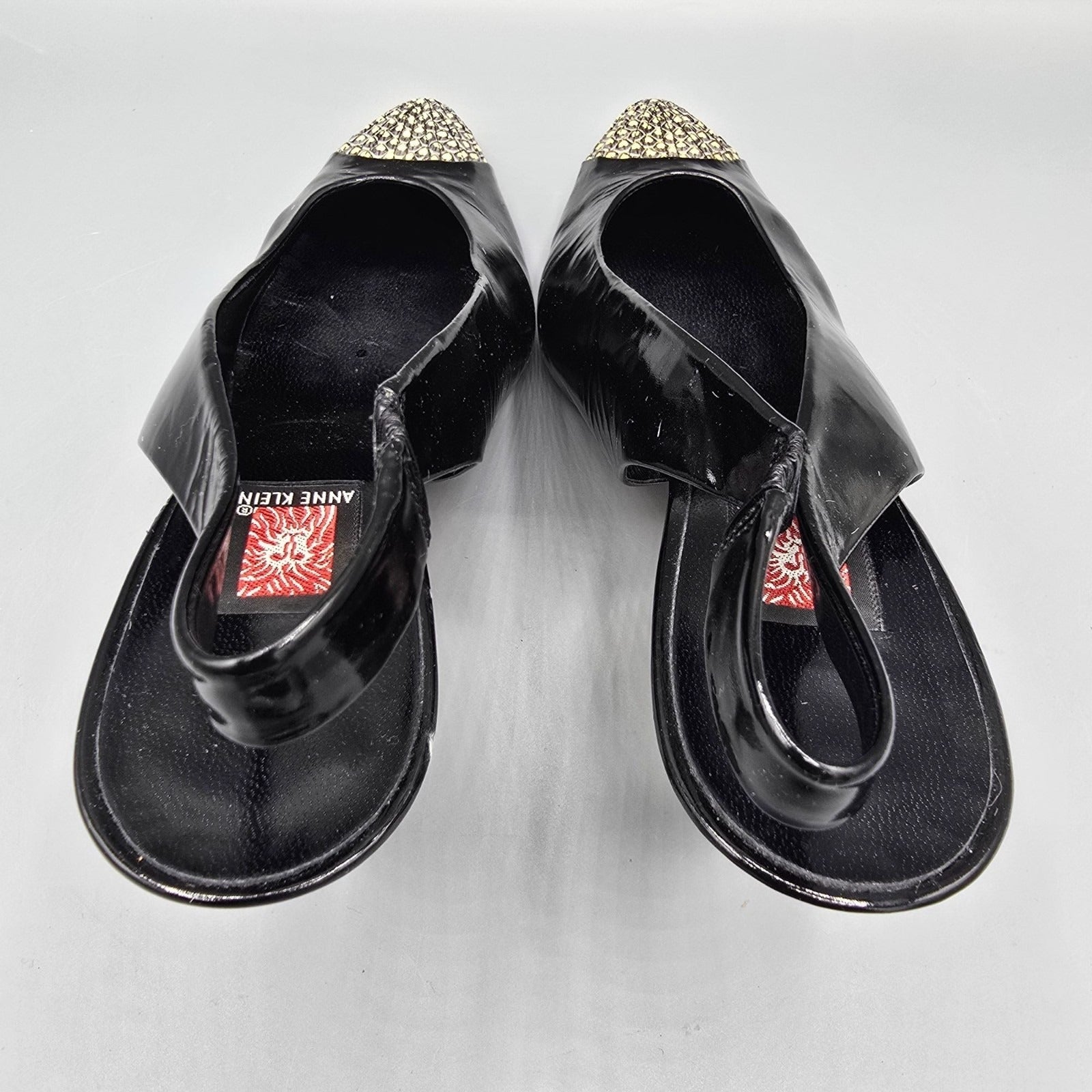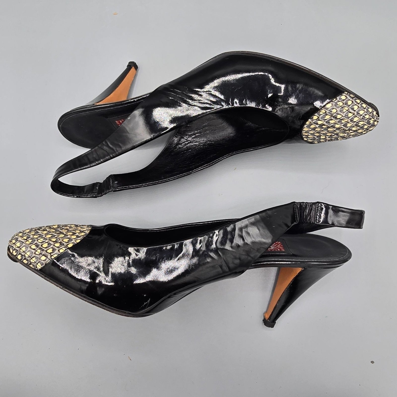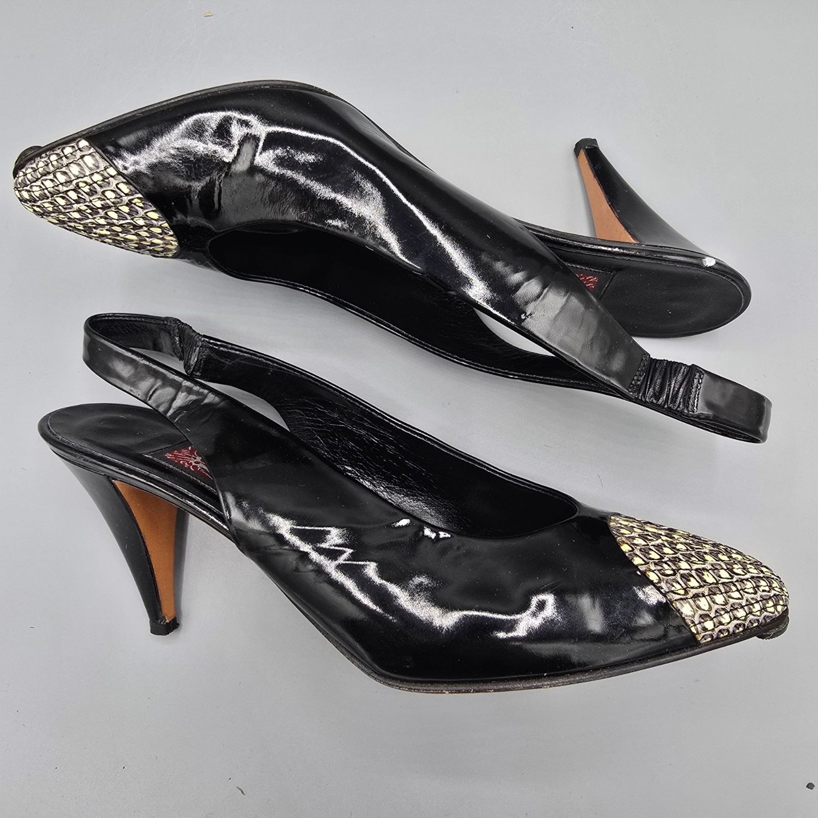 Vintage 1980s Anne Klein Made in Italy Black Patent Cap-Toe Slingback Heels (7M)