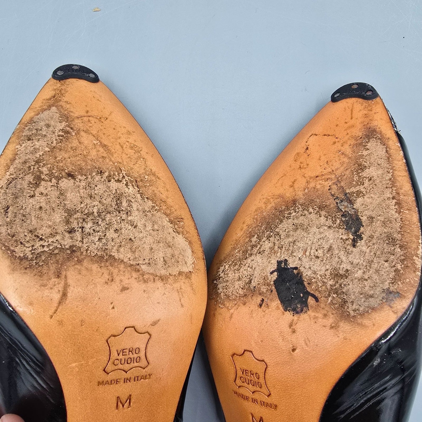 Some scuffing at vamps. Leather soles show normal wear.