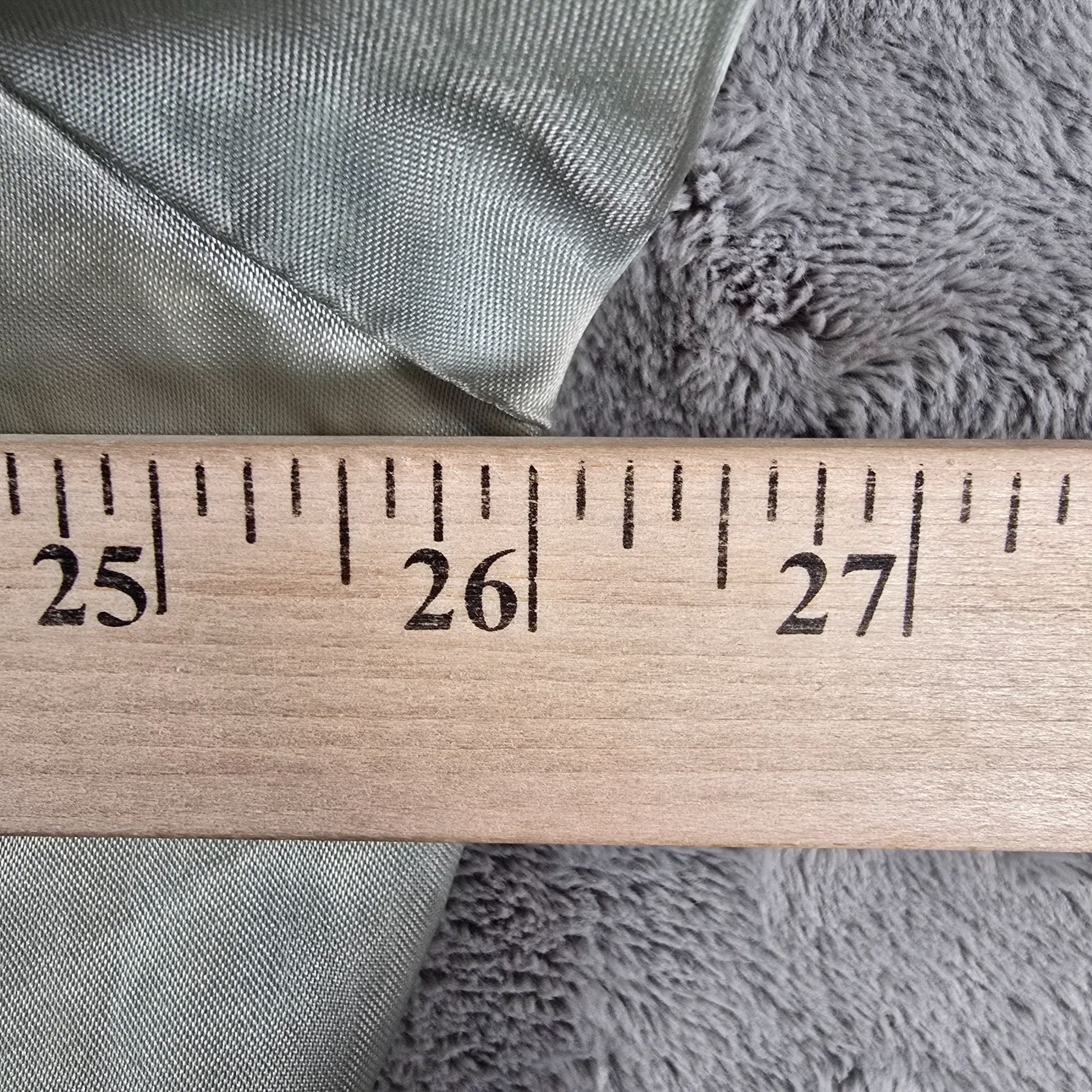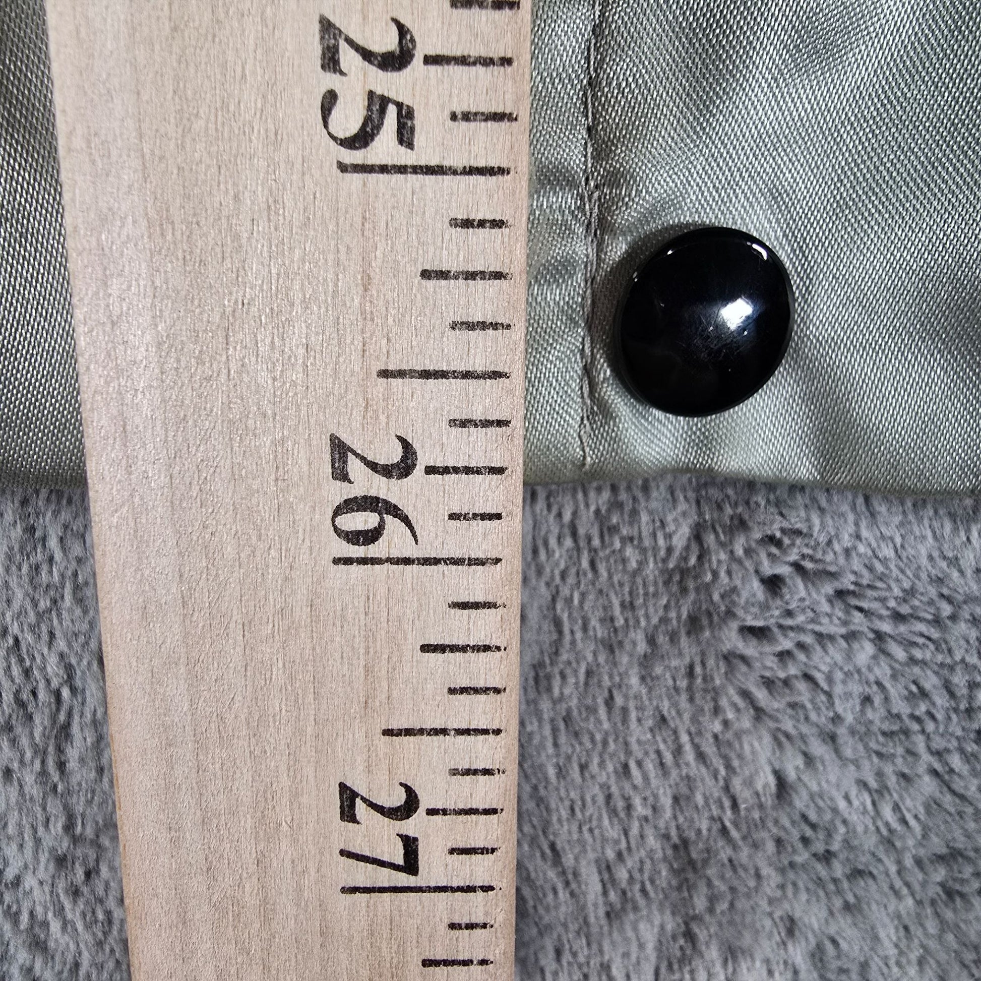 Fair used vintage condition. All hardware functional. Multiple small holes on the back. Area of fabric damage at back. Additional area of fabric damage on back near left shoulder. Scattered markings and areas of discoloration across the outer shell. Multiple small holes on inner lining. Moderate to heavy wear throughout. See photos for details.