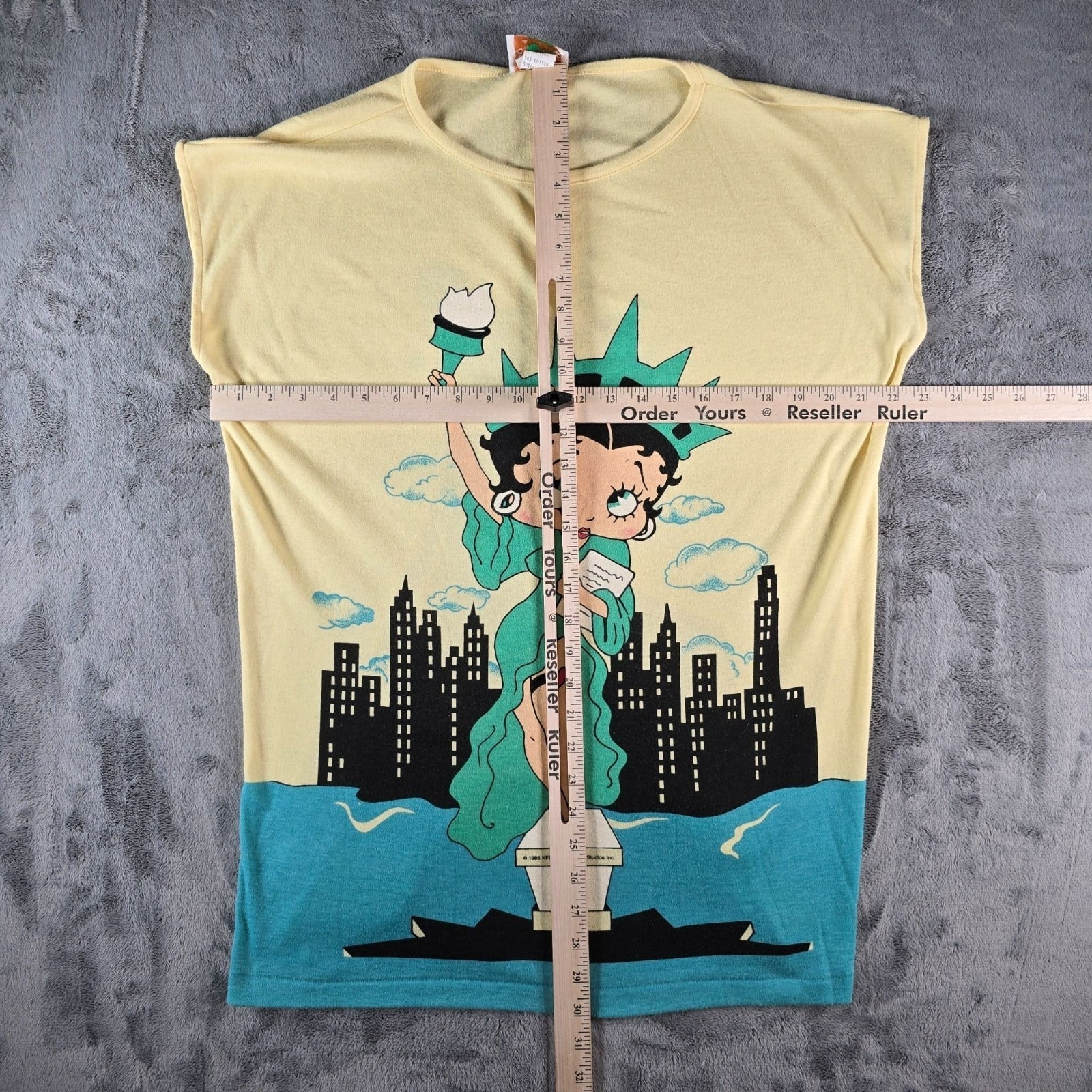 Vintage 1980s B.J. Frog Betty Boop Statute of Liberty All Over Print T-Shirt (L)