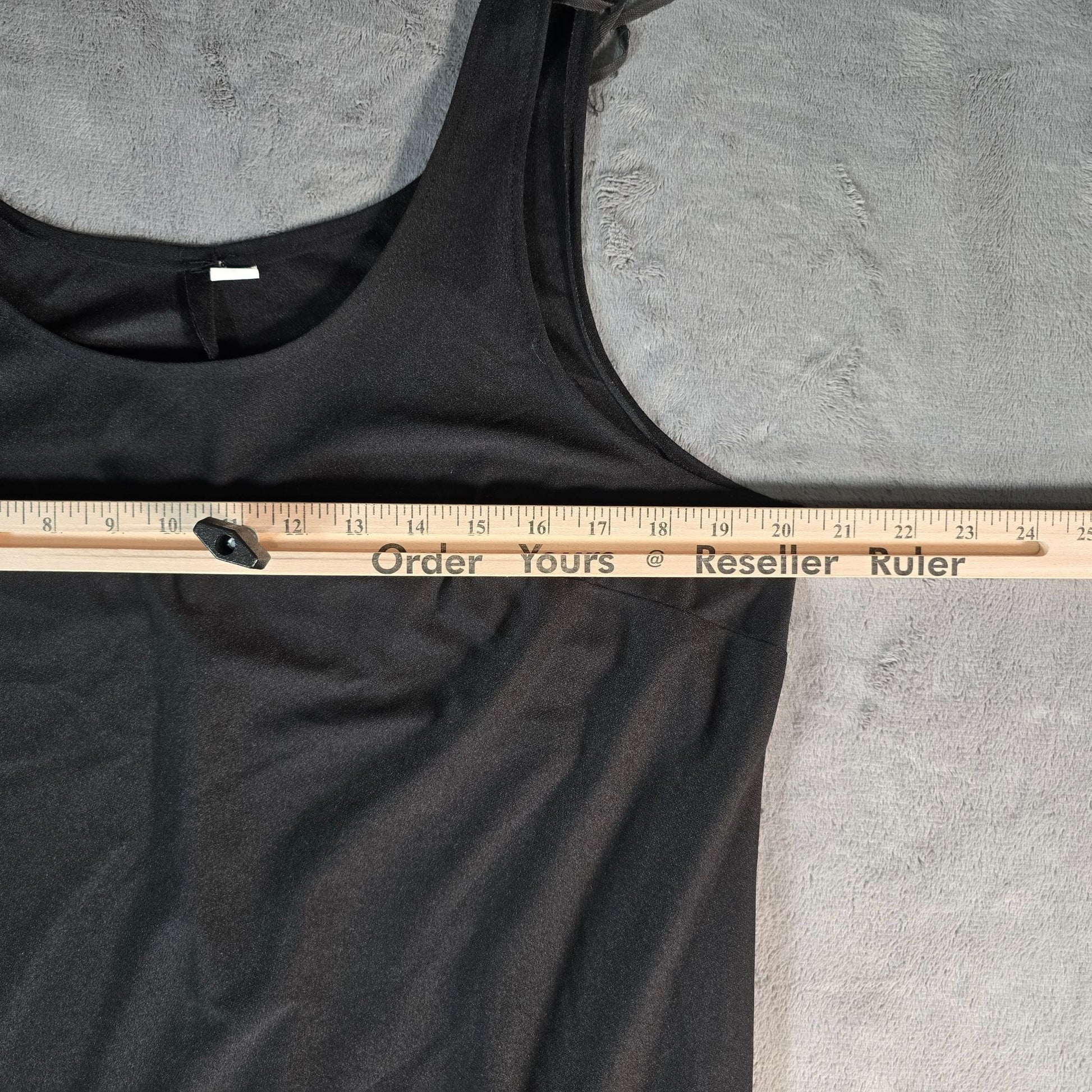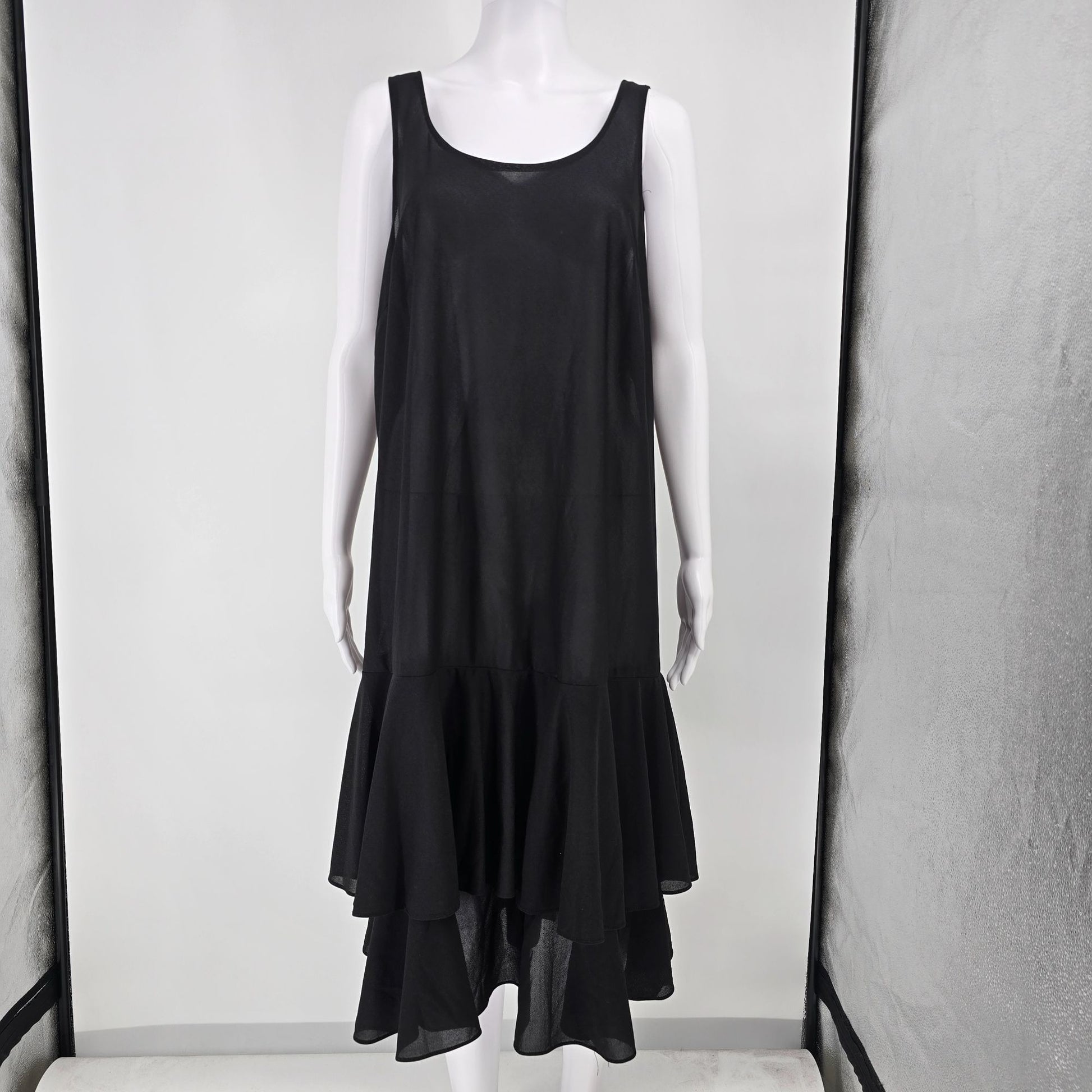 Vintage 1980s Black Flapper Style Drop Waist Ruffle Hem Tank Dress (XL)