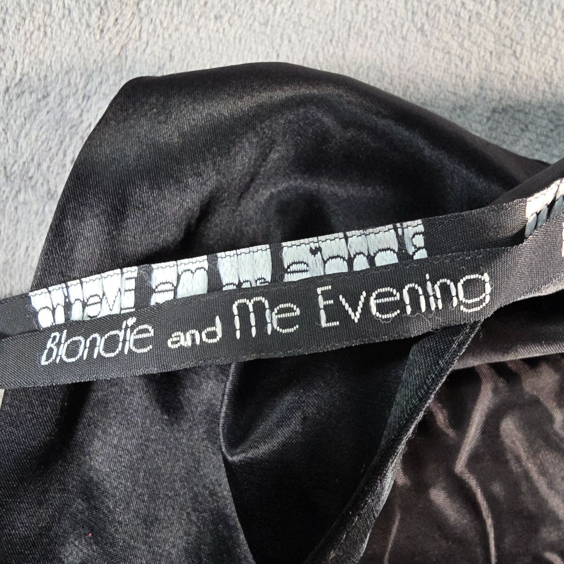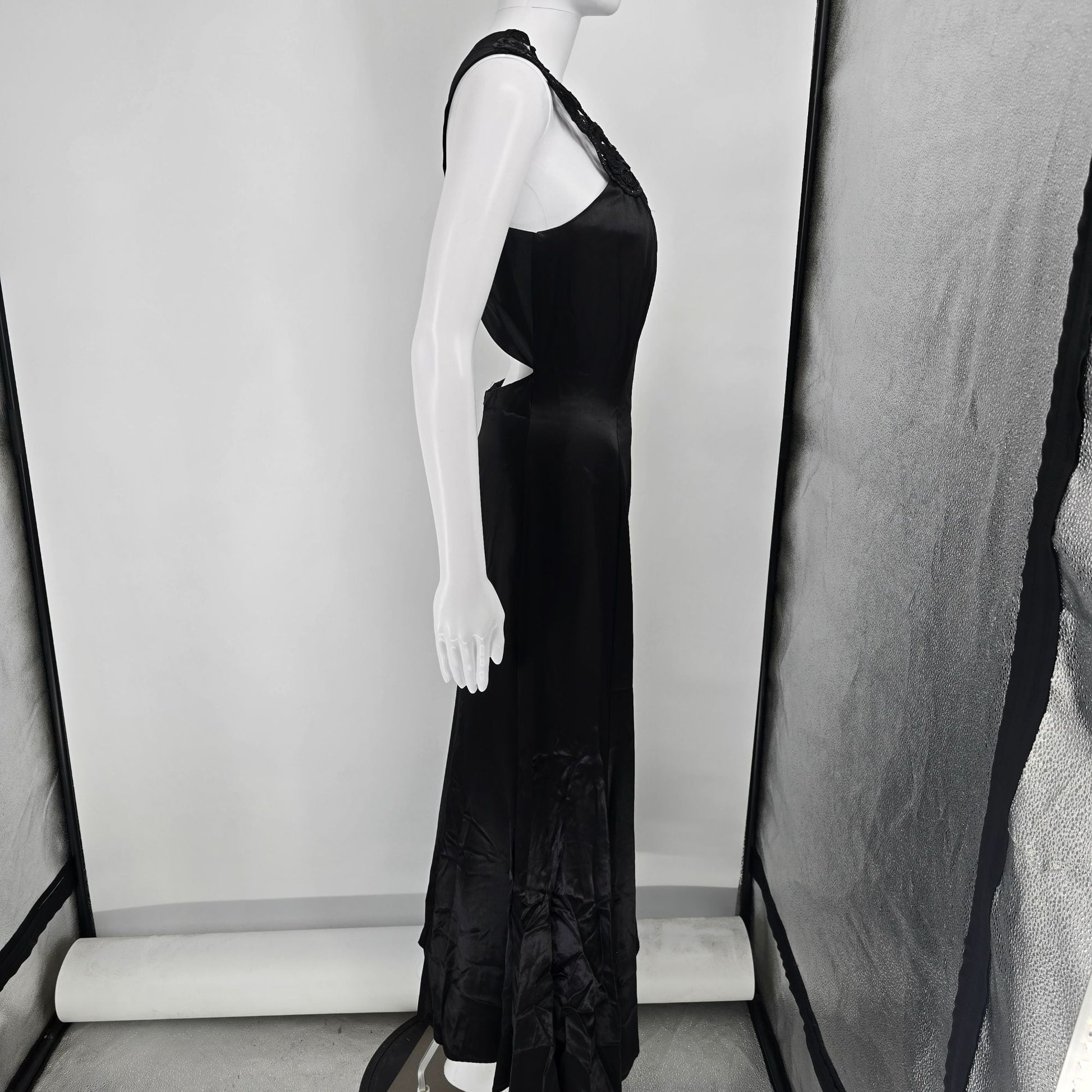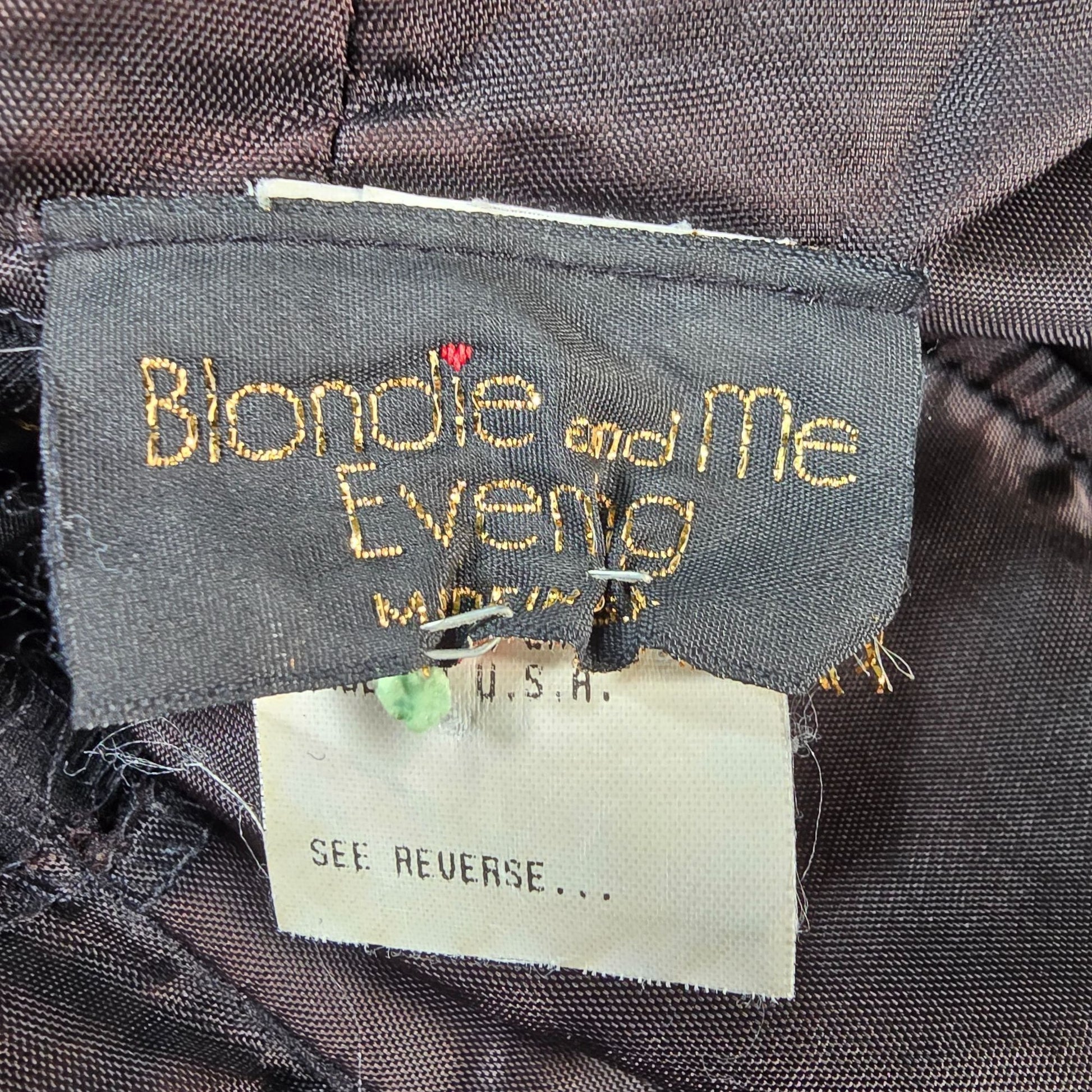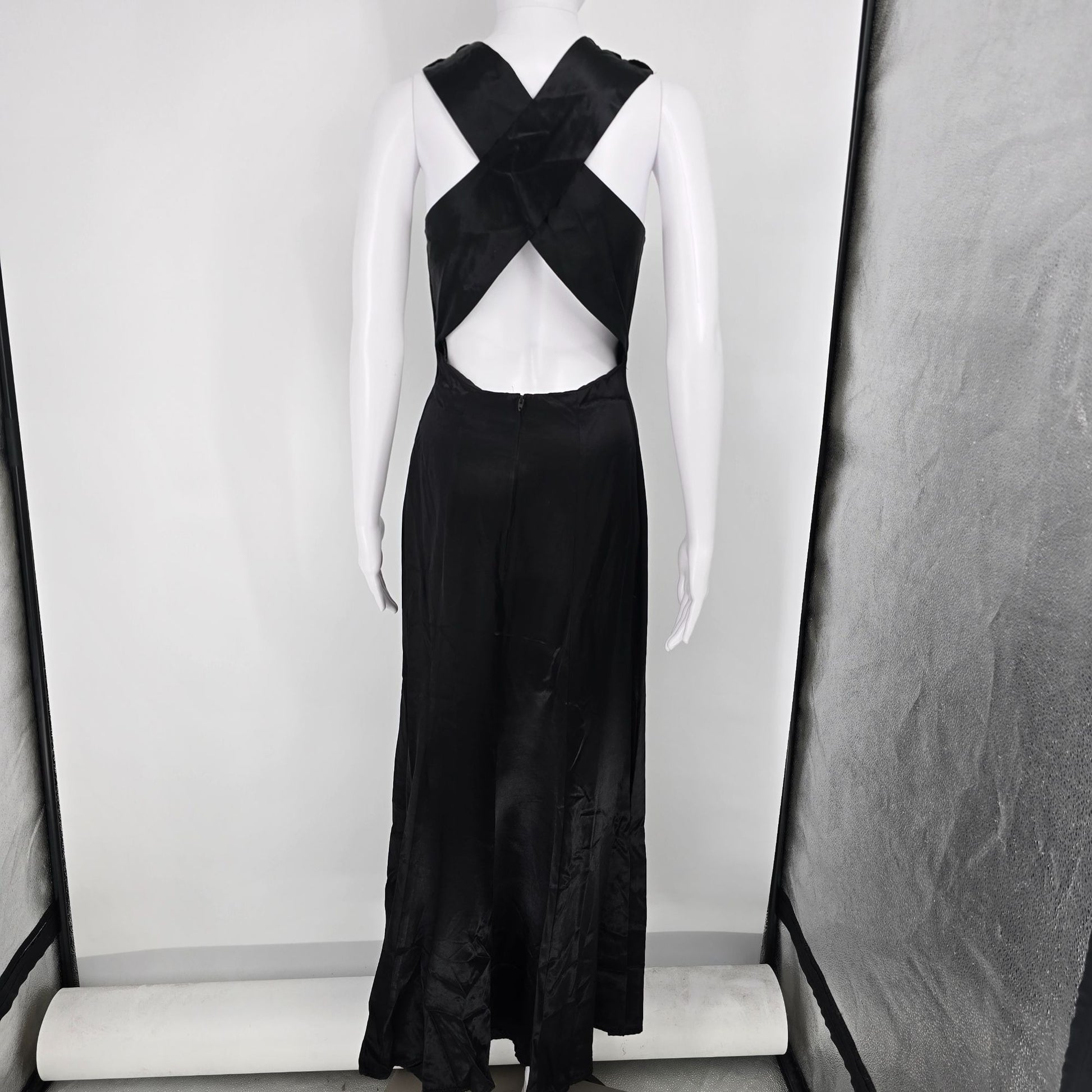 Vintage 1980s Blondie and Me Evening Black Lace Open Back Maxi Gown Dress (XS)