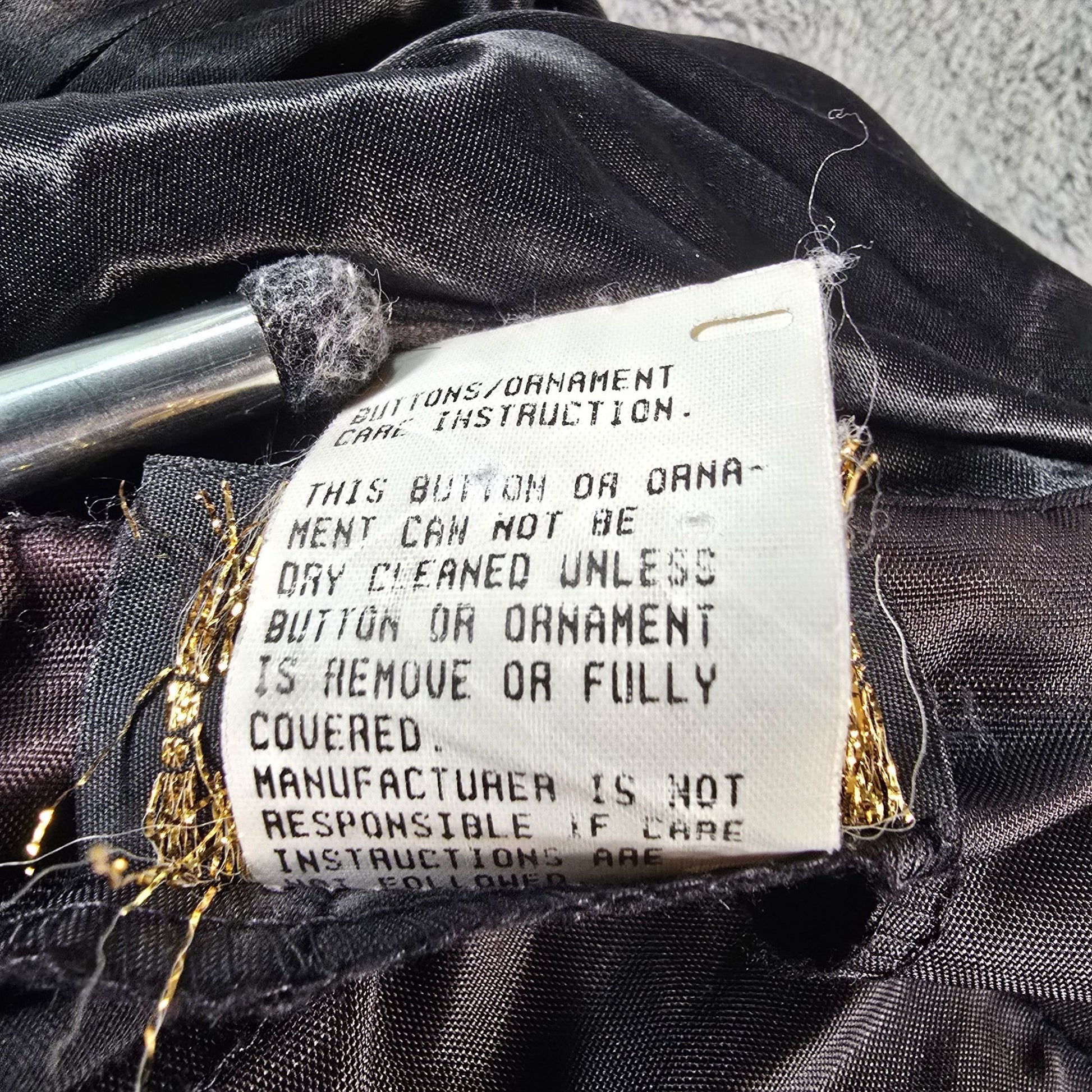 Good used vintage condition. Missing size tag. A few areas of light discoloration below the waist. Light surface wrinkling from storage. Generally light wear throughout. See photos for details.