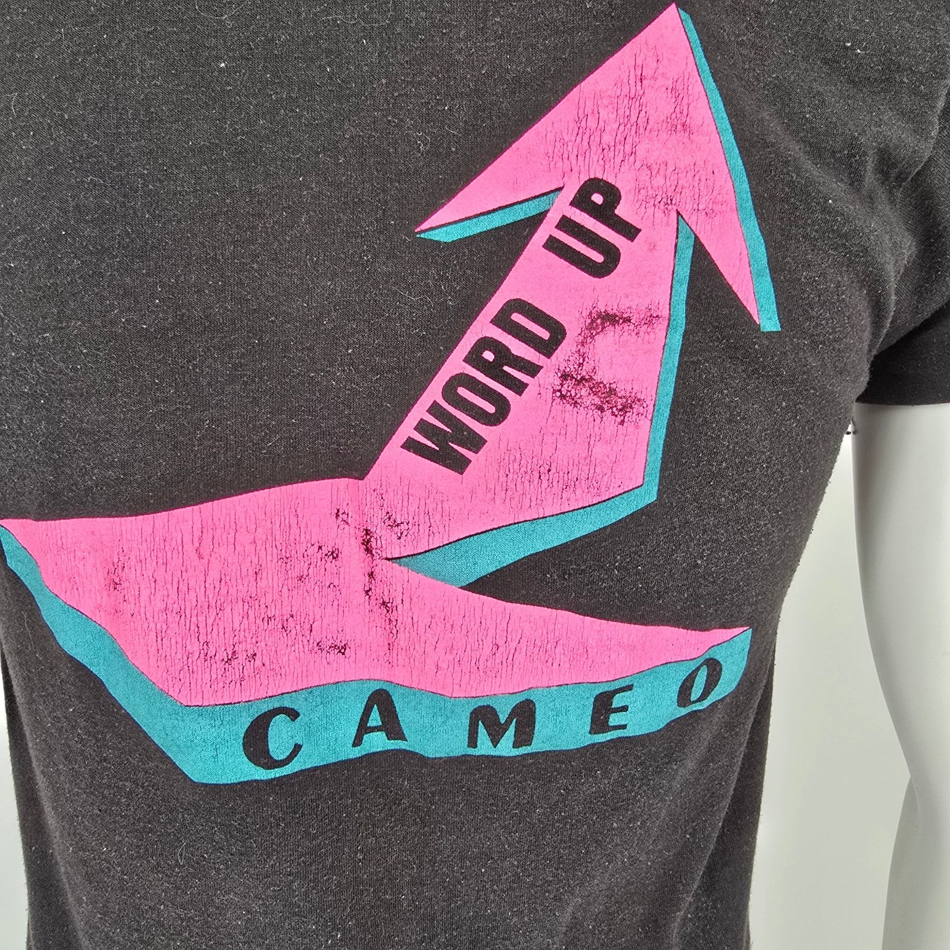 Vintage 1980s Cameo Word Up Black Graphic T-Shirt (S)