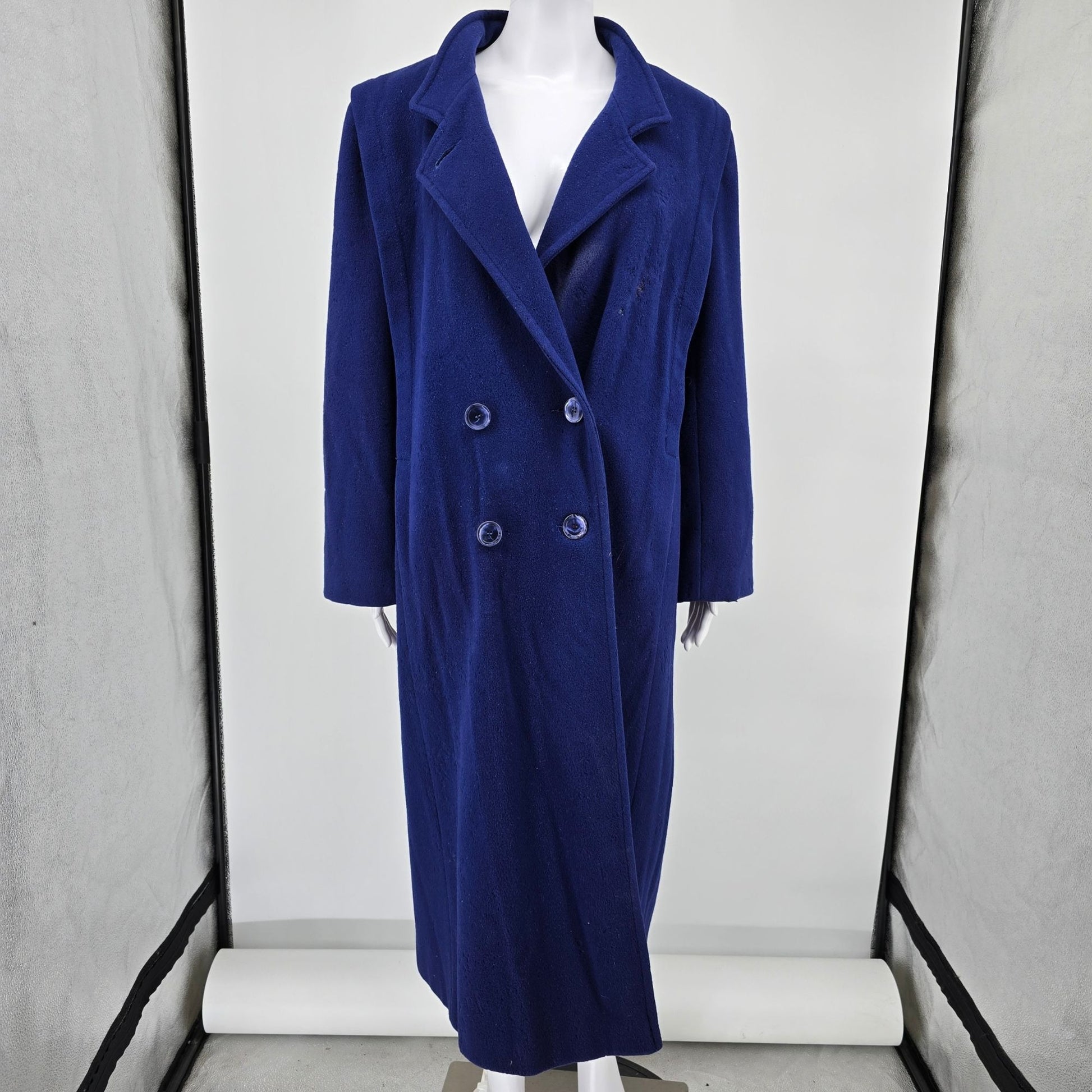 Vintage 1980s Distressed Forecaster of Boston Navy Blue Wool Overcoat (L)