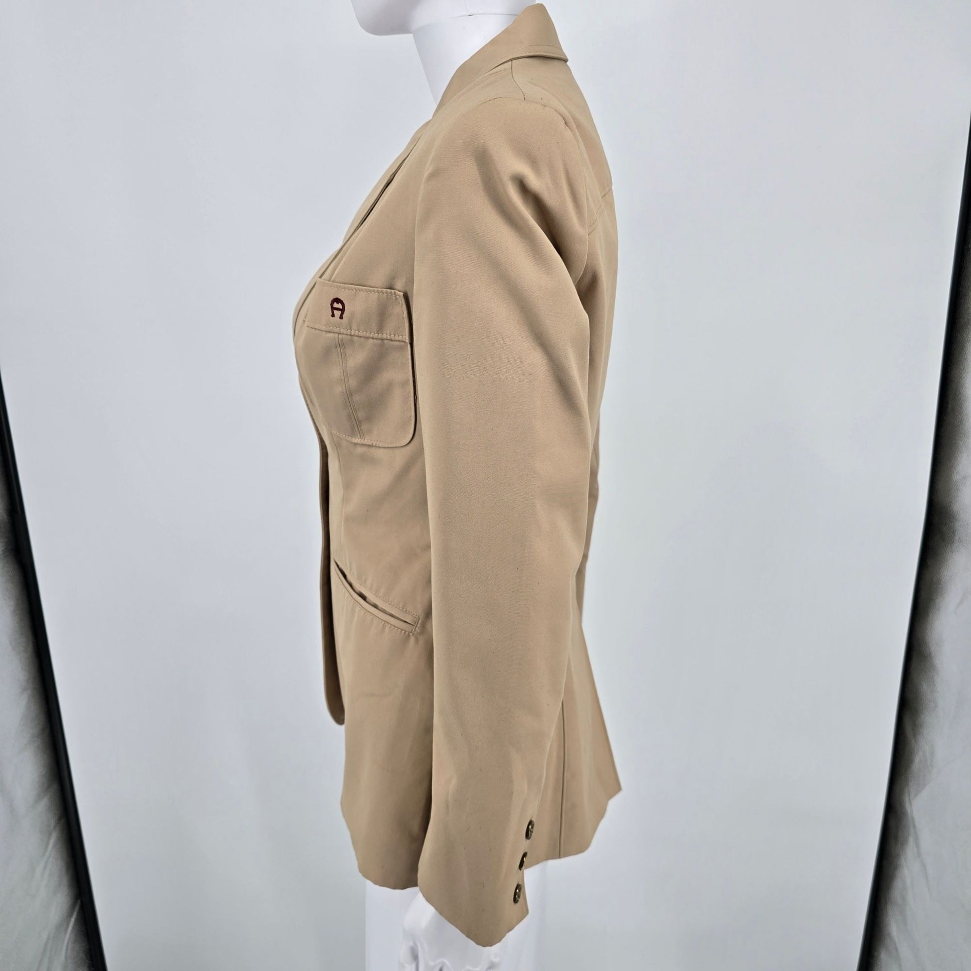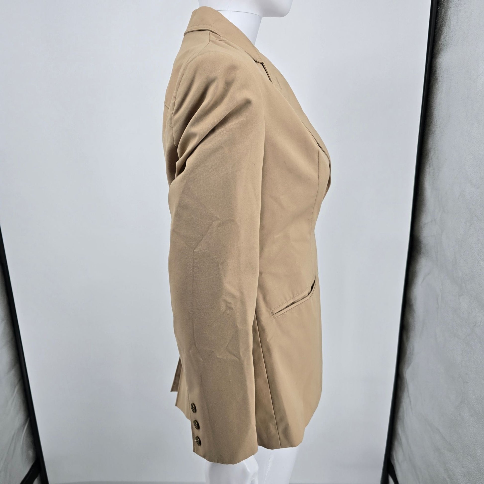 Vintage 1980s Etienne Aigner Women's Tan Notch Lapel Two-button Blazer (XS)